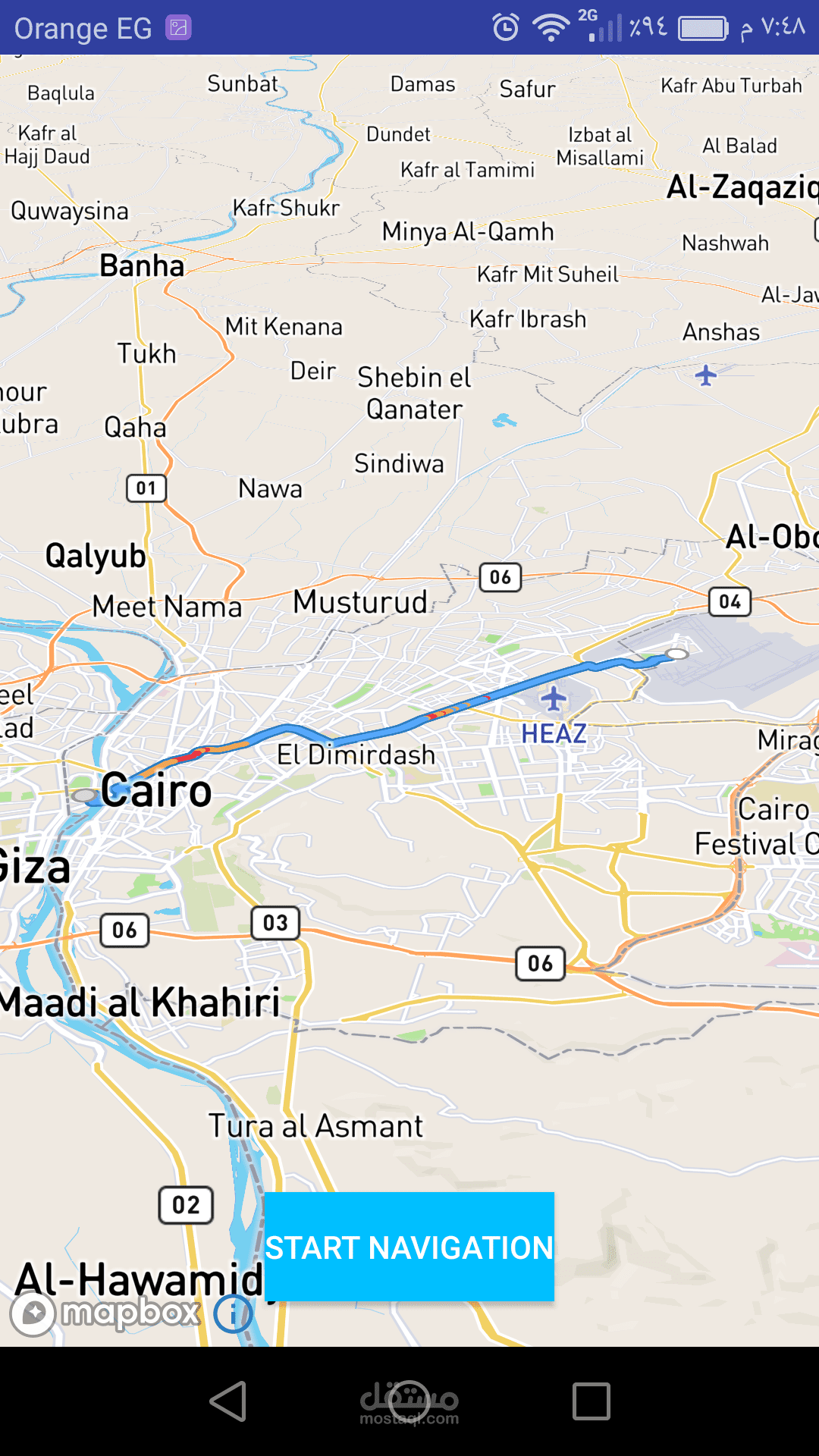 * التطبيق يتيح للمستخدم انشاء أقرب مسار للرحلة التي سيقوم بها المستخدم ومتابعة المسار اثناء التحرك كما في الصور.