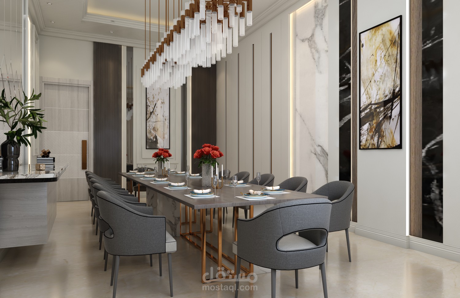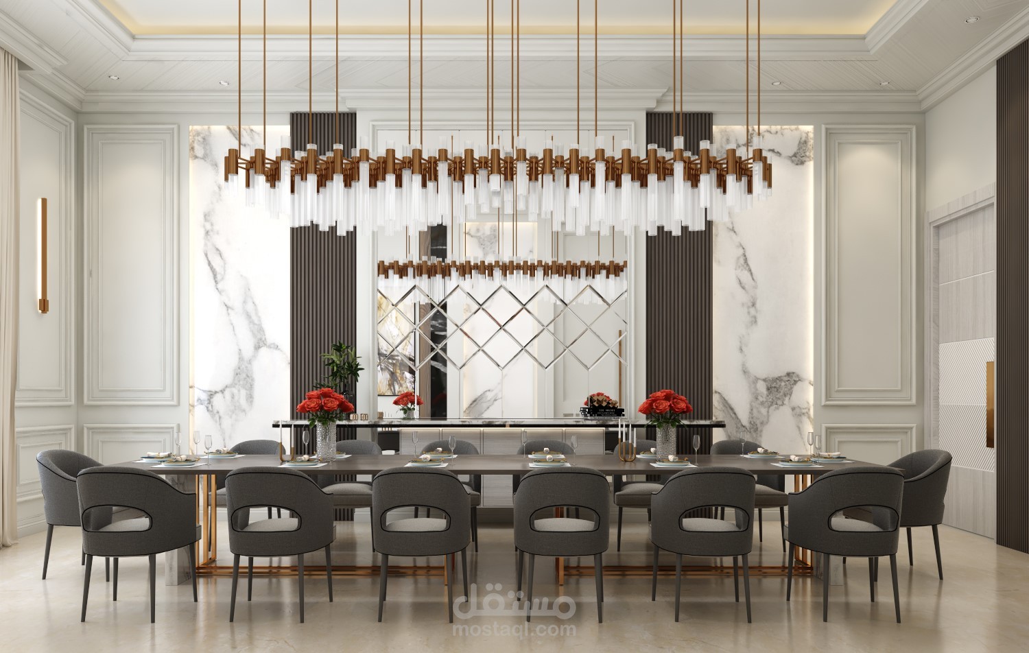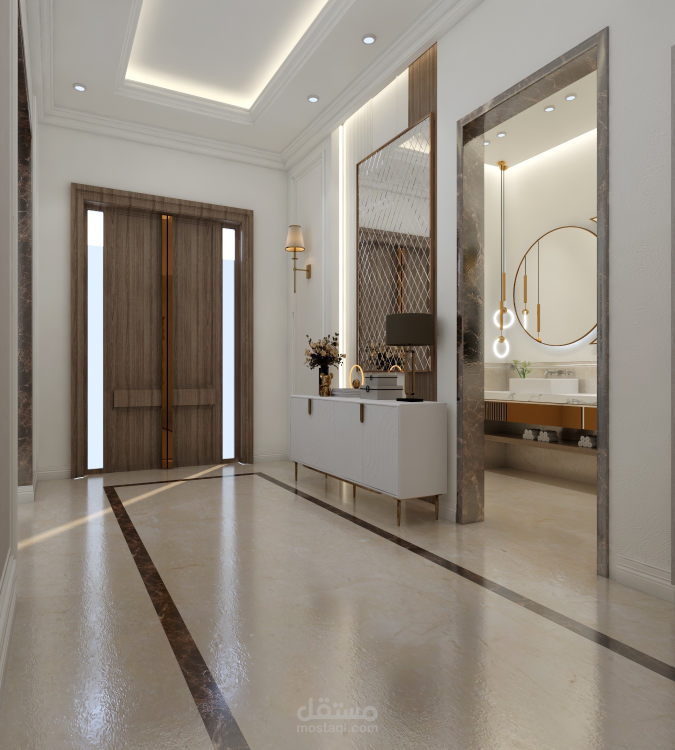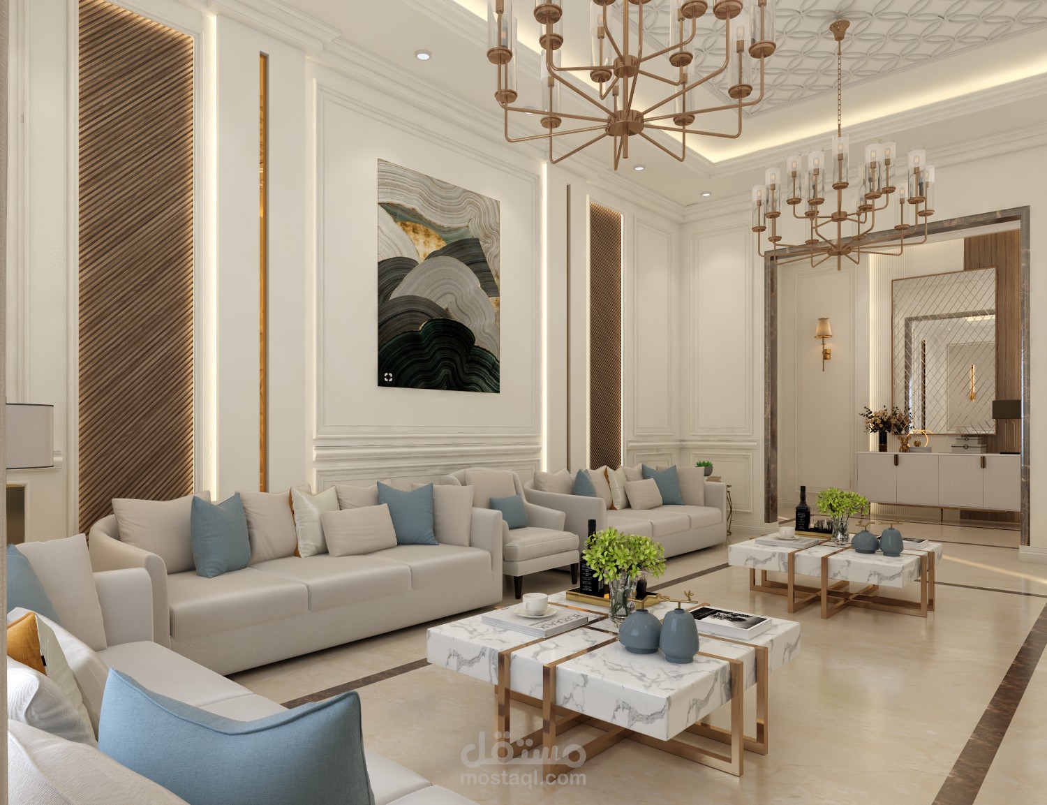 تصميم فيلا نيو كلاسيك ... تضممن مجلس رجال ومجلس نساء وصالة طعام ومطبخ مع 4 غرف نوم في الطابق العلوي