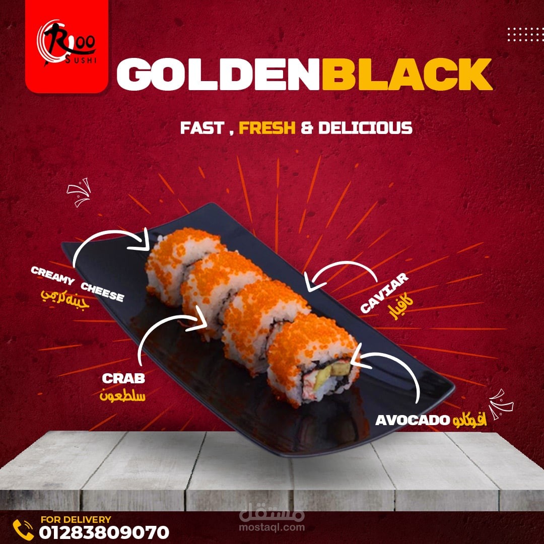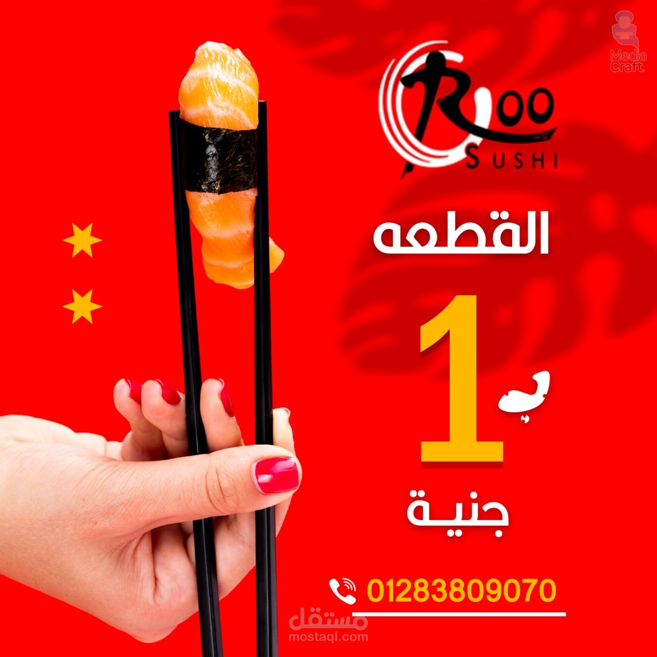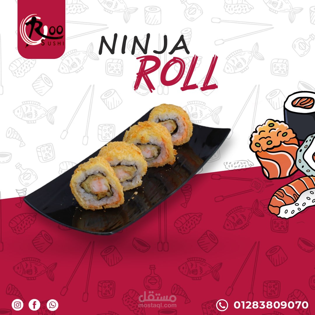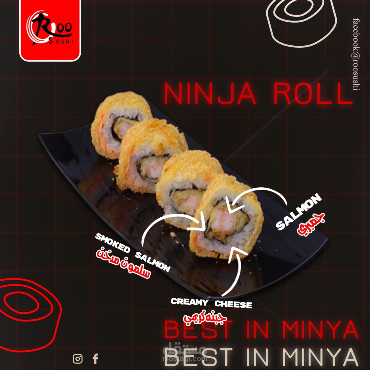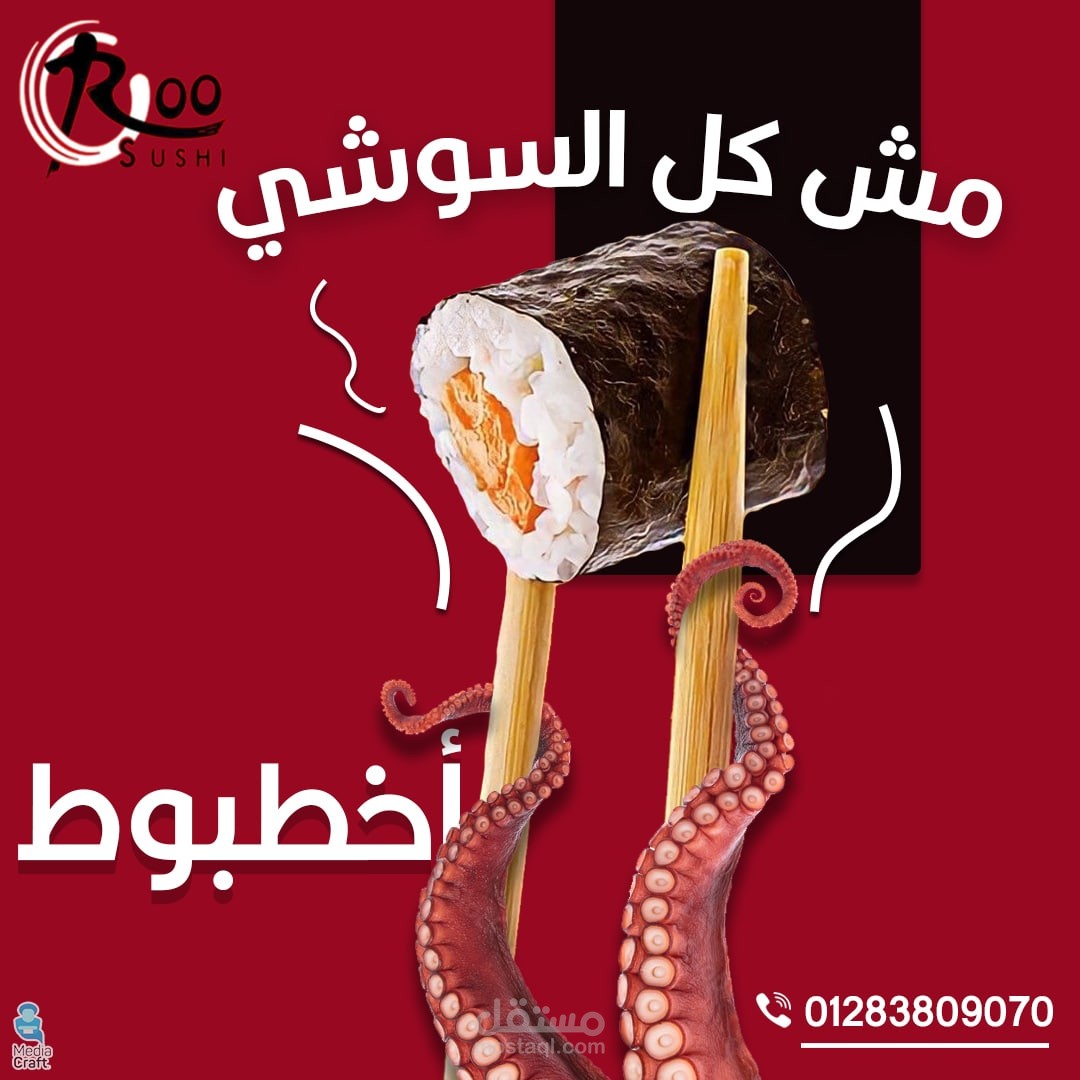 نماذج لتصاميم دعائيه لمطعم روو سوشي بالمنيا