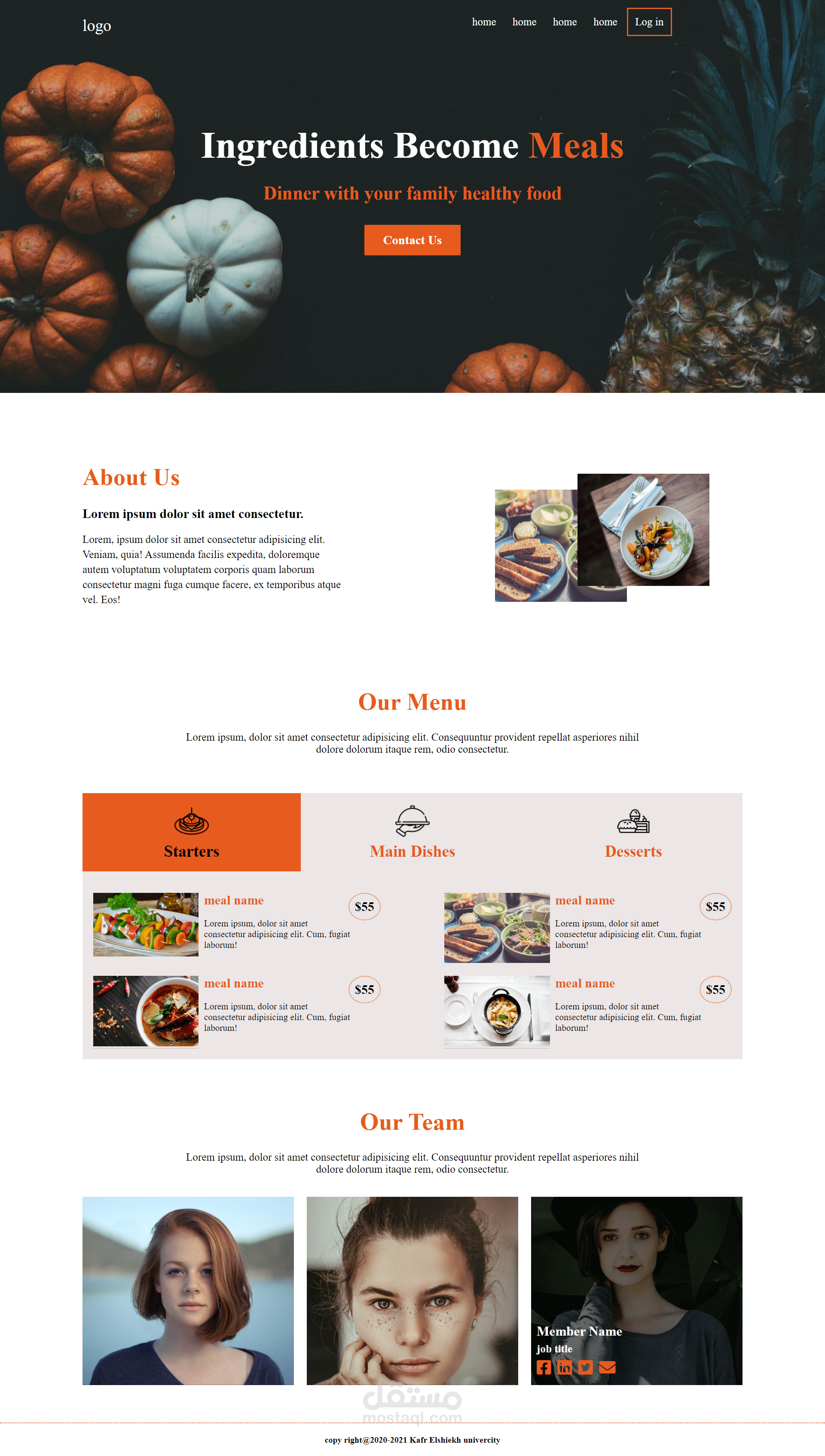 موقع لمطعم وبيه عرض المنيو بالاسعار والتفاصيل, استخدمت بيه HTML,CSS JavaScript , jQuery.