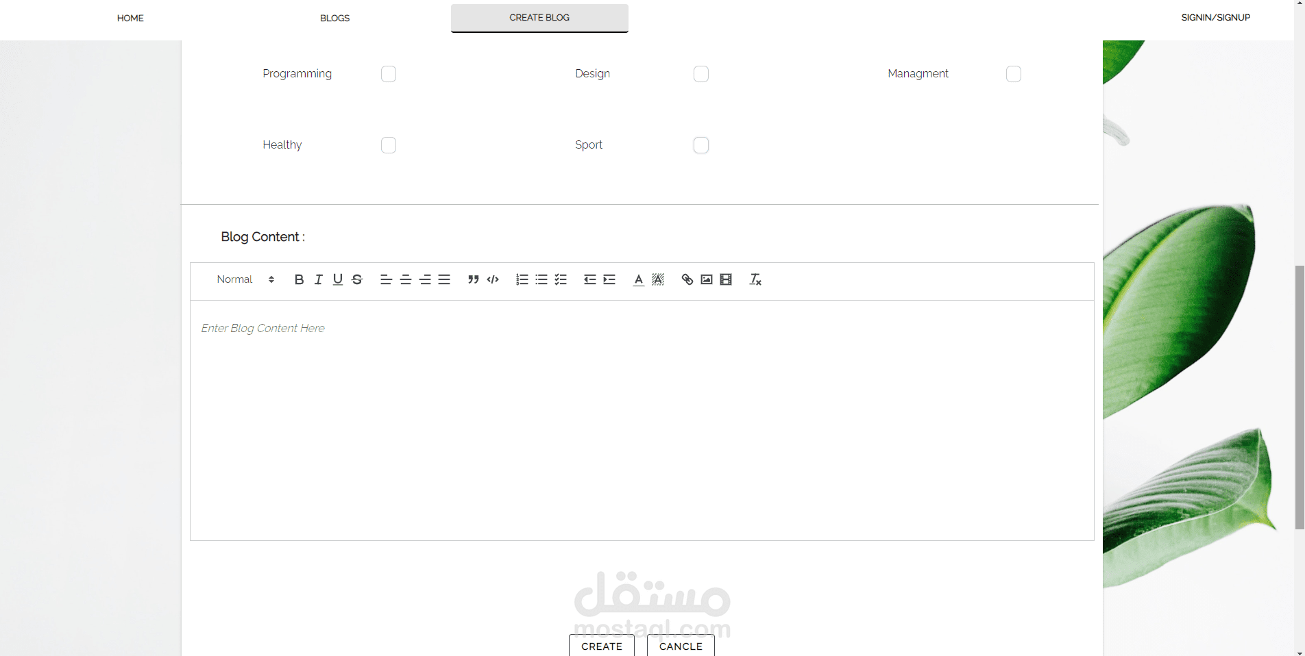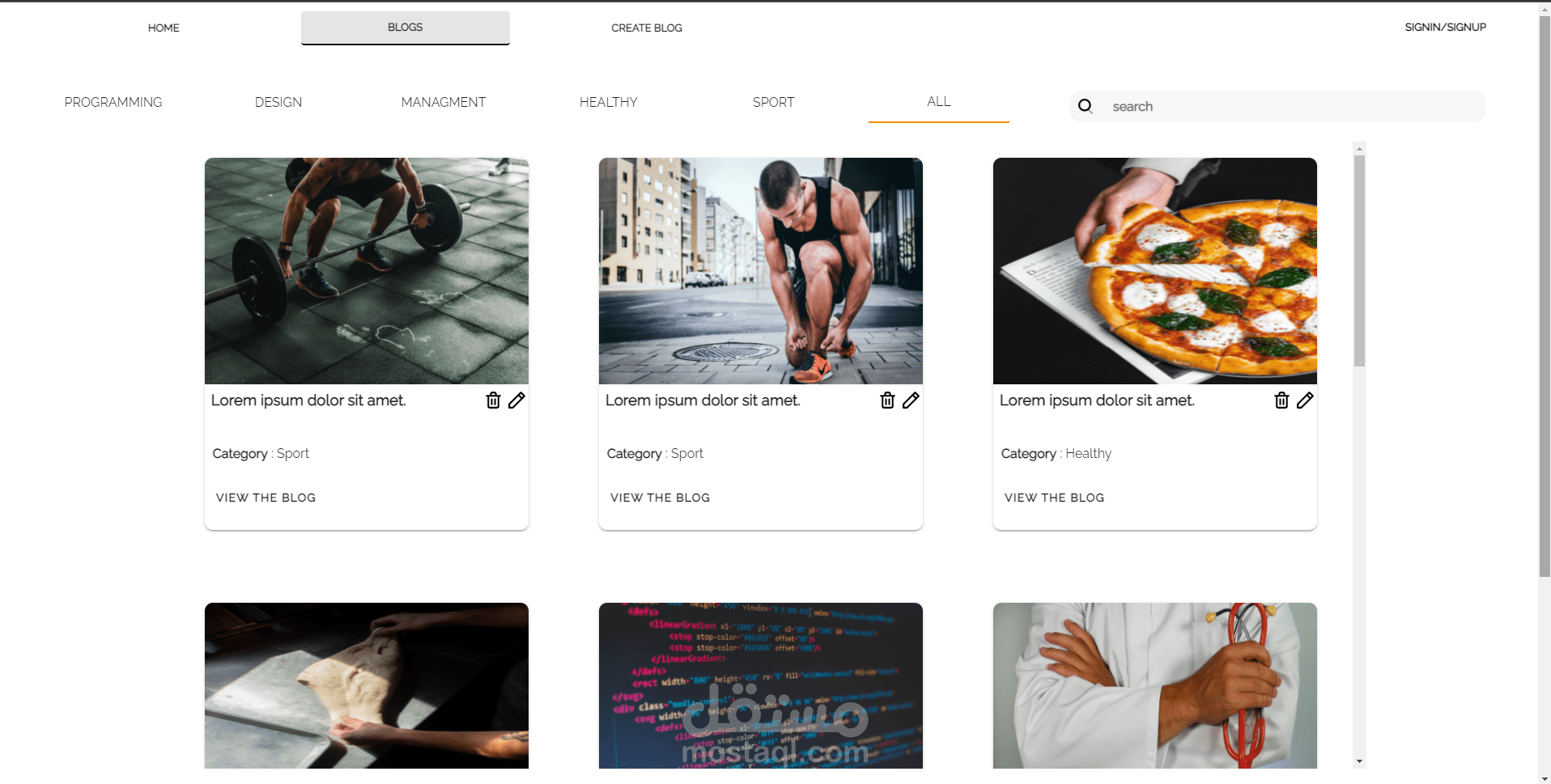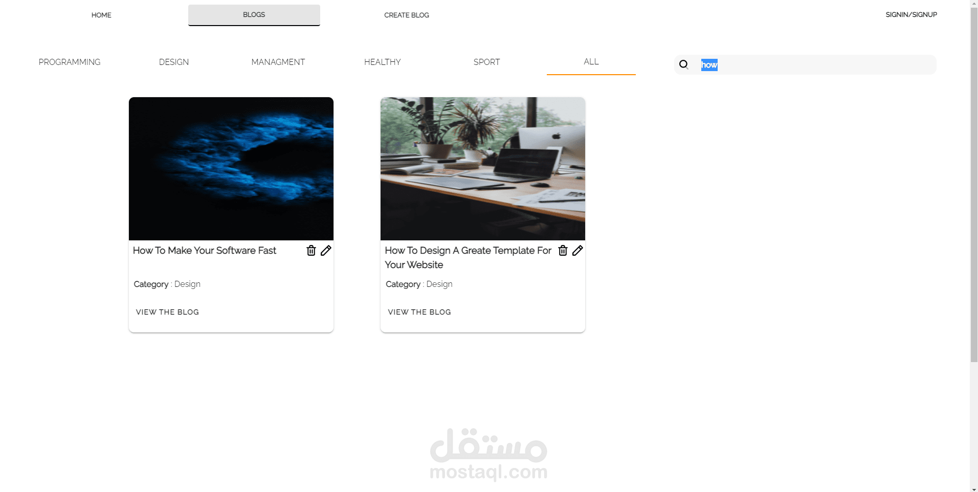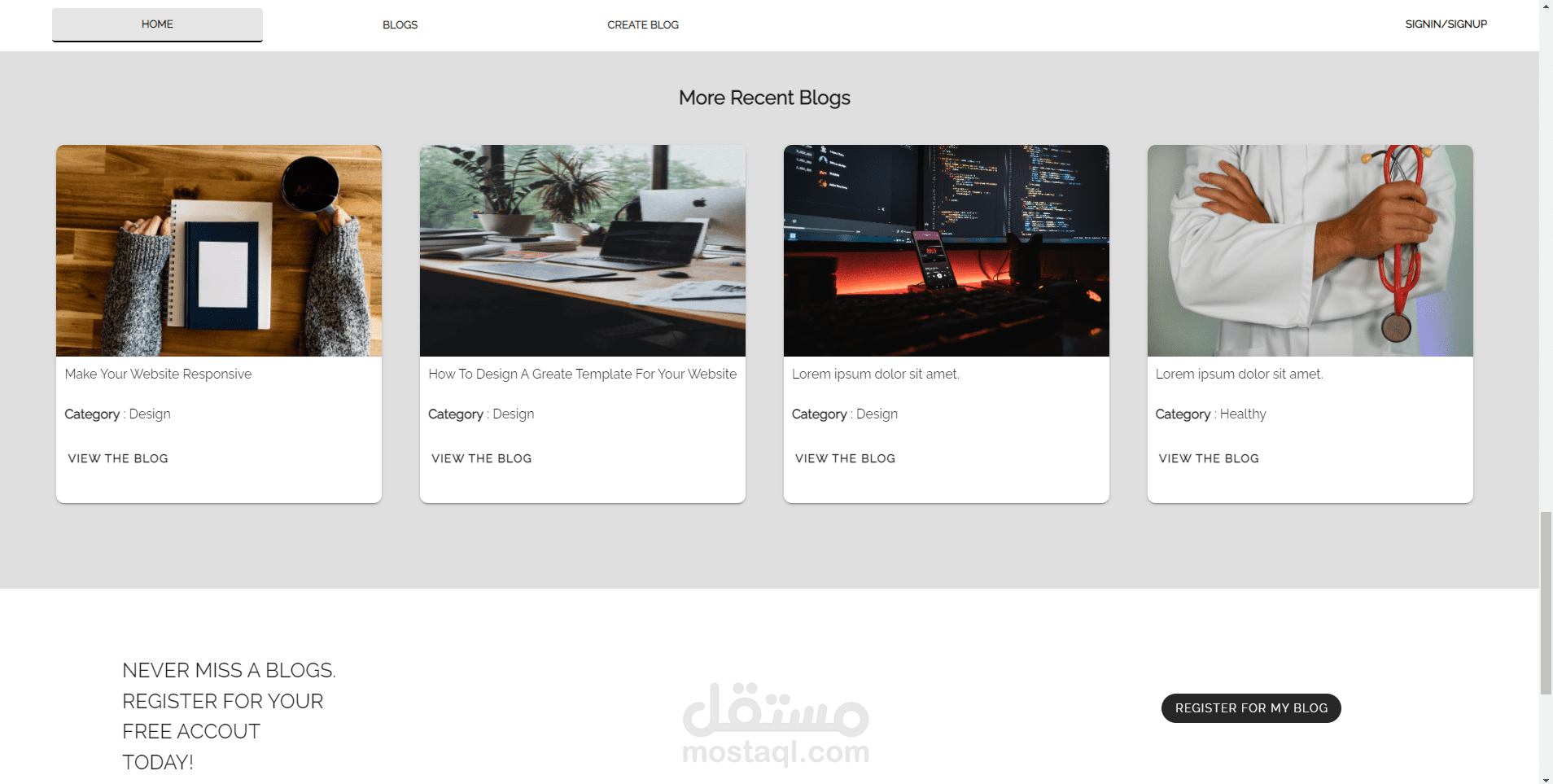 العمل هو عبارة عن مدونة بتصميم مخصص (custom)