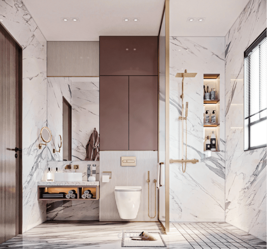 modern bedroom with bathroom