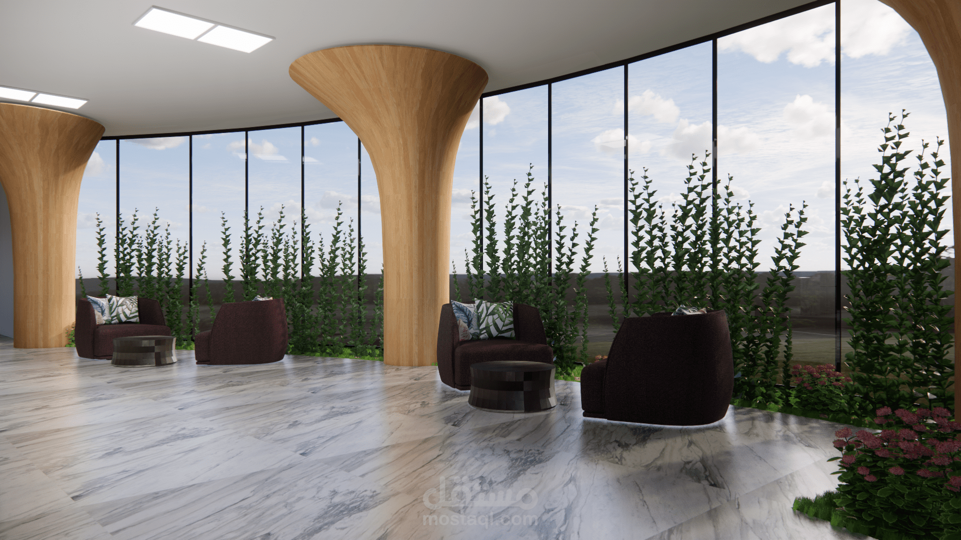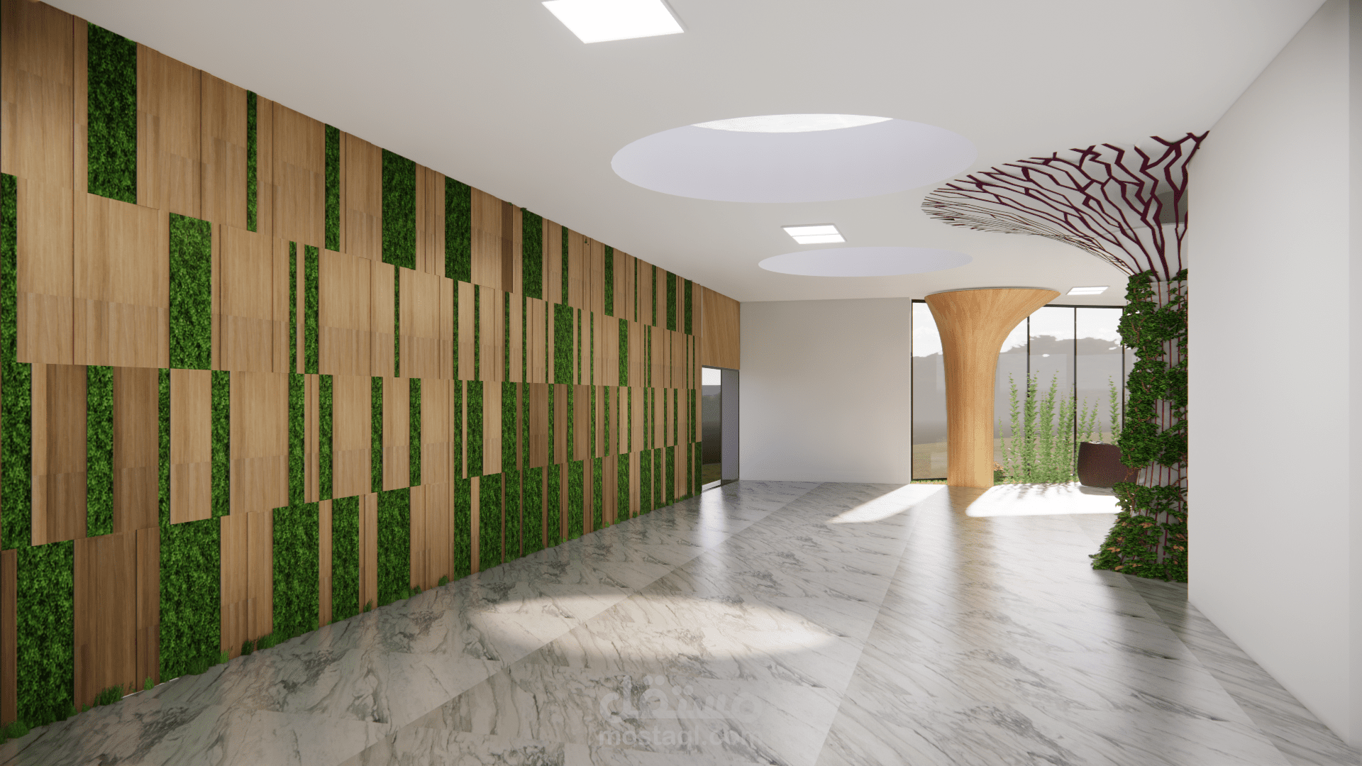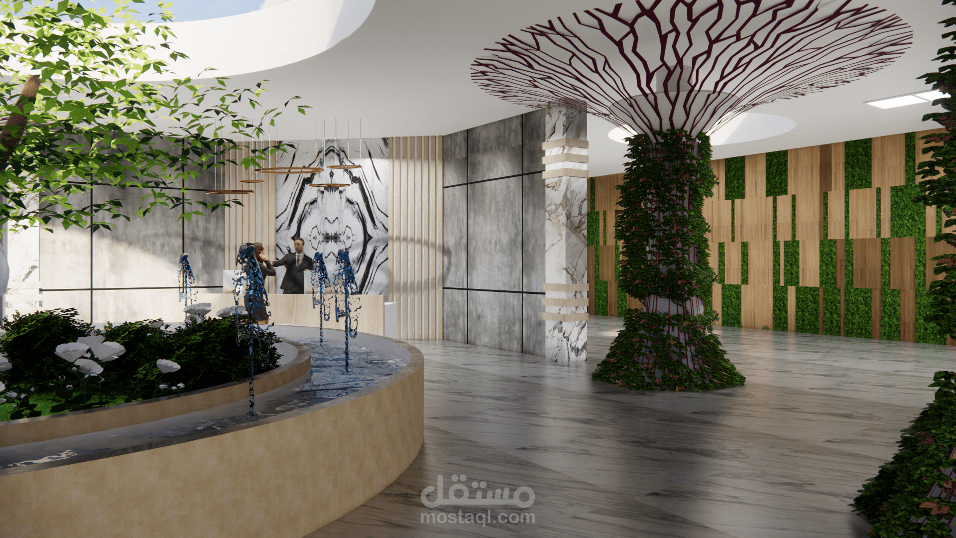 تصميم داخلي لمدخل معرض و منطقة الاستقبال