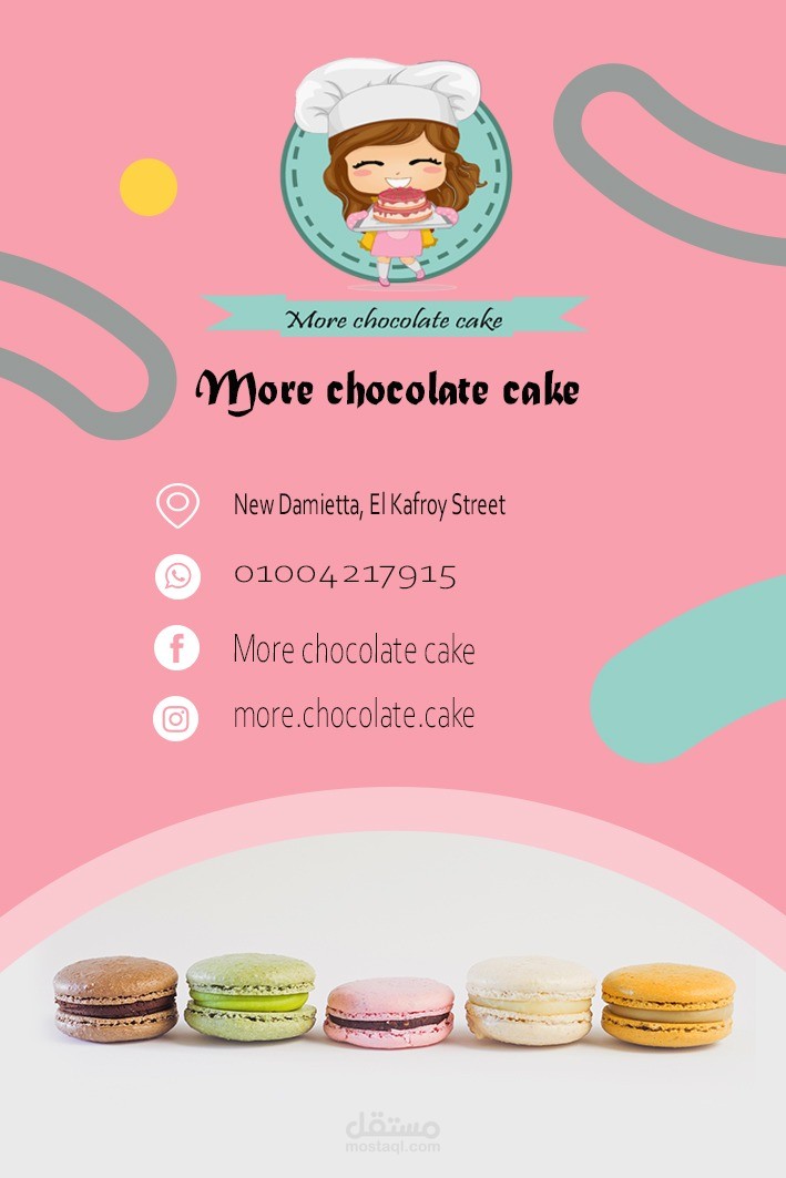 بستخدام الفوتوشوب قمت بتصميم كارت تعريفي لبيع الحلويات والتورت والمخبوزات