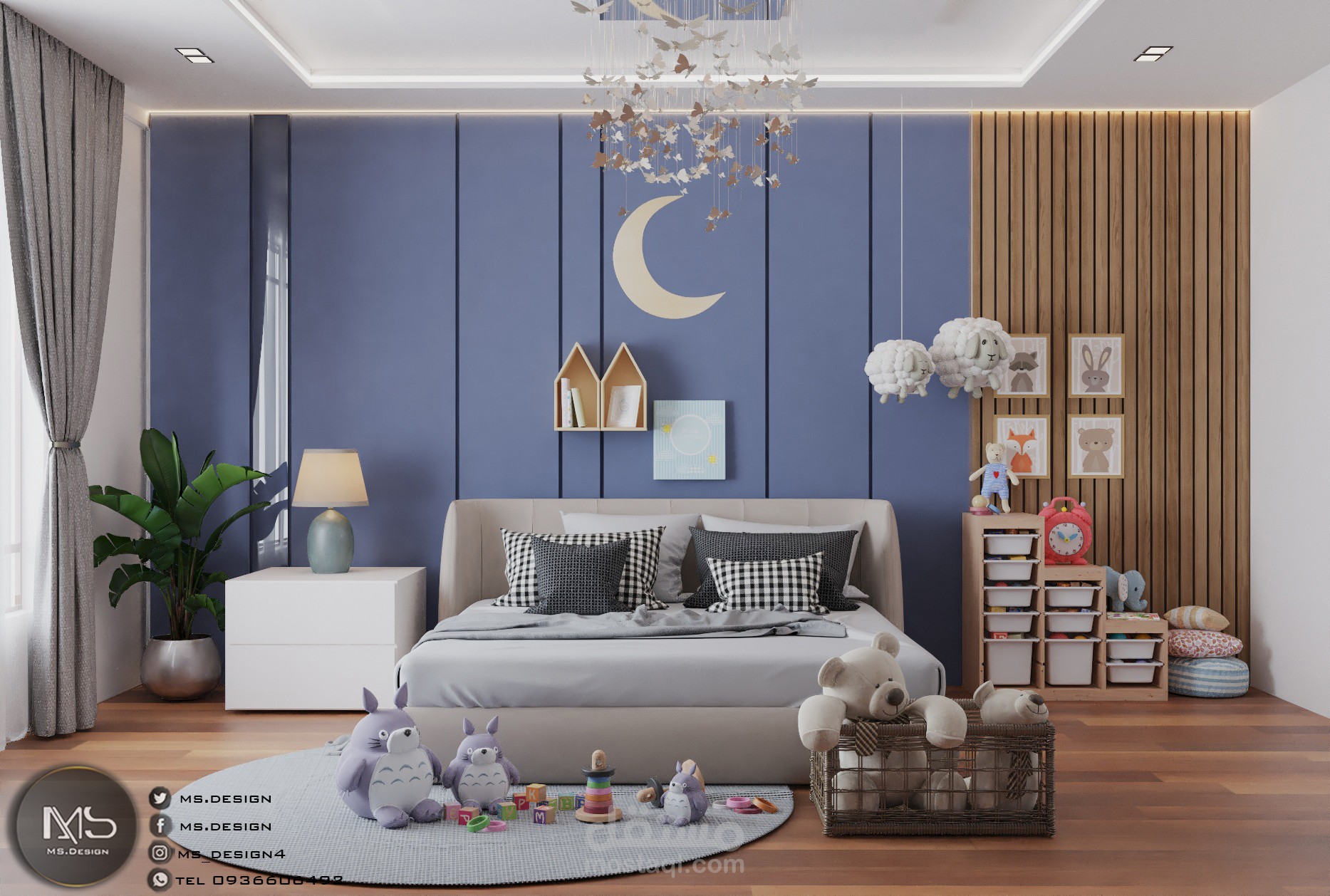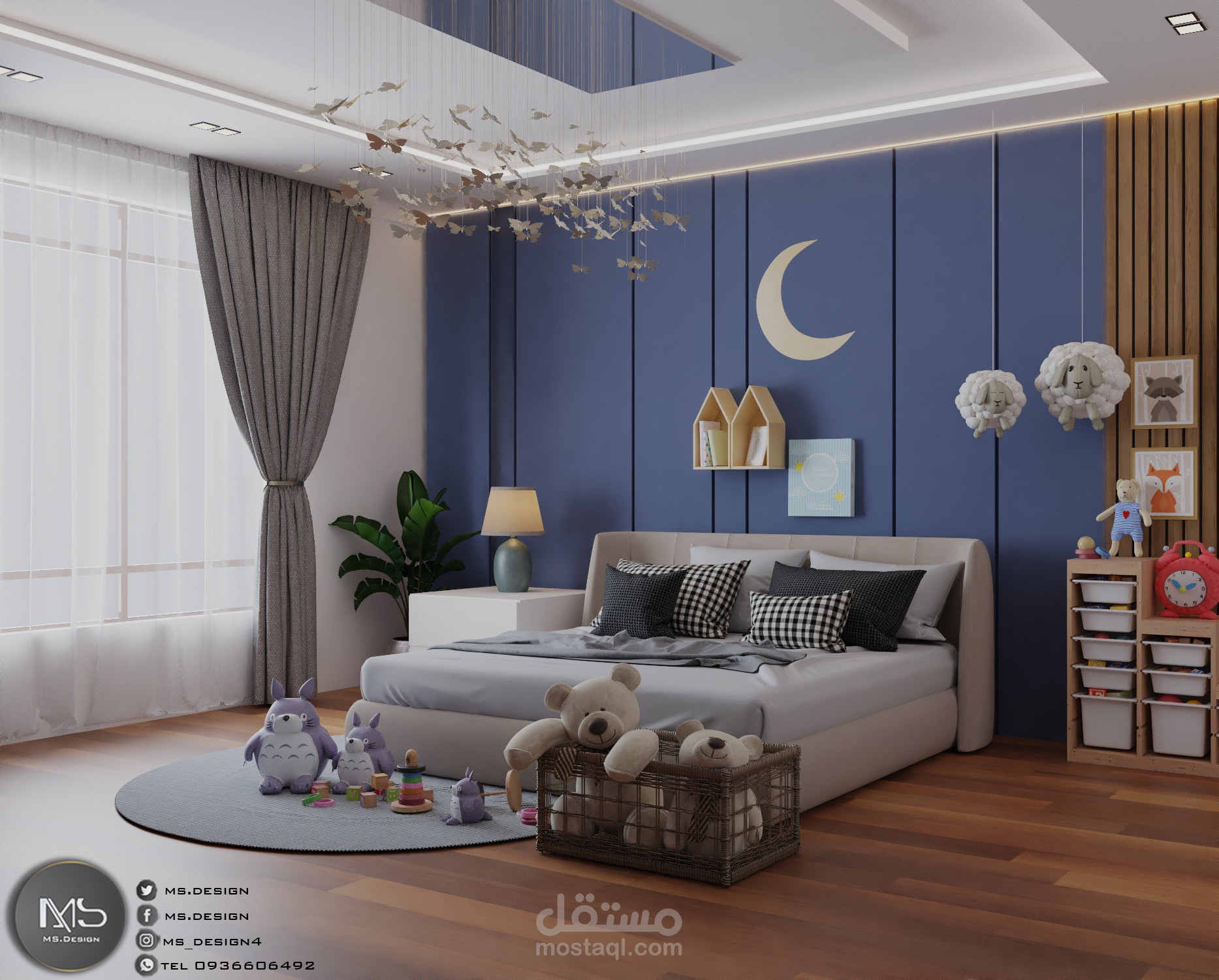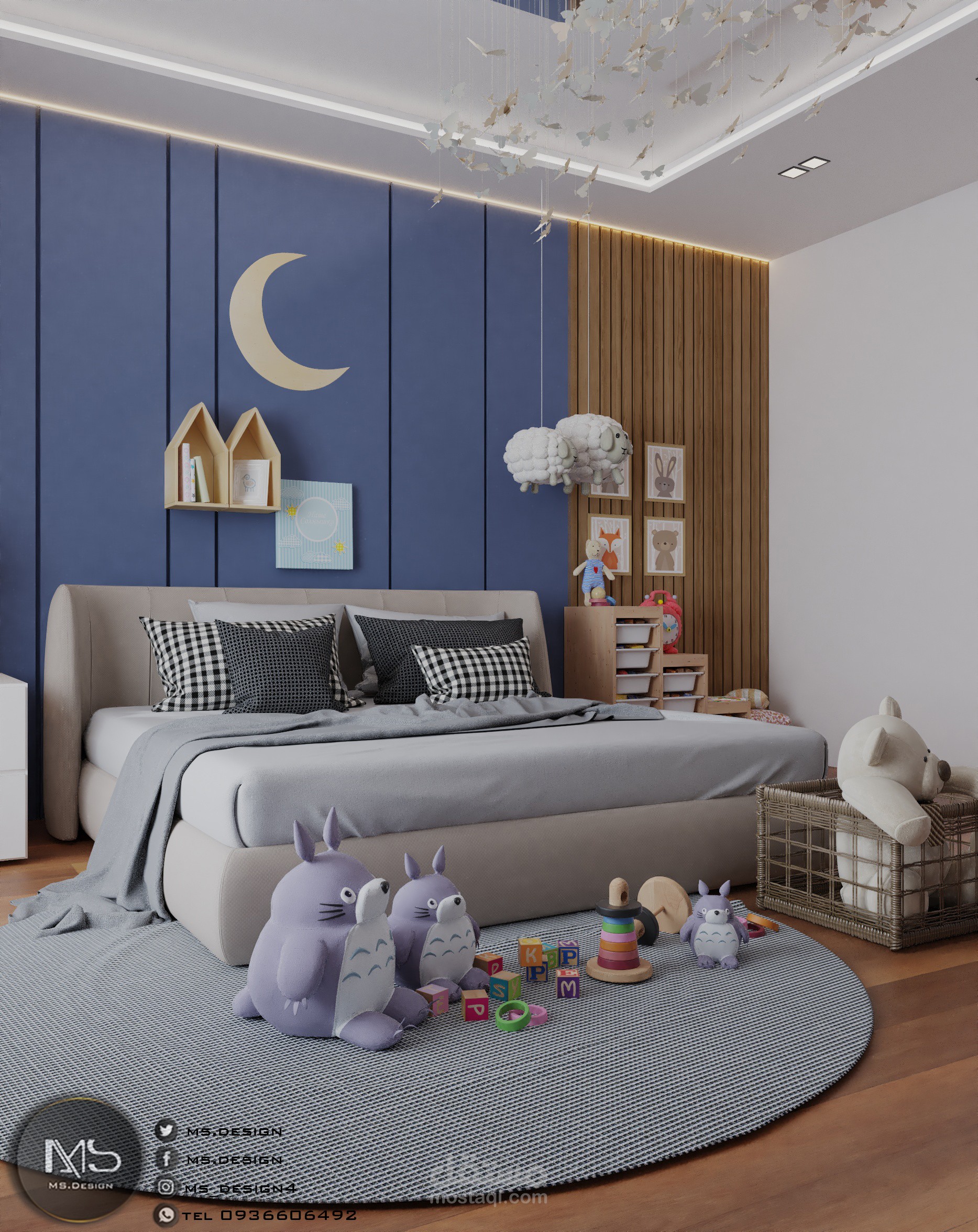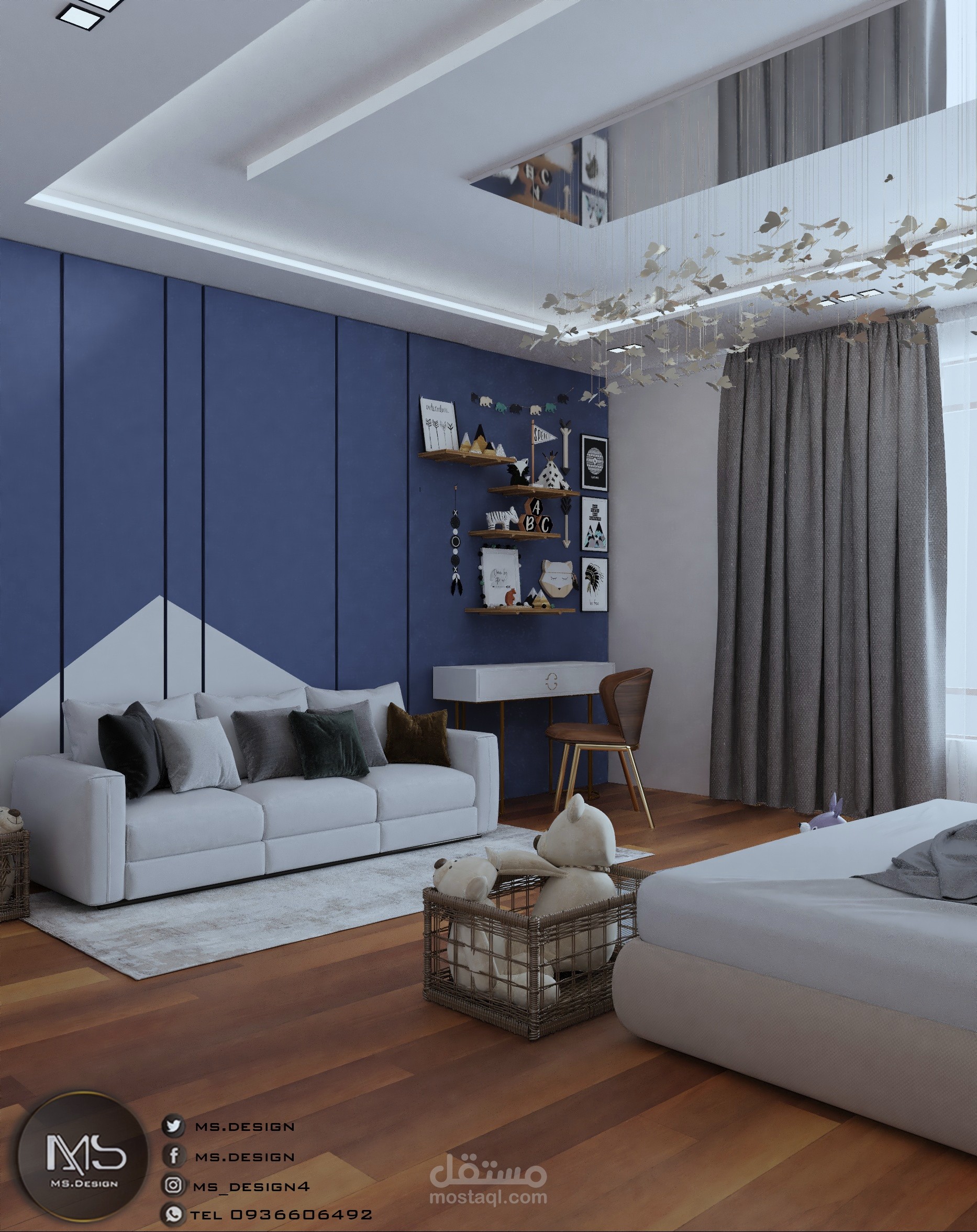 غرفة اطفال بطراز عصري حديث بألوان السكري والكحلي الراقي....