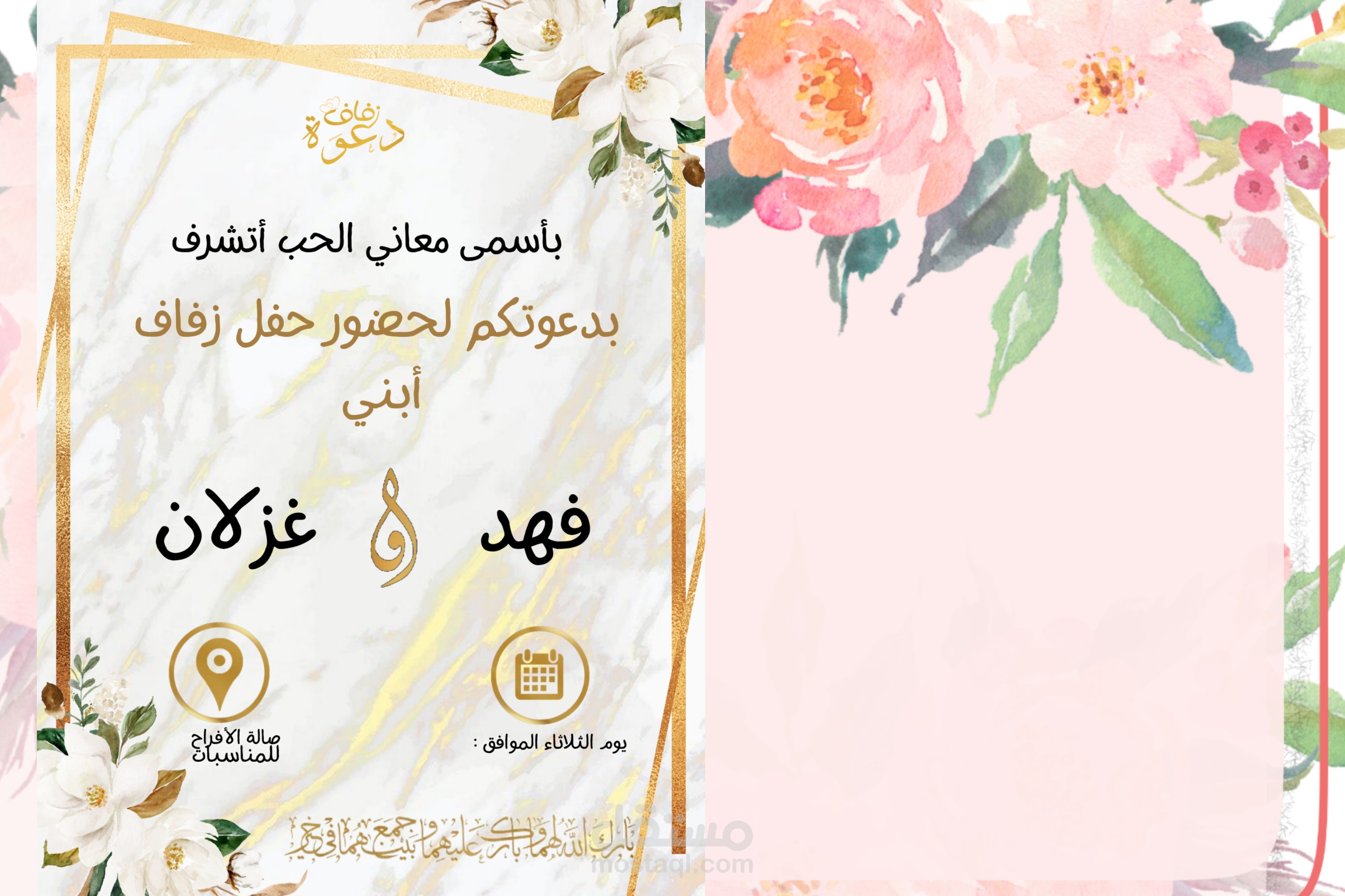 اقدم لكم بطاقات دعوات زفاف انيقة باسماء العرسان وذات جودة عالية