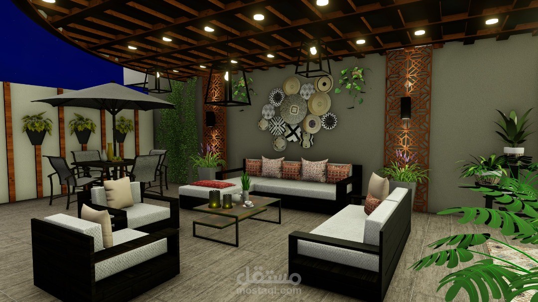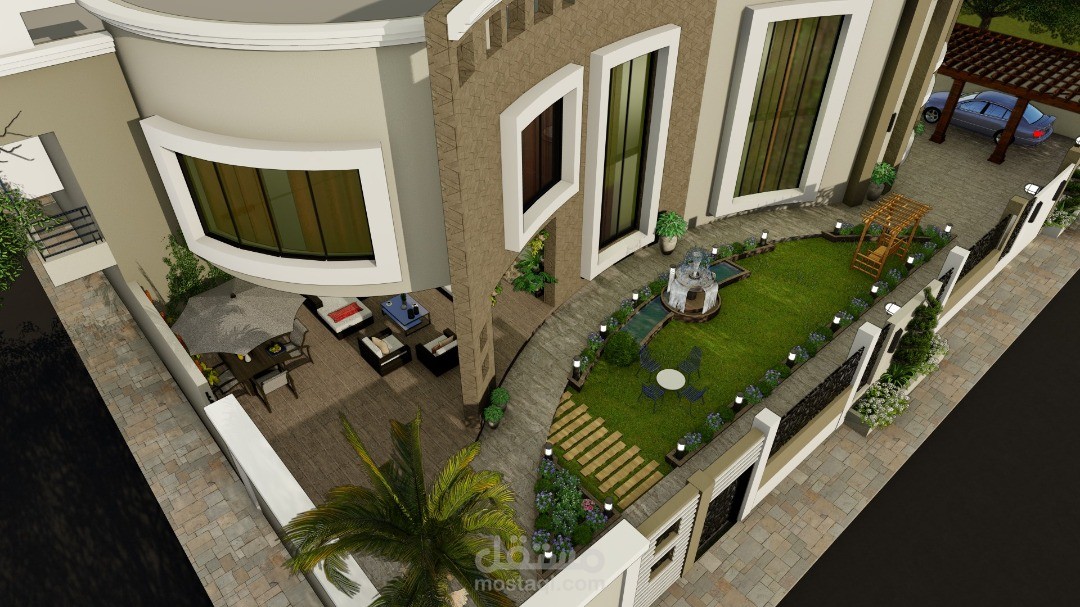 و تصميم حديقة خارجية و جلسة عند المدخل