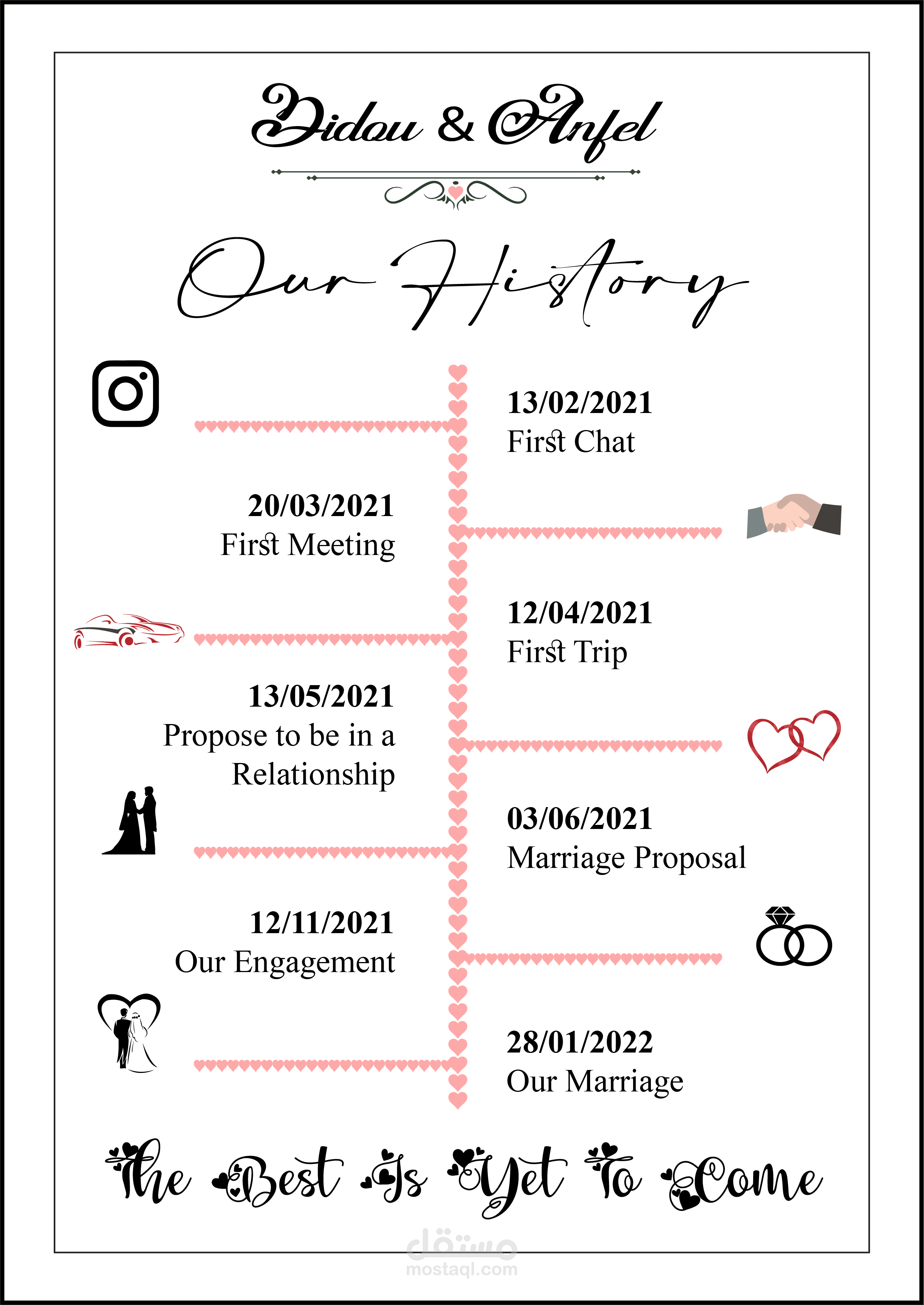 كادر كلاسيكي لتواريخ علاقة بين زوجين