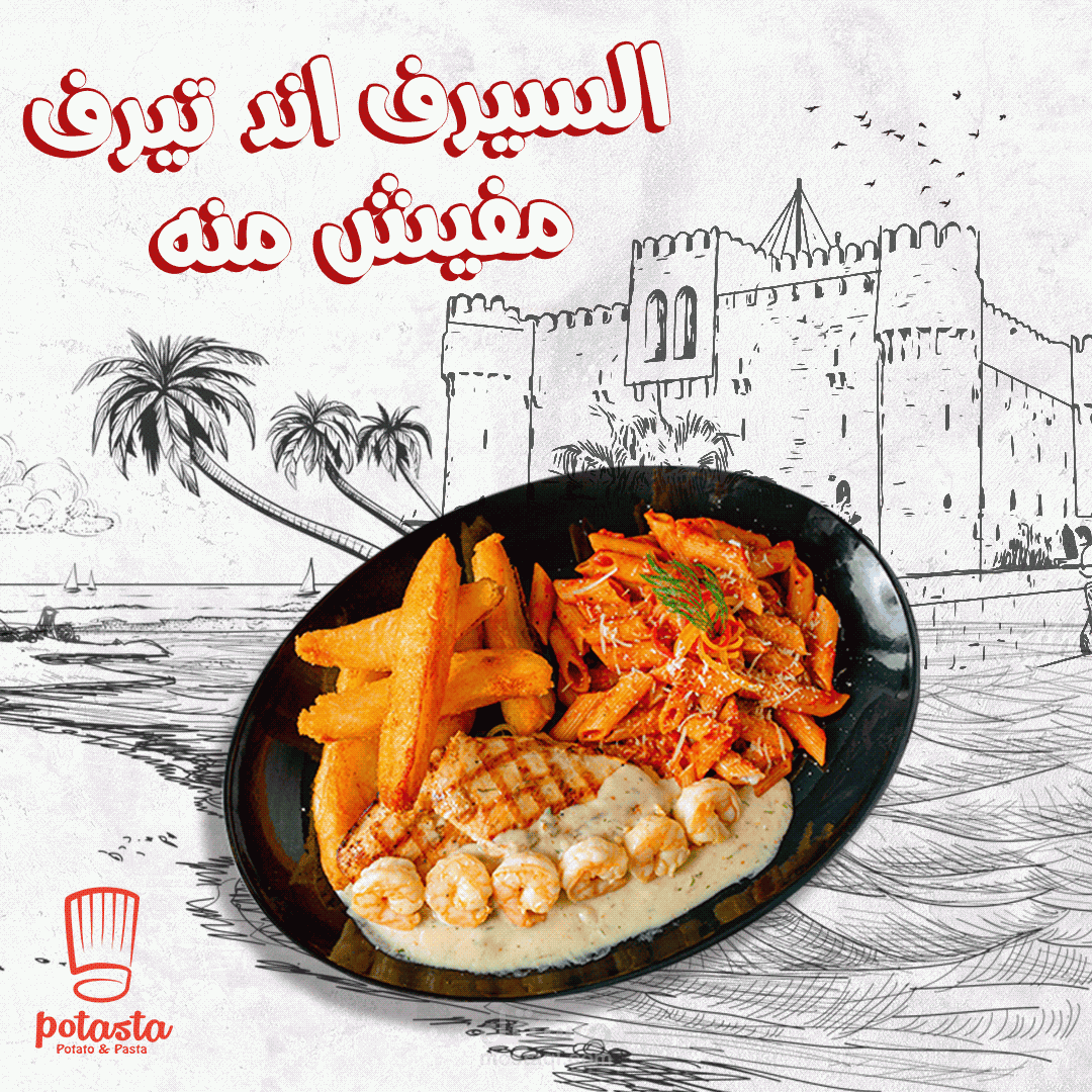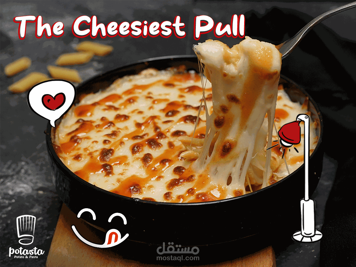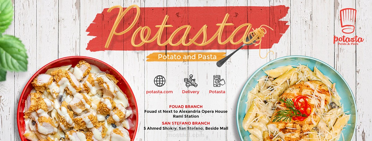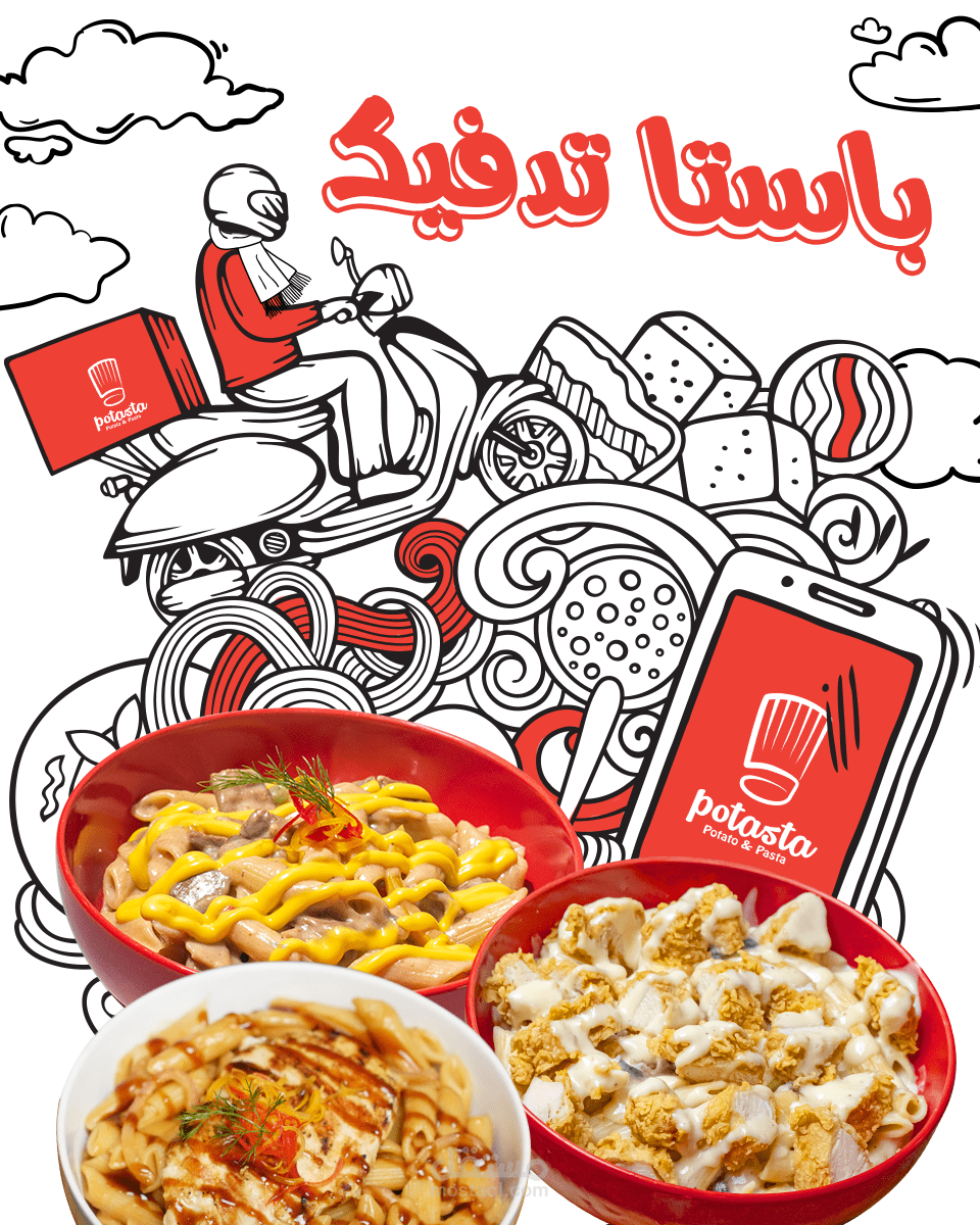 مشروع تصميمات سوشيال ميديا لمحل لبيع اطباق المكرونة و البطاطس بأنواعها