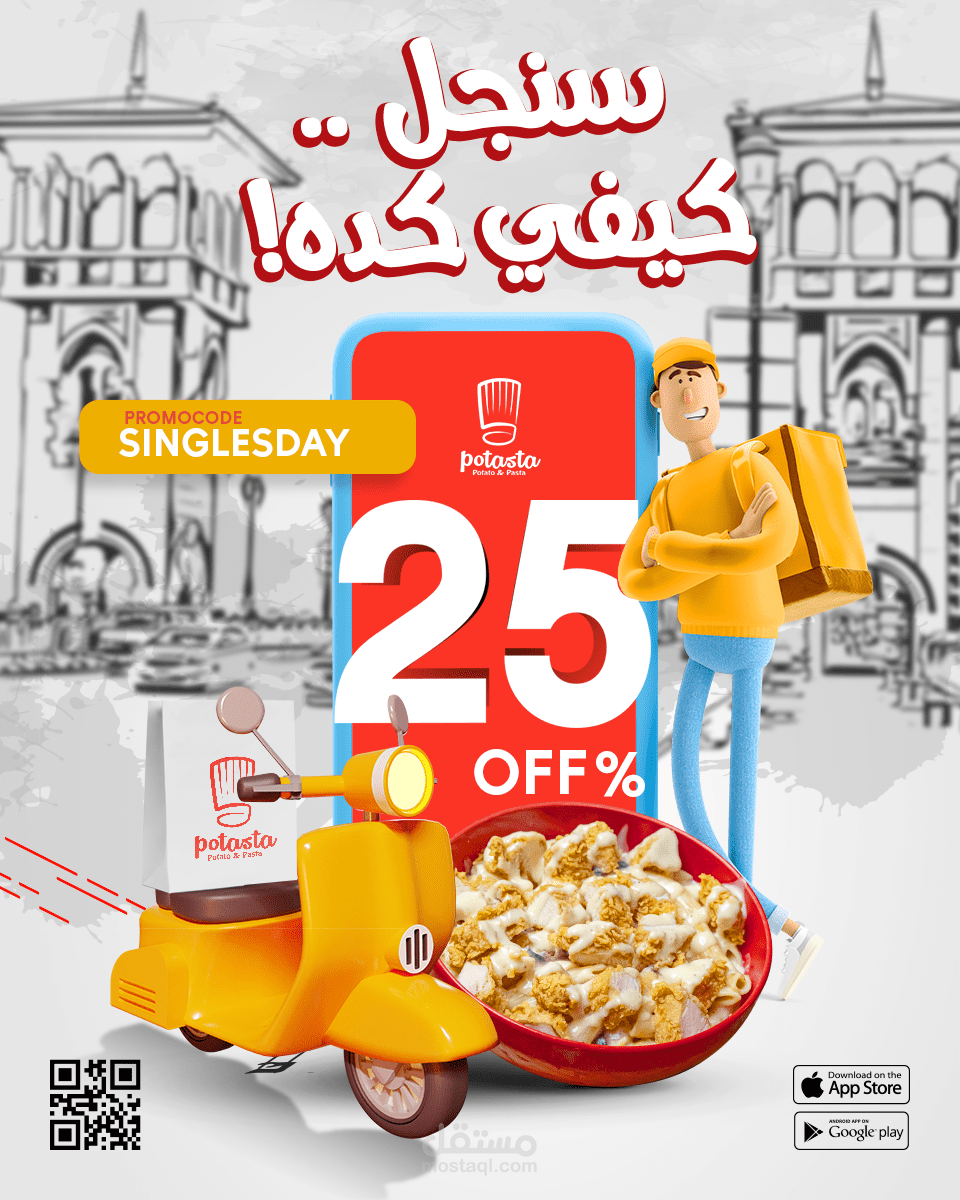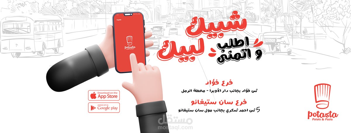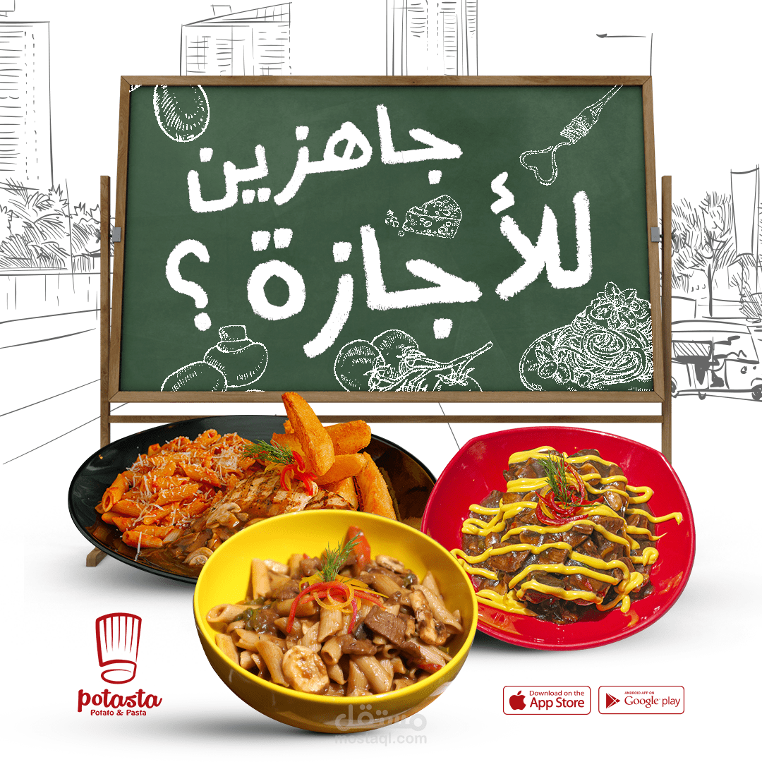 مشروع تصميمات سوشيال ميديا لمحل لبيع اطباق المكرونة و البطاطس بأنواعها