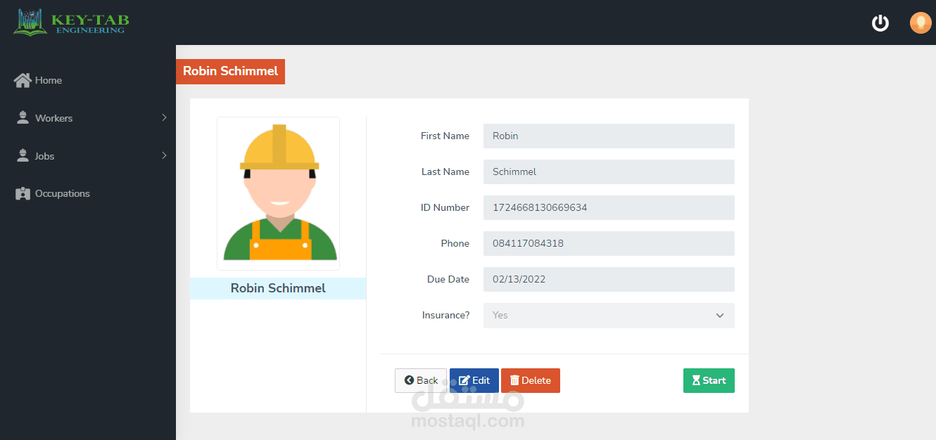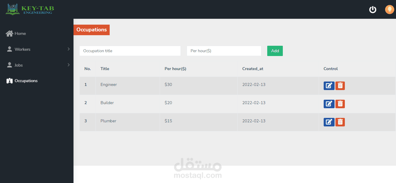- إدارة بيانات العمال الإضافة و التعديل عليها و حذفها
