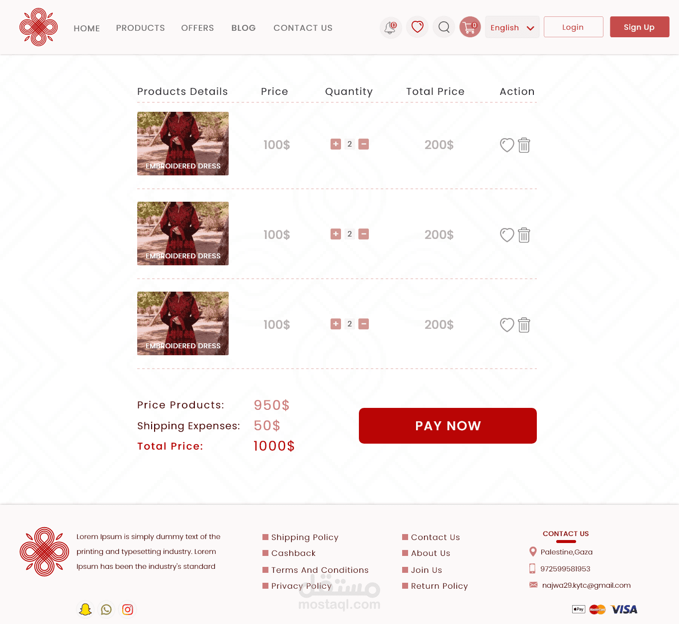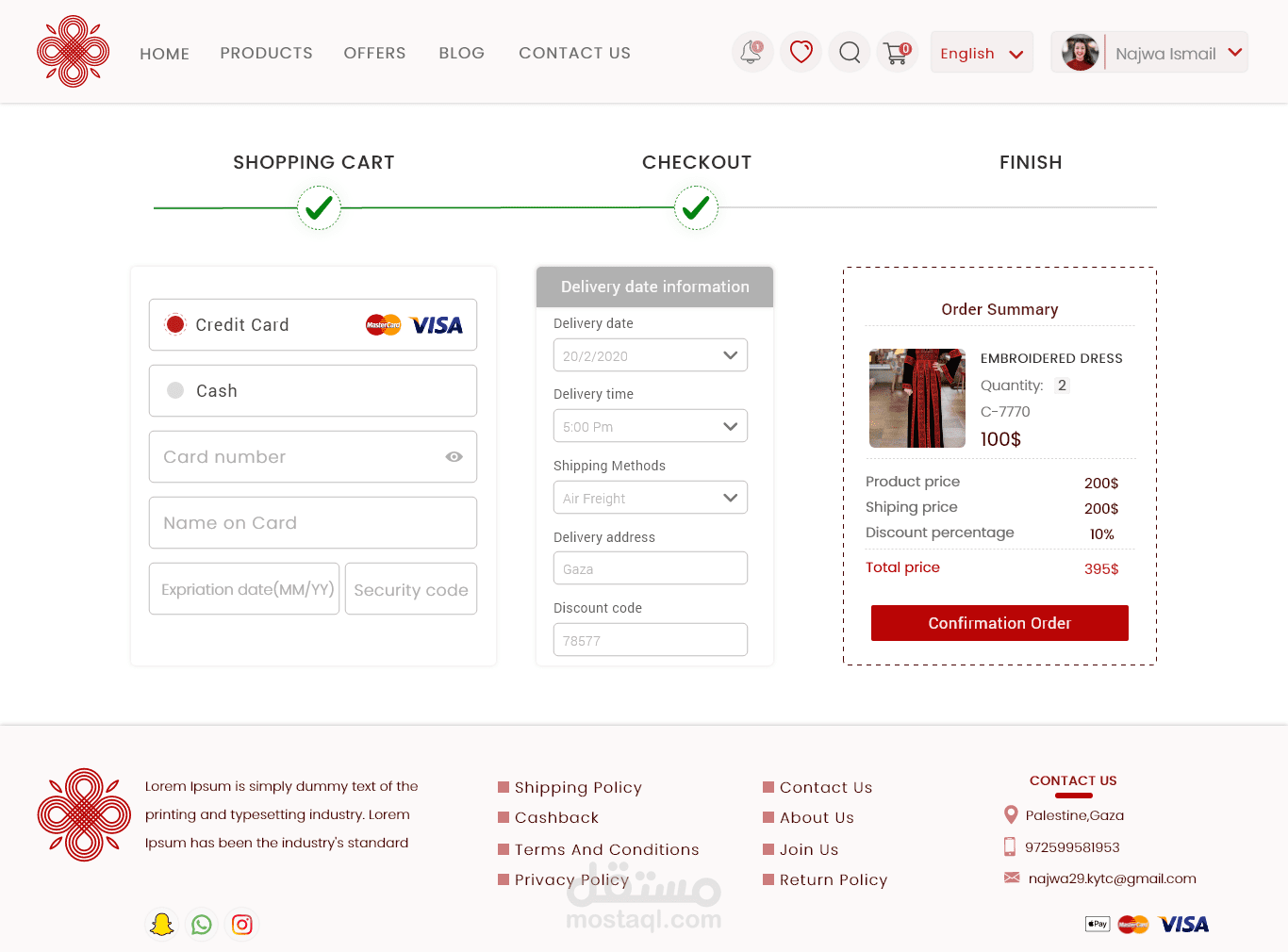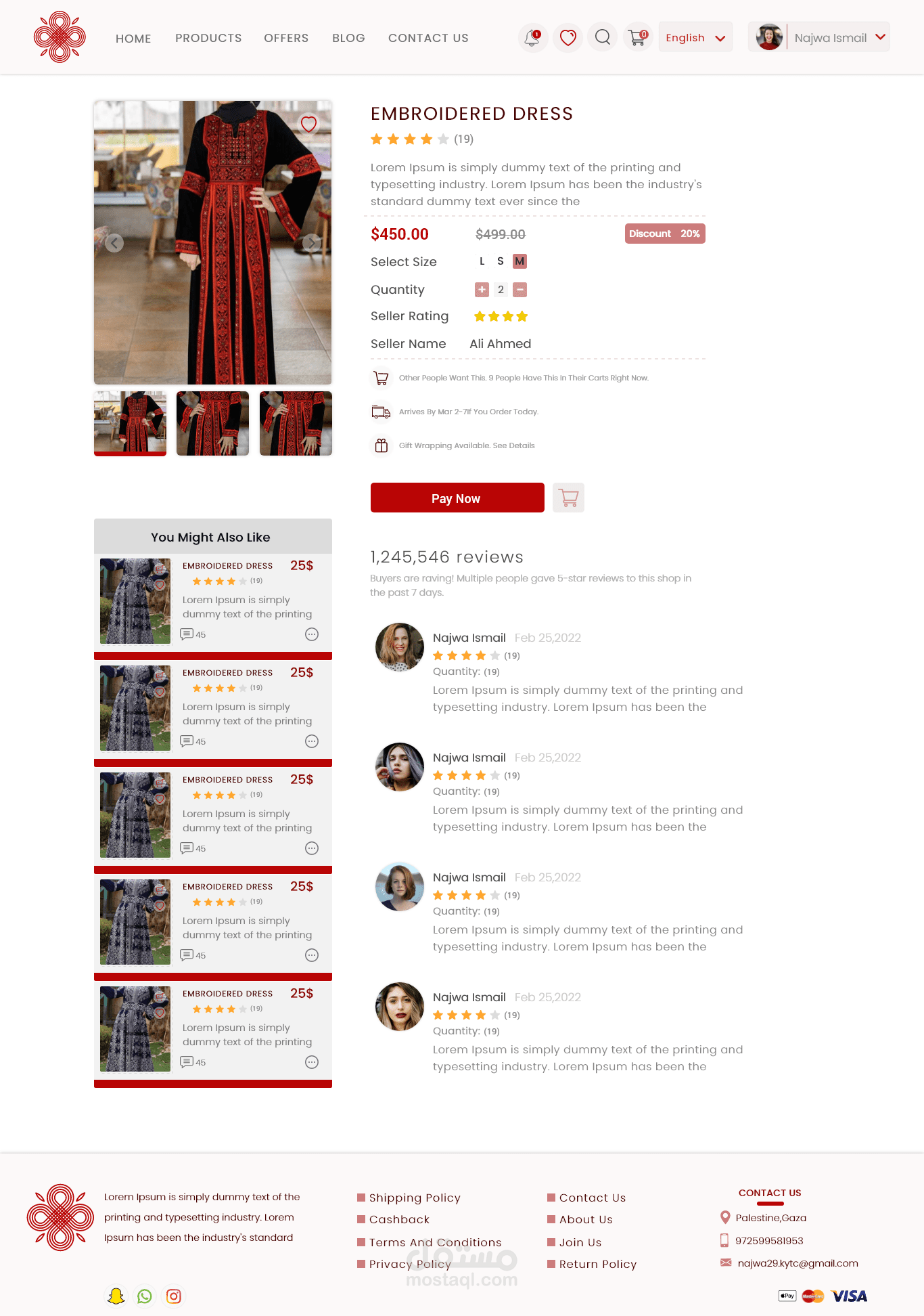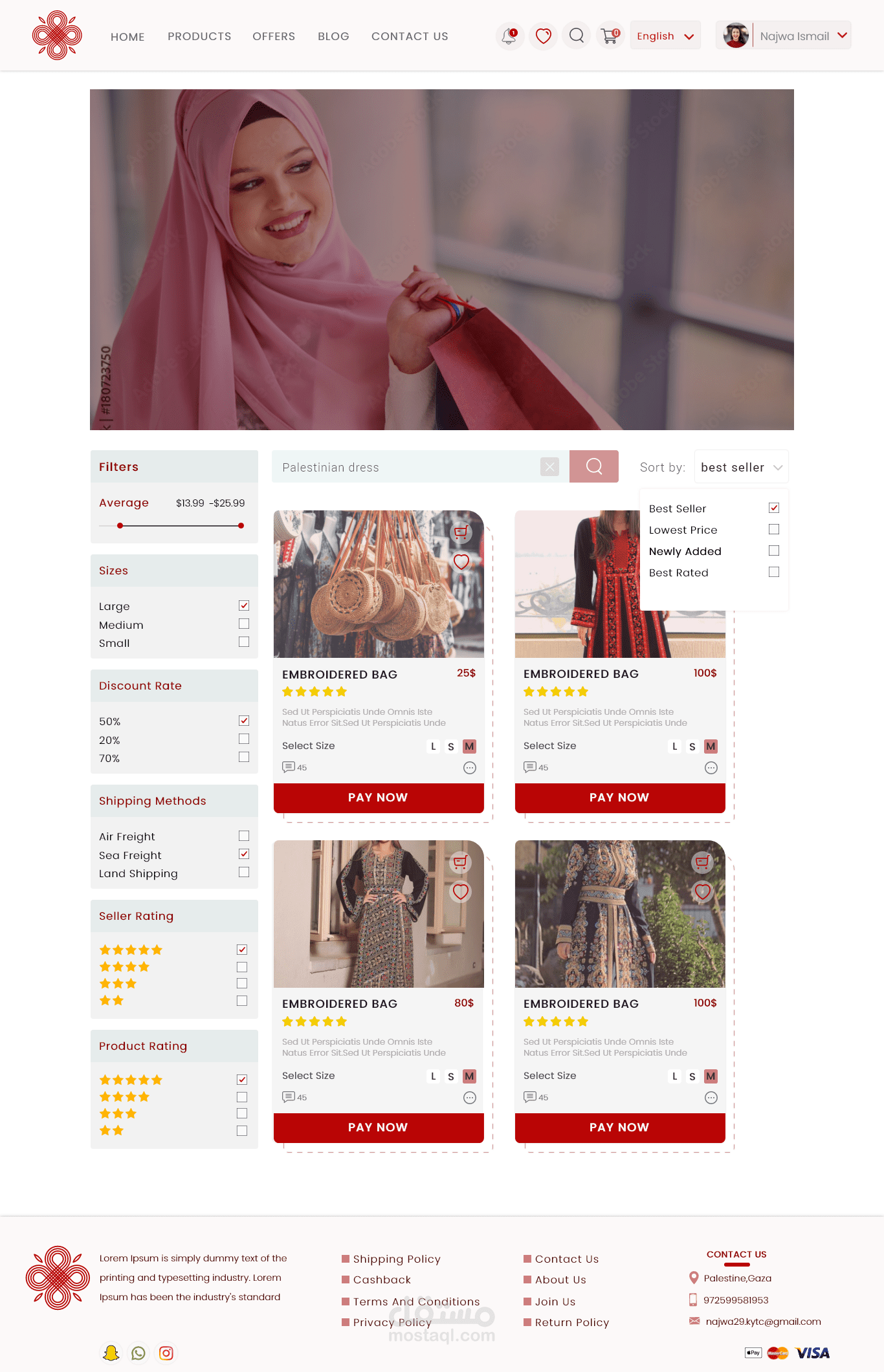 موقع لبيع المنتجات التراث الفلسطينية مع عدة طرق لدفع
