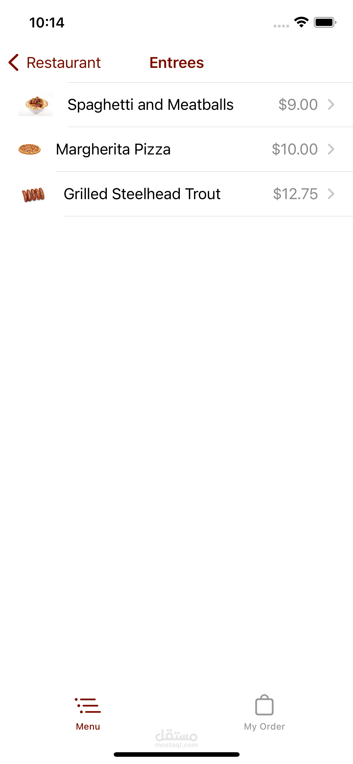 Mobile application for restaurants that view a list of meals