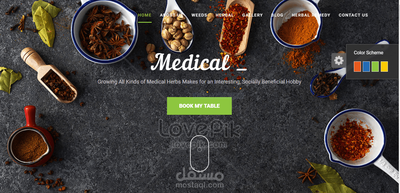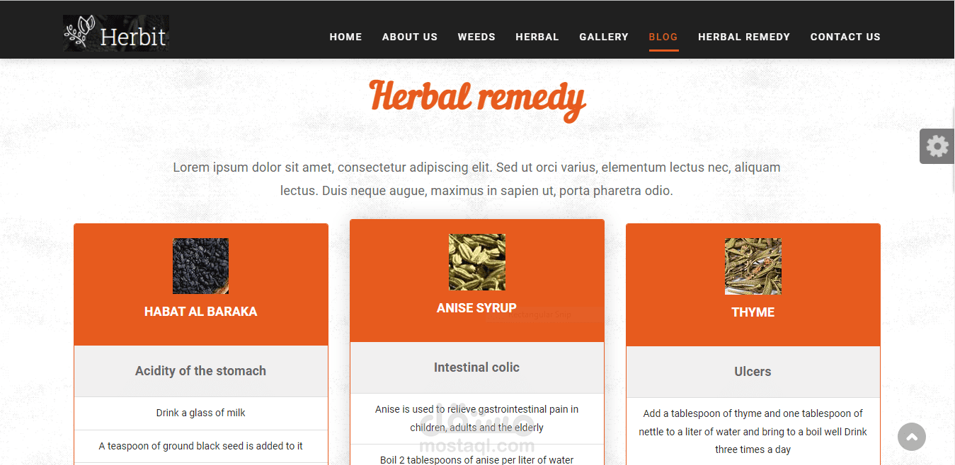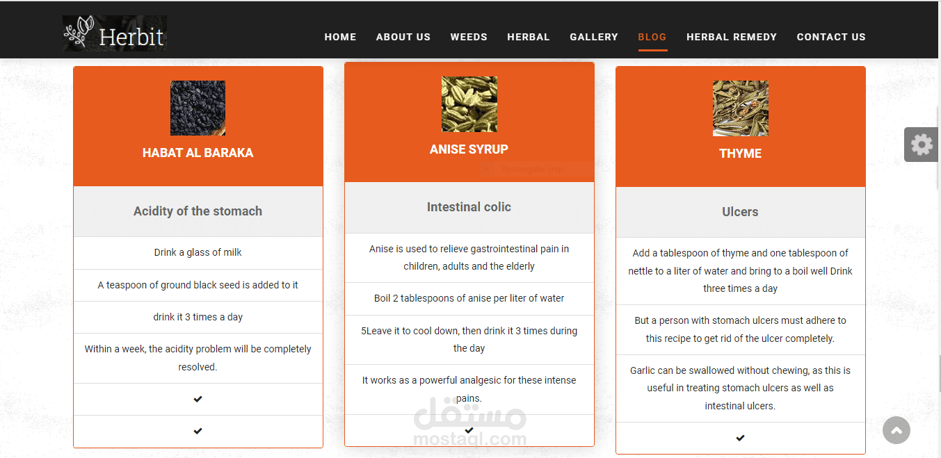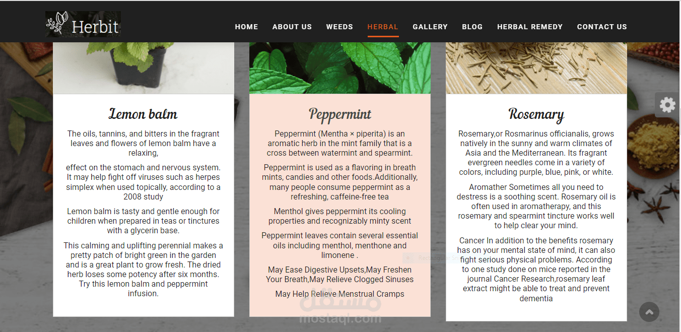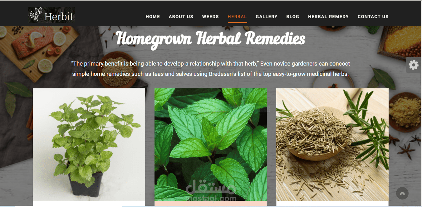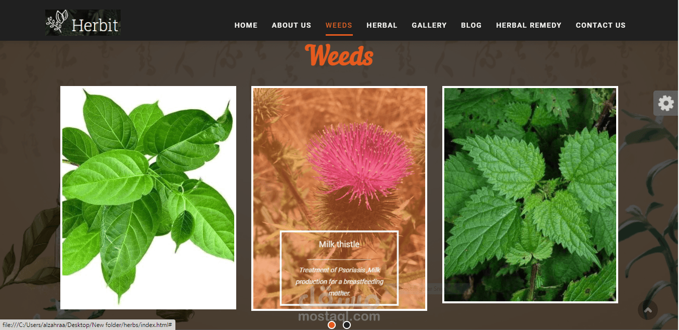 مشروع تصميم موقع العلاج بالأعشاب (single page )