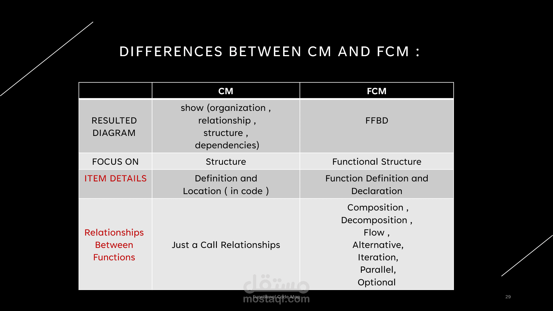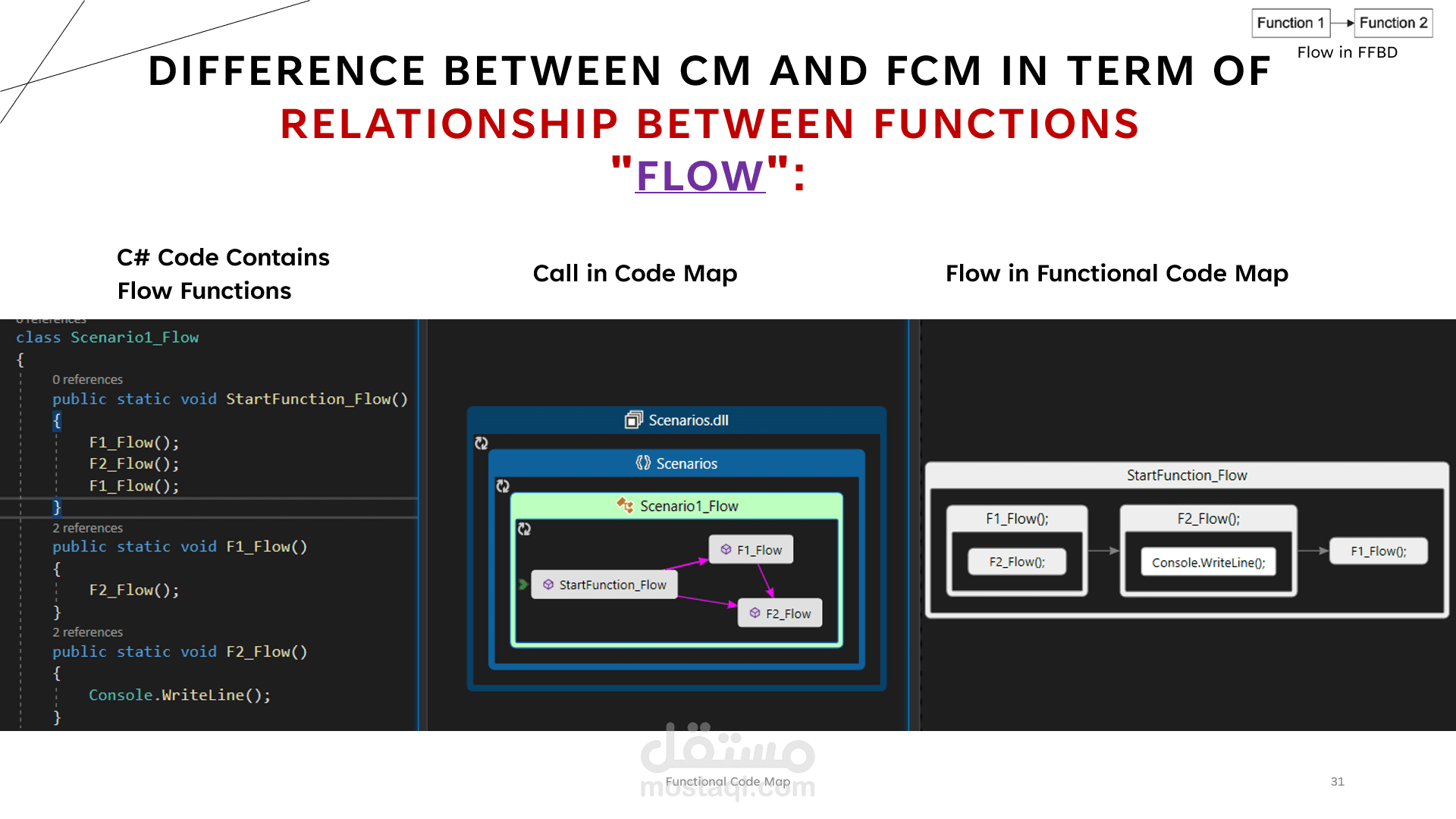 Functional Code Map , you can see the functional structure of the system with an insight . by displays a (FFBD) Functional Flow Block Diagram which is primary functional analysis technique .