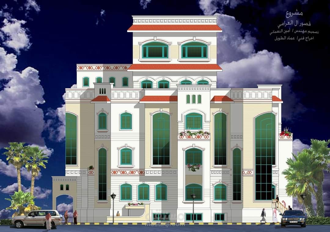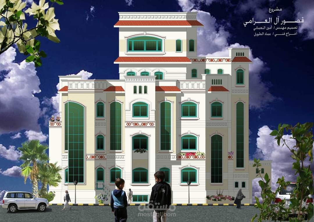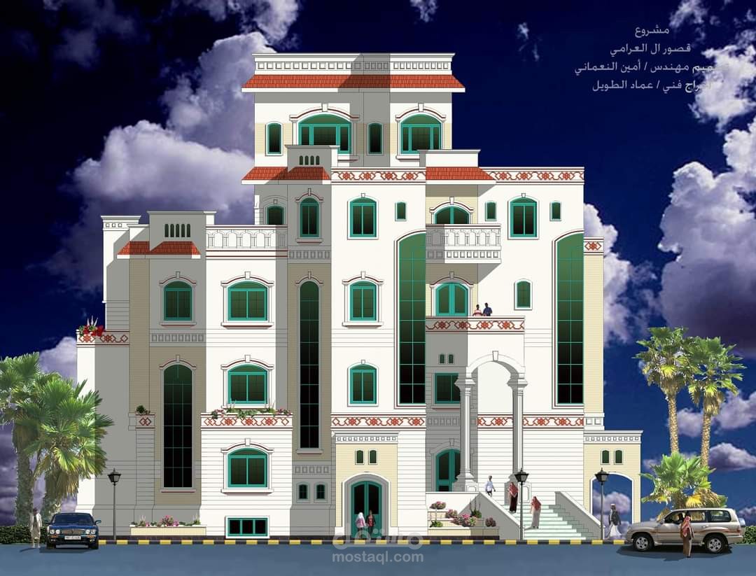 التصميم والاشراف على المشروع المكون من ثلاثة قصور ، يتكون القصر من ستة ادوار كالتالي :