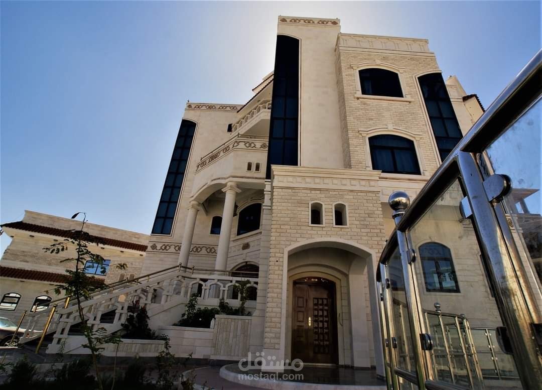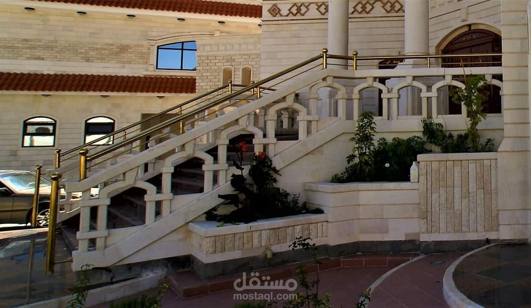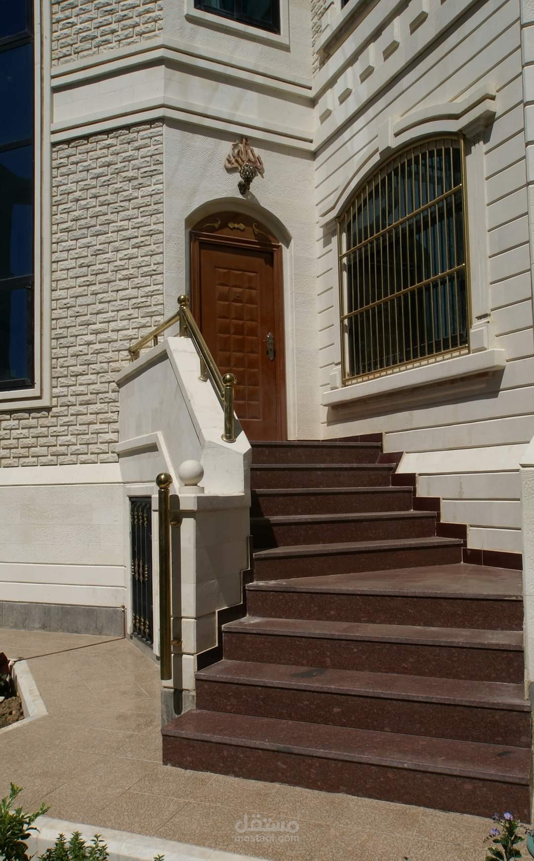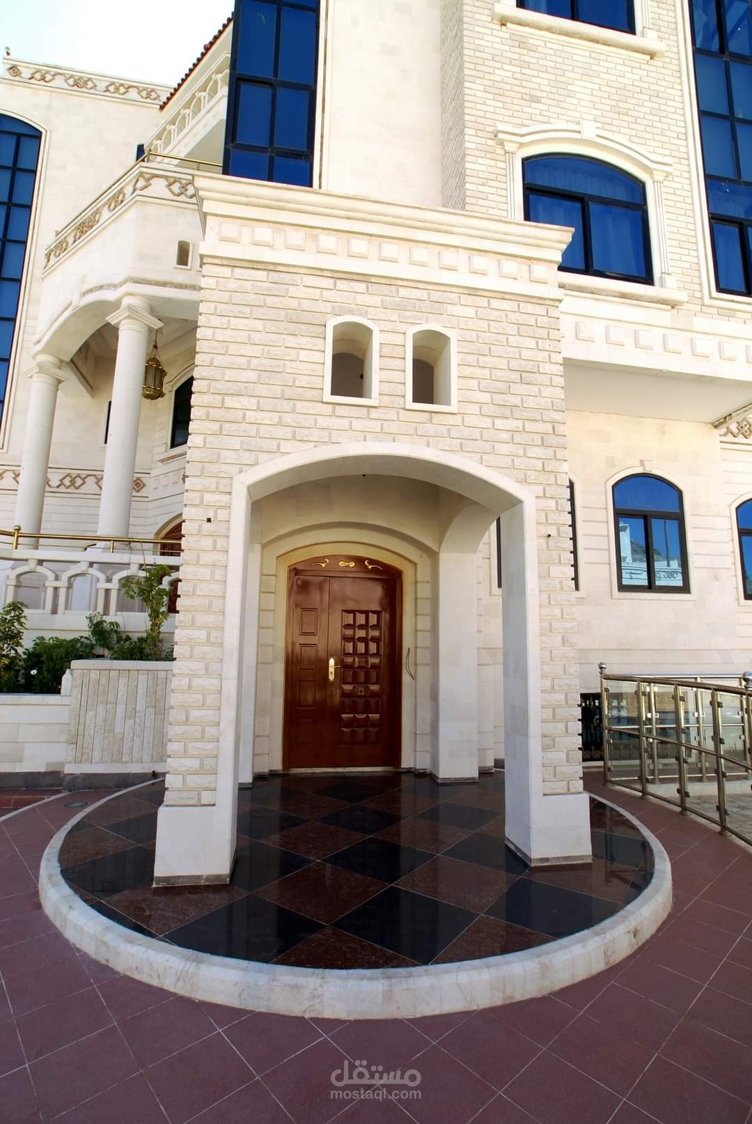 2 - دور أرضي: و يتكون من مدخل رئيسي و صالة استقبال رئيسية و مدخل ضيوف و مجلس ضيوف رجال مع الحمام و مدخل عائلي و مجلس ضيوف نساء مع الحمام و مكتب .