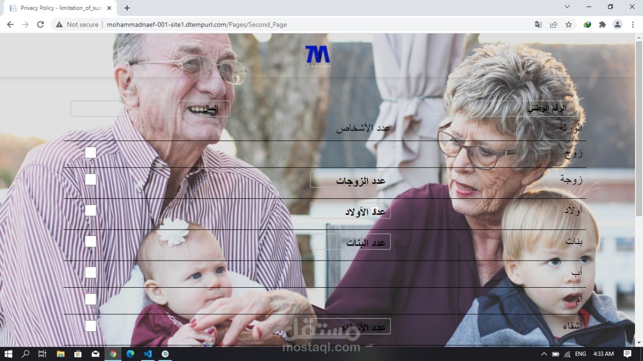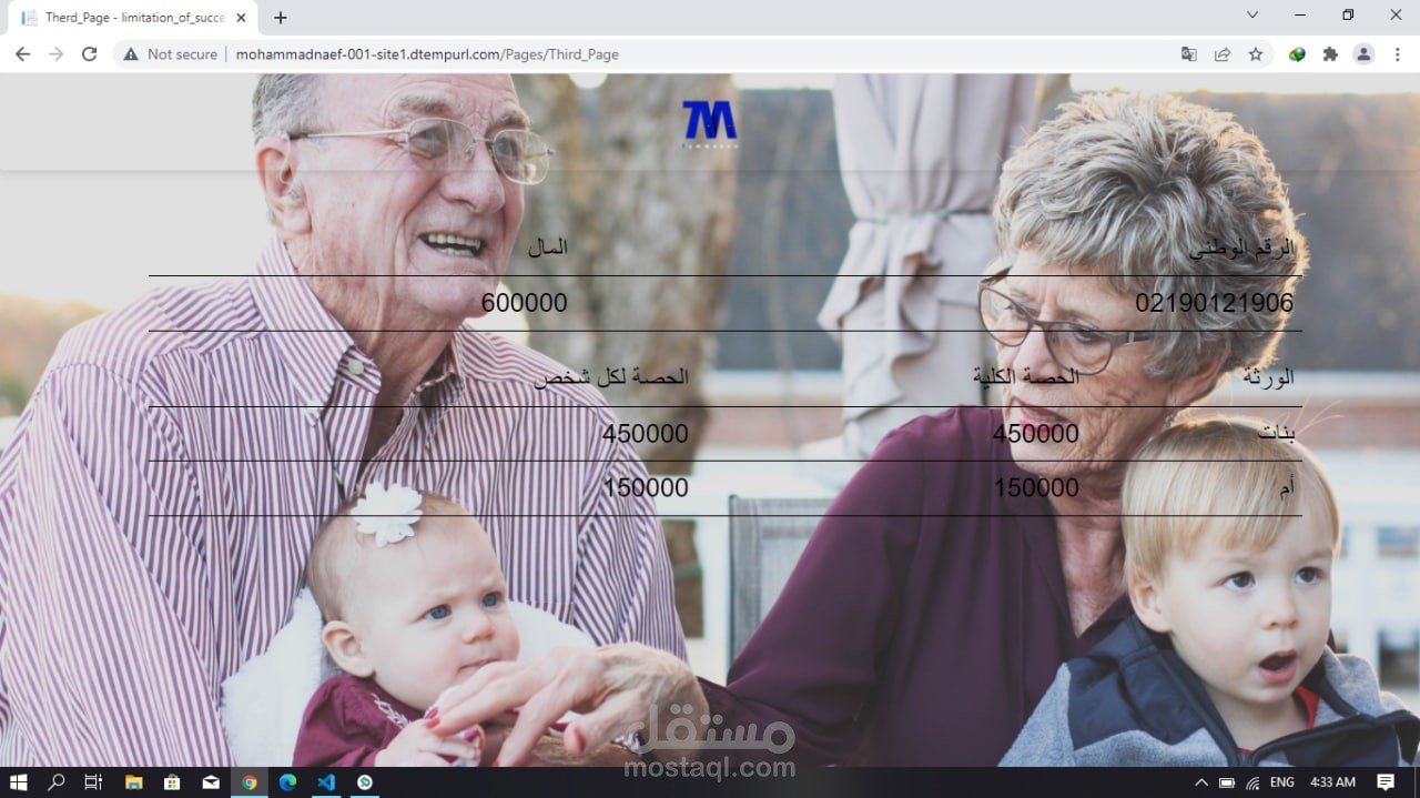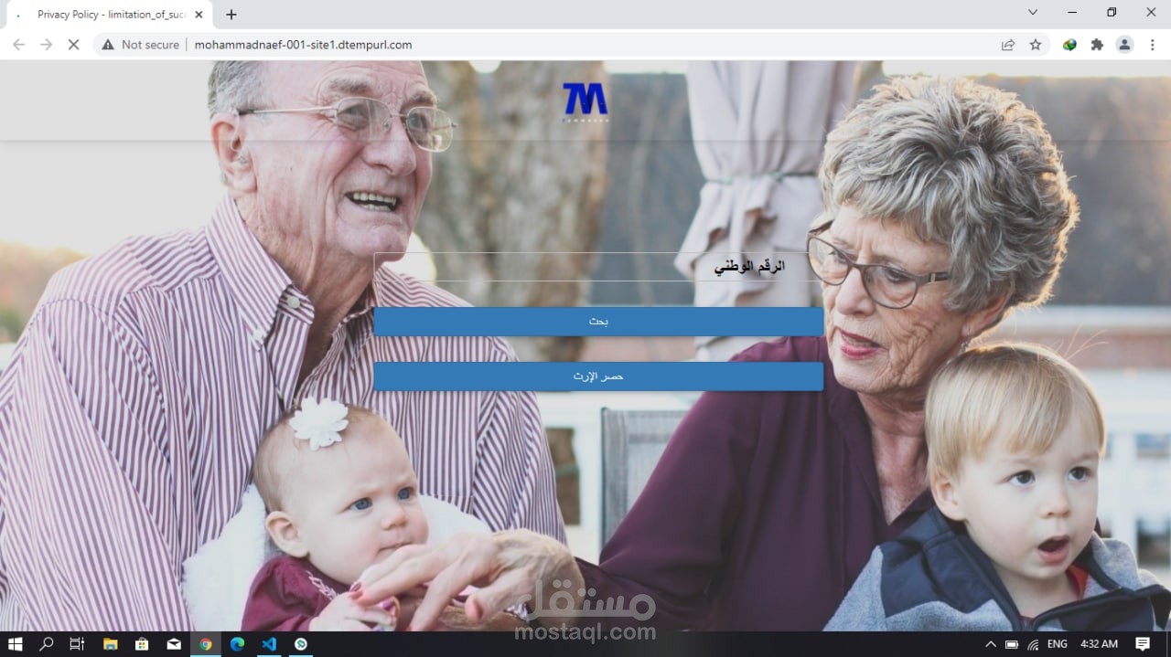 موقع بسيط وسهل يقوم بعملية حصر الارث مع امكانية حفظ العمليات ضمن قاعدة بيانات باستخدام الرقم الوطني وقد تم اعتماد قوانين الشريعة الاسلامية لحصر الارث .