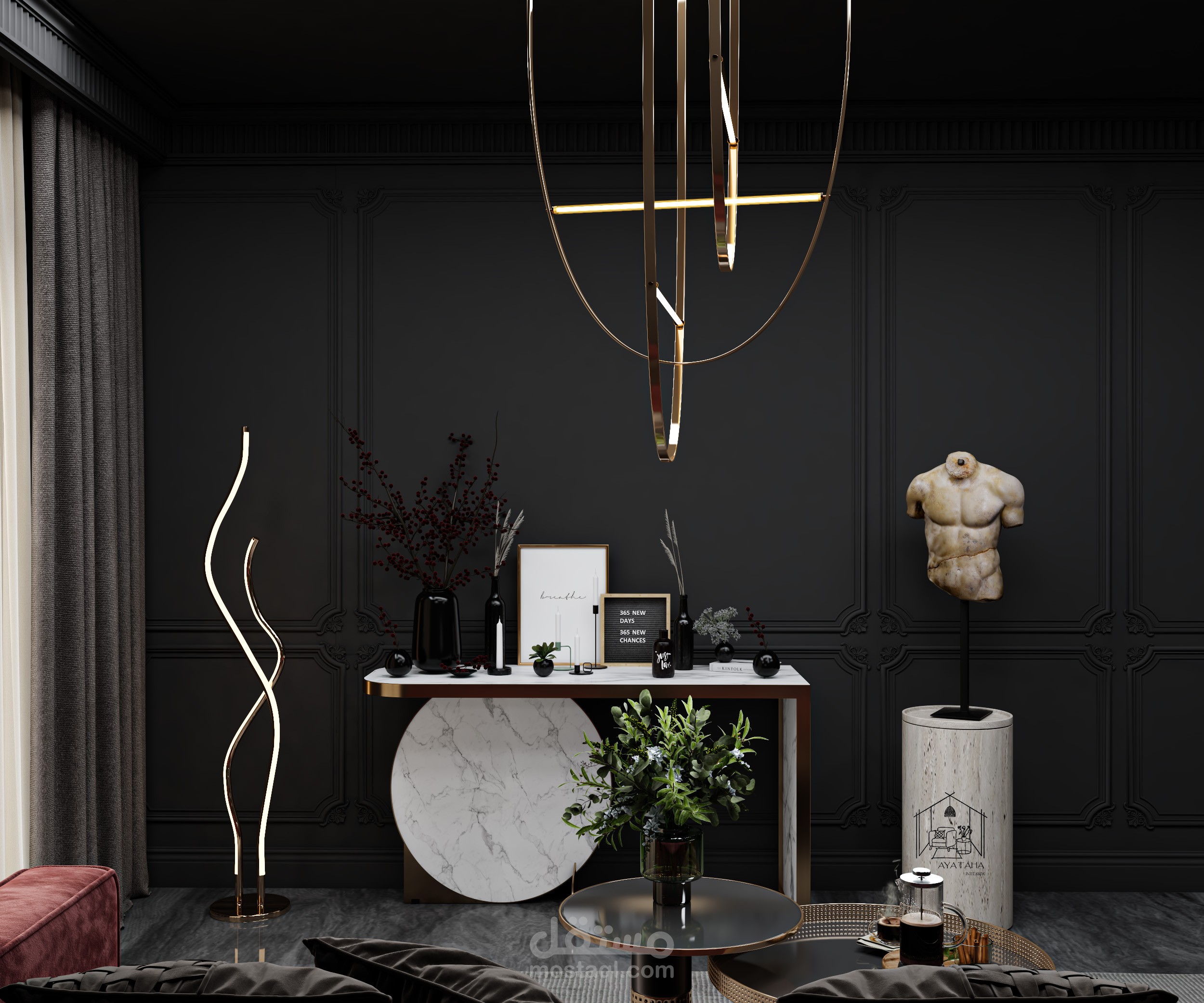 neo classic livingroom in black