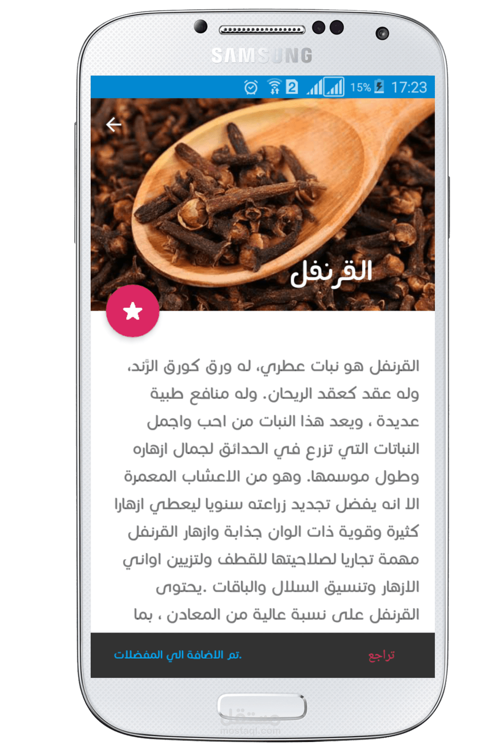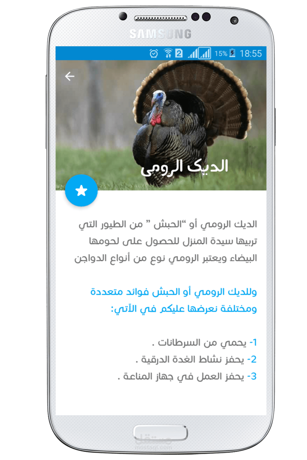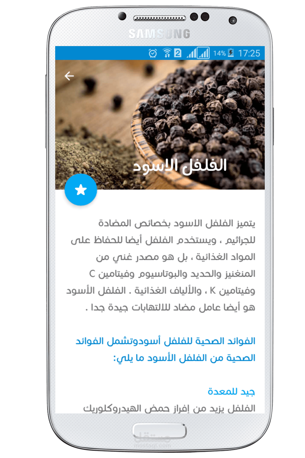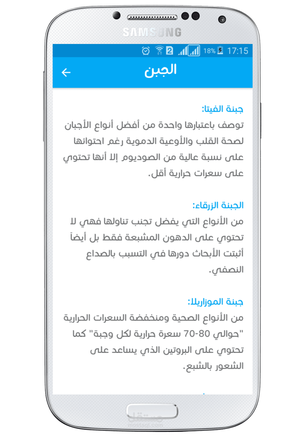 التطبيق يحتوي علي تقريبا 45 مادة للحديث عن اهميتها وفوئدها لجسم الانسان بمختلف انواع المواد .