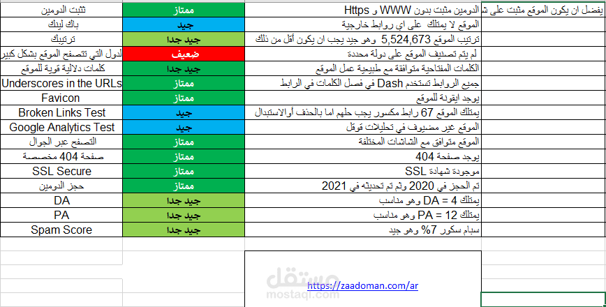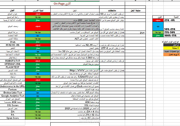 تقرير تفصيلي يشتمل على on / off page SEO