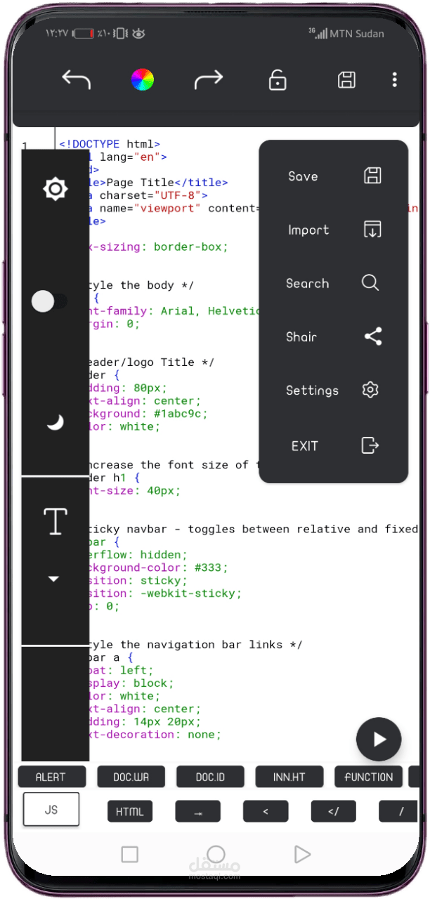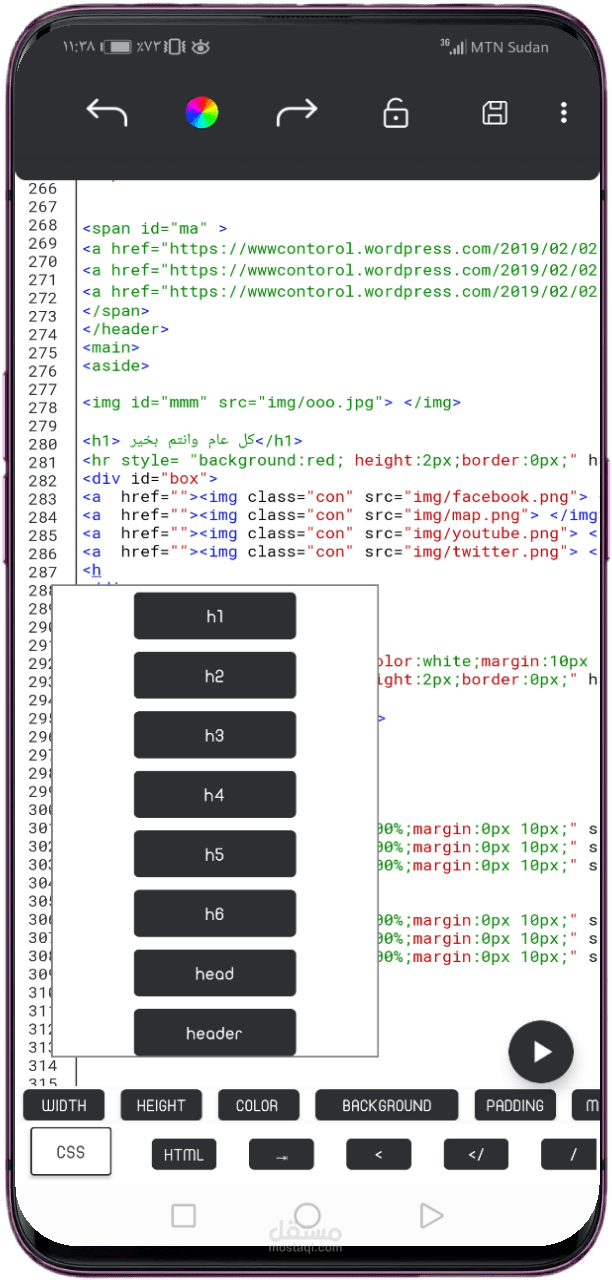 محرر أكواد لغات الويب للهاتف