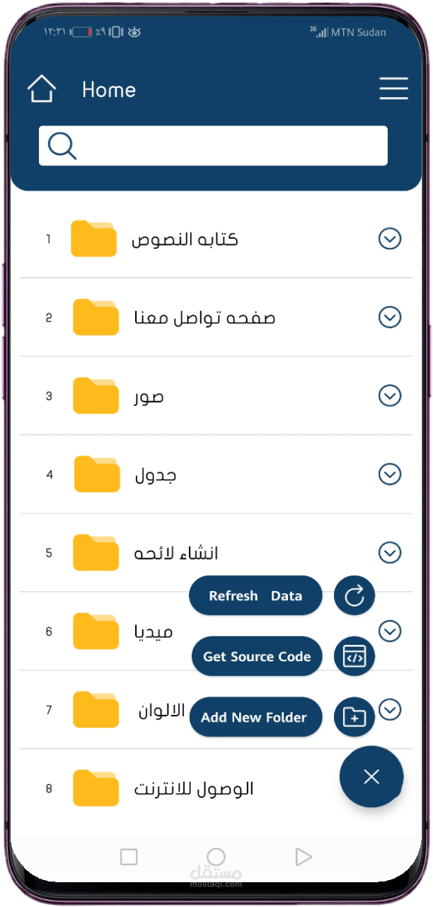* حفظ المشاريع على الهاتف