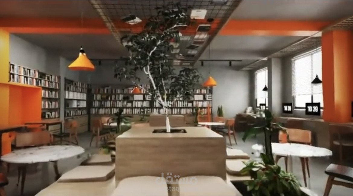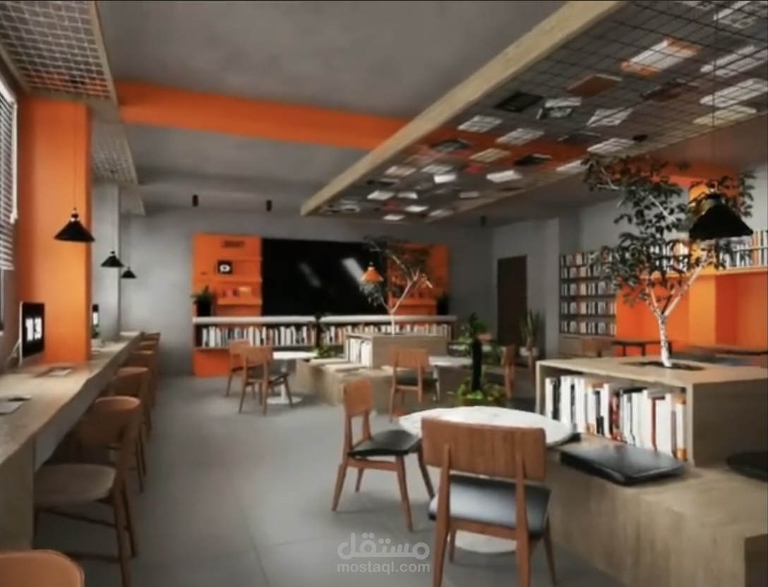 تصميم لمكتبة صغيرة ٨٨م٢ مع مكتب اداري في مدينة بيروت.
