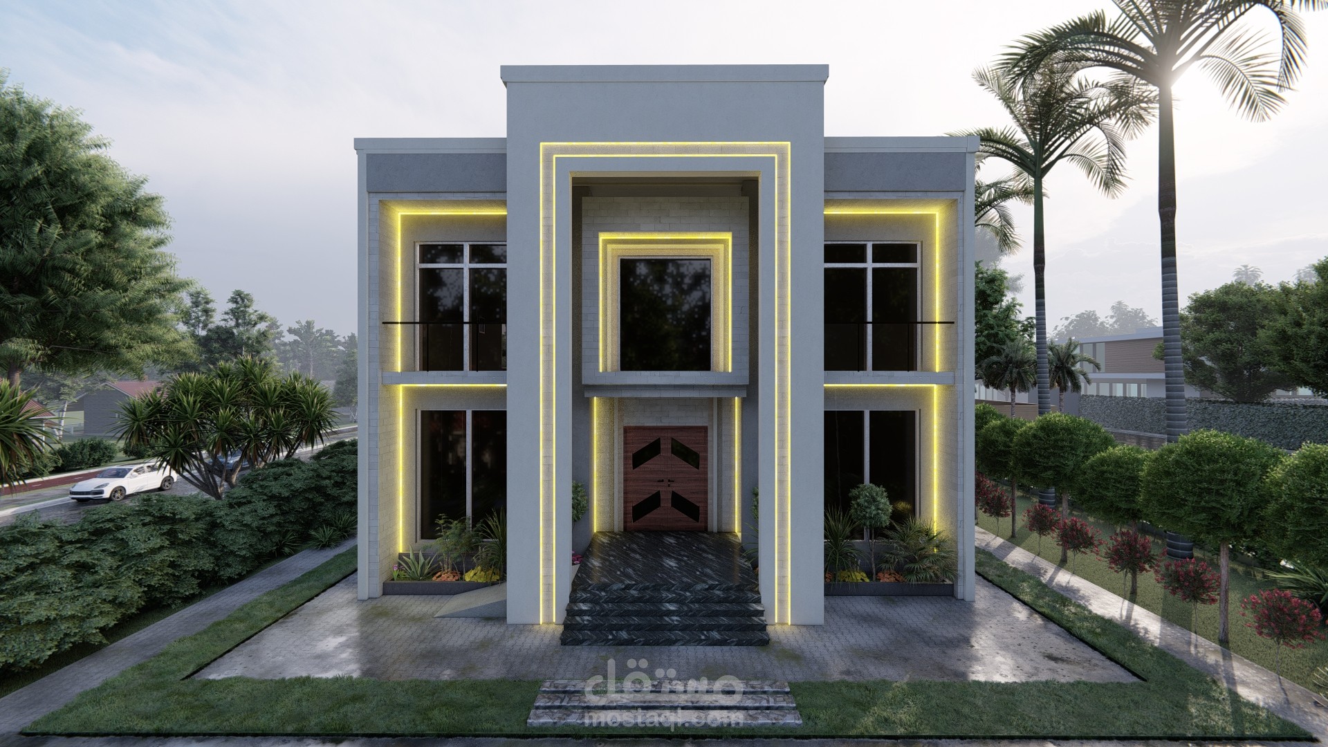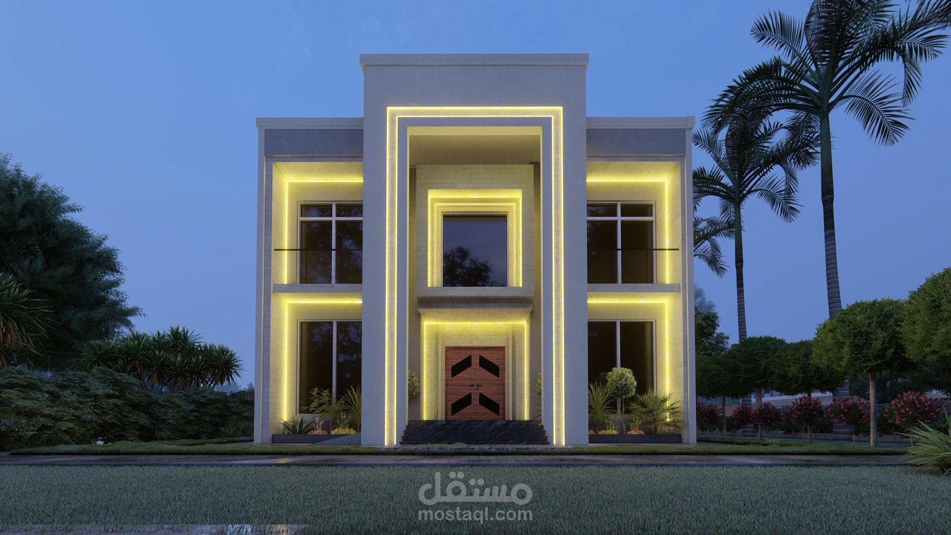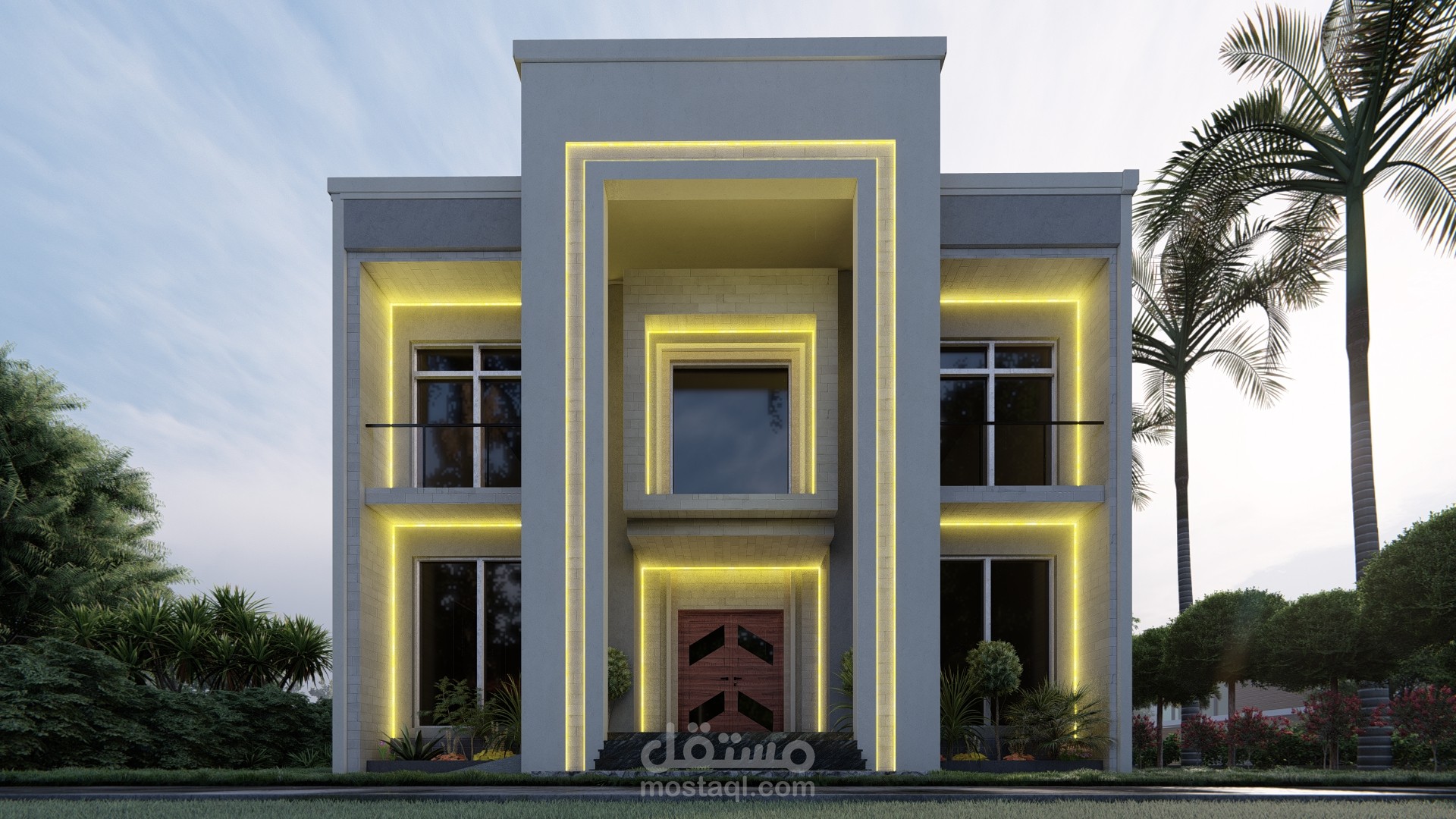 تصميم واجهة بالطراز الحديث واخراج اللوحات التنفيذية اللازمة