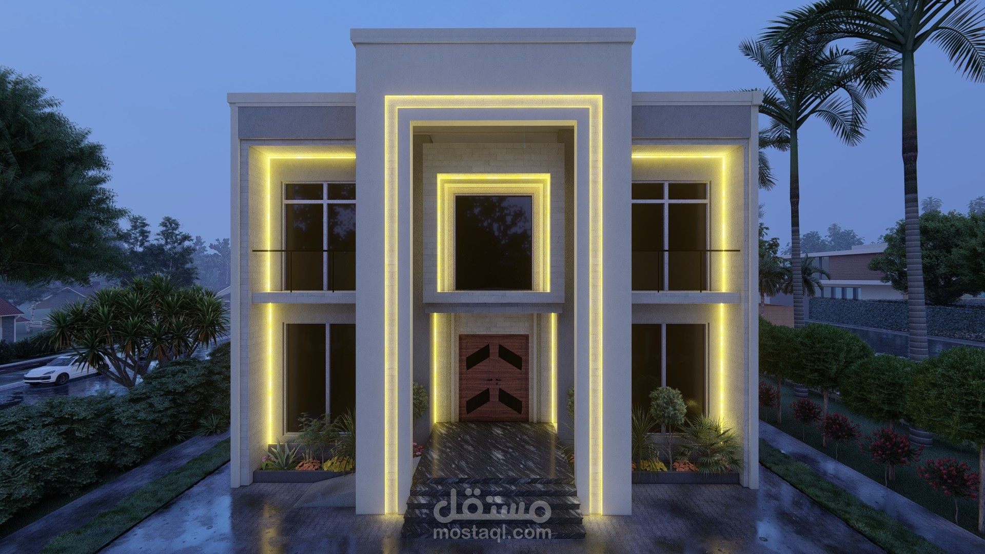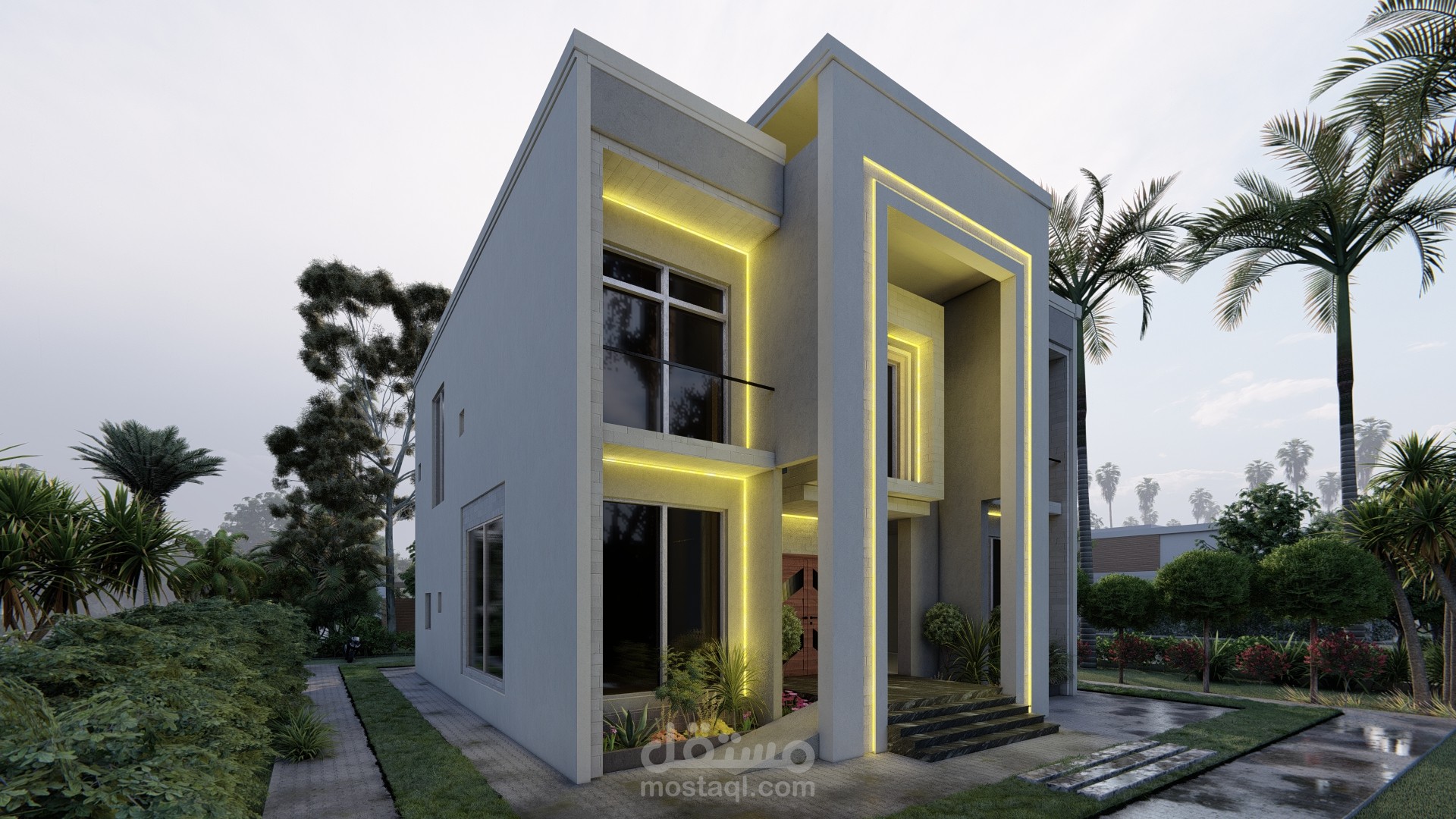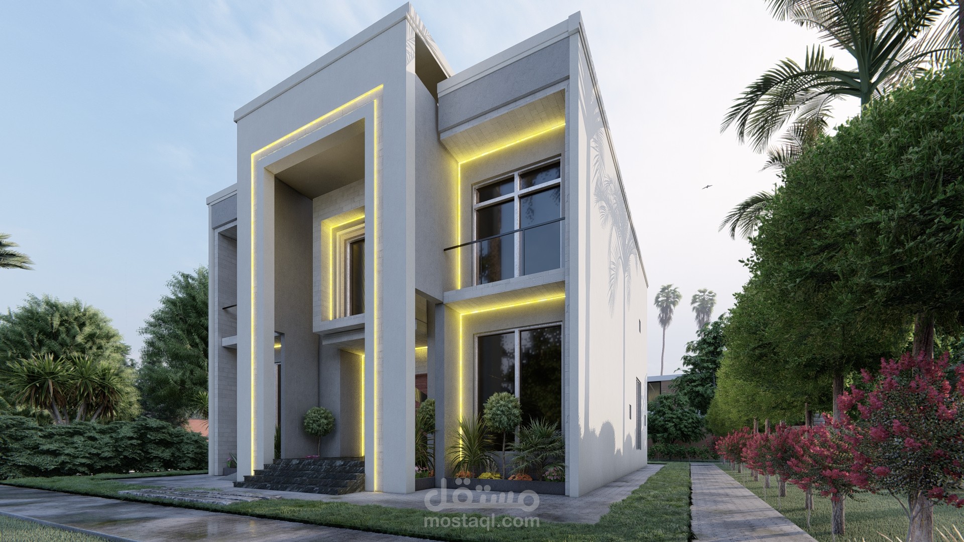 تصميم واجهة بالطراز الحديث واخراج اللوحات التنفيذية اللازمة