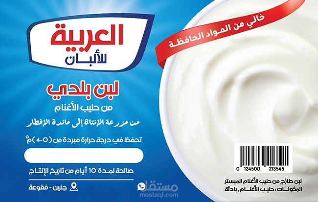 تصميم ليبيل ( ستيكر ) علبة لبن - لزبون بفلسطين في الضفة الغربية بمدينة جنين.