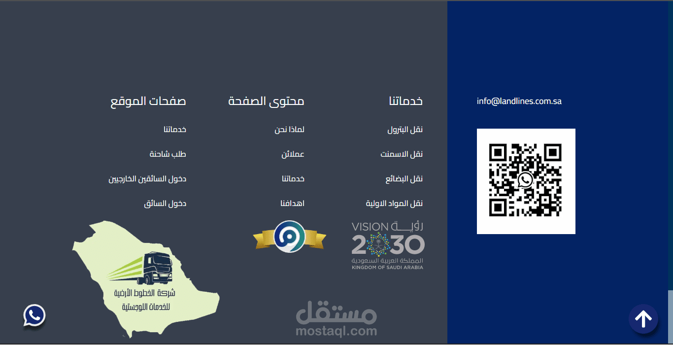 موقع الكتروني خاص بشركة الخطوط الارضية للخدمات اللوجستية، قمت باستخدام ادوبي xd في تصميم صفحات الموقع في البداية ثم قمت بالبدء بالعمل على برمجة صفحات الموقع عبر next js .