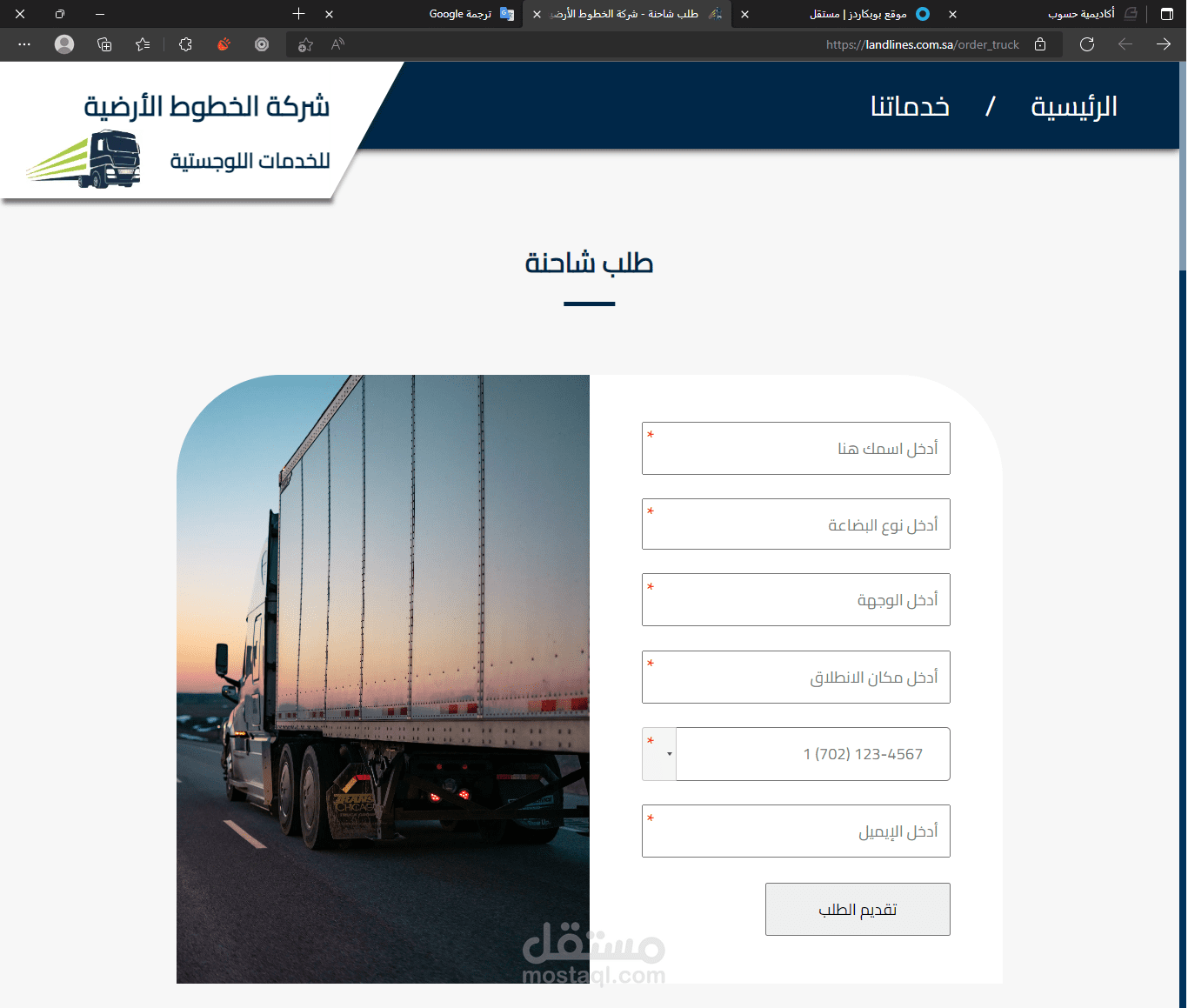 كما يتيح الموقع طلب شاحنة عبر الموقع وكذلك التسجيل كسائق خارجي