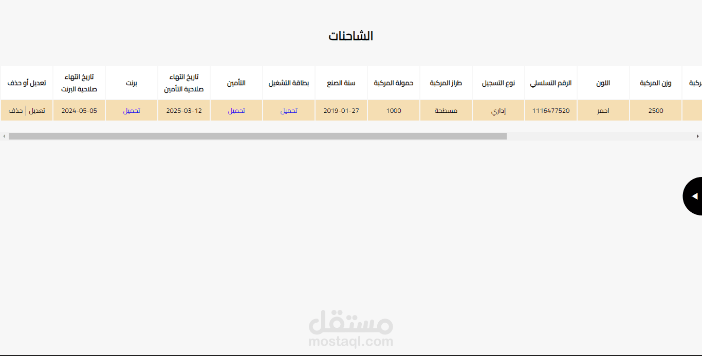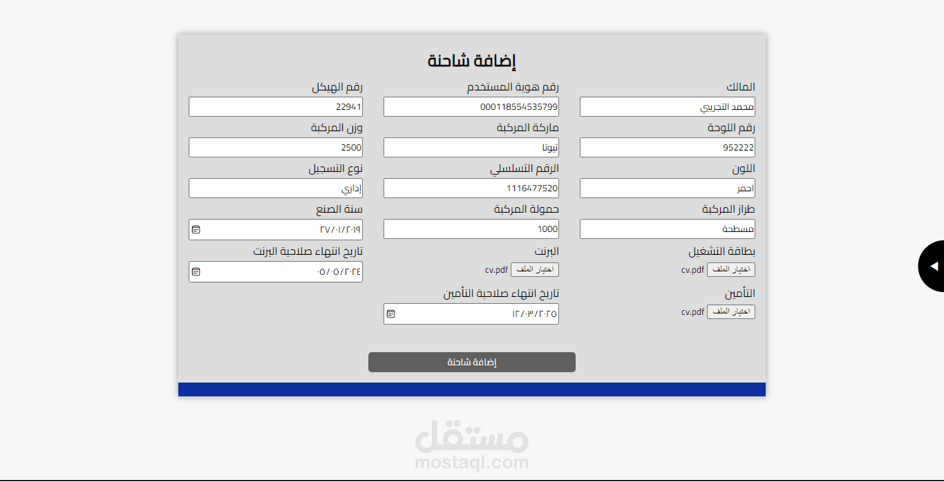 تتيح اضافة شاحنات مع الملفات الخاصة بكل شاحنة