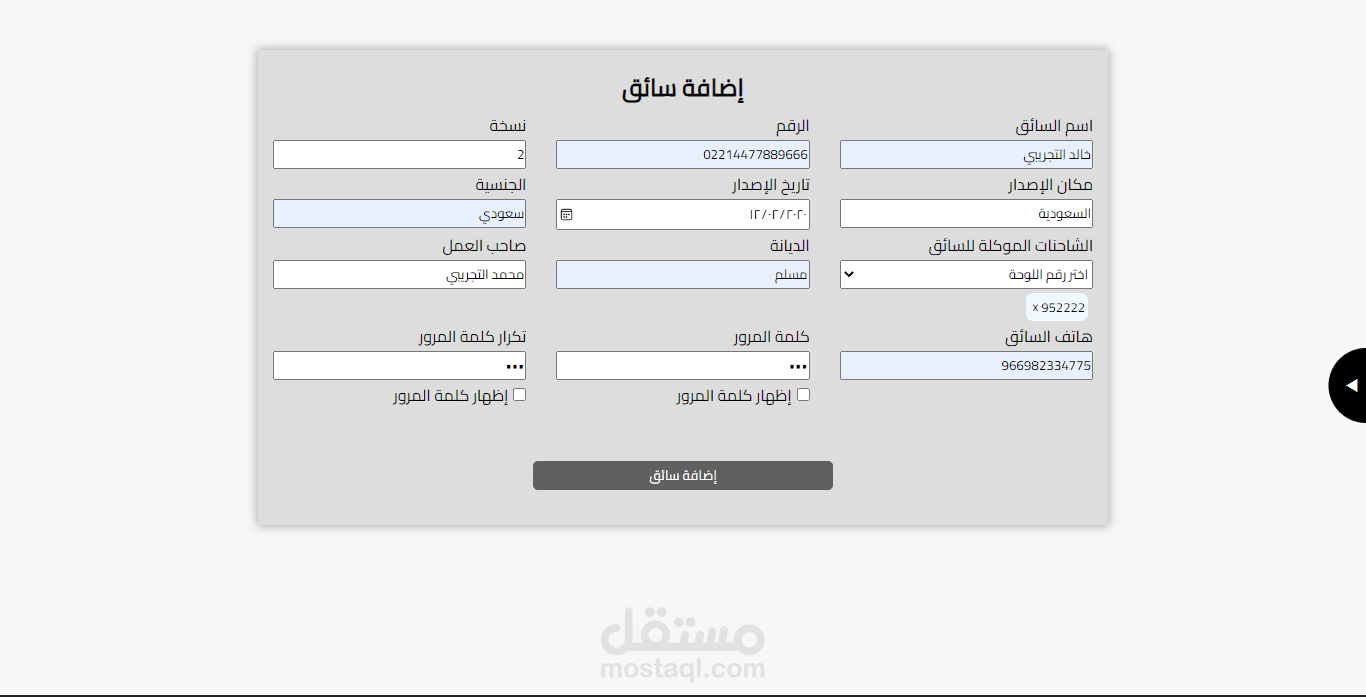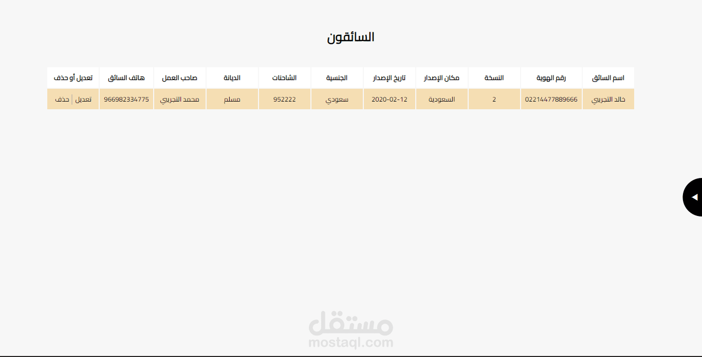 اضافة سائقين وتعديلهم وحذفهم