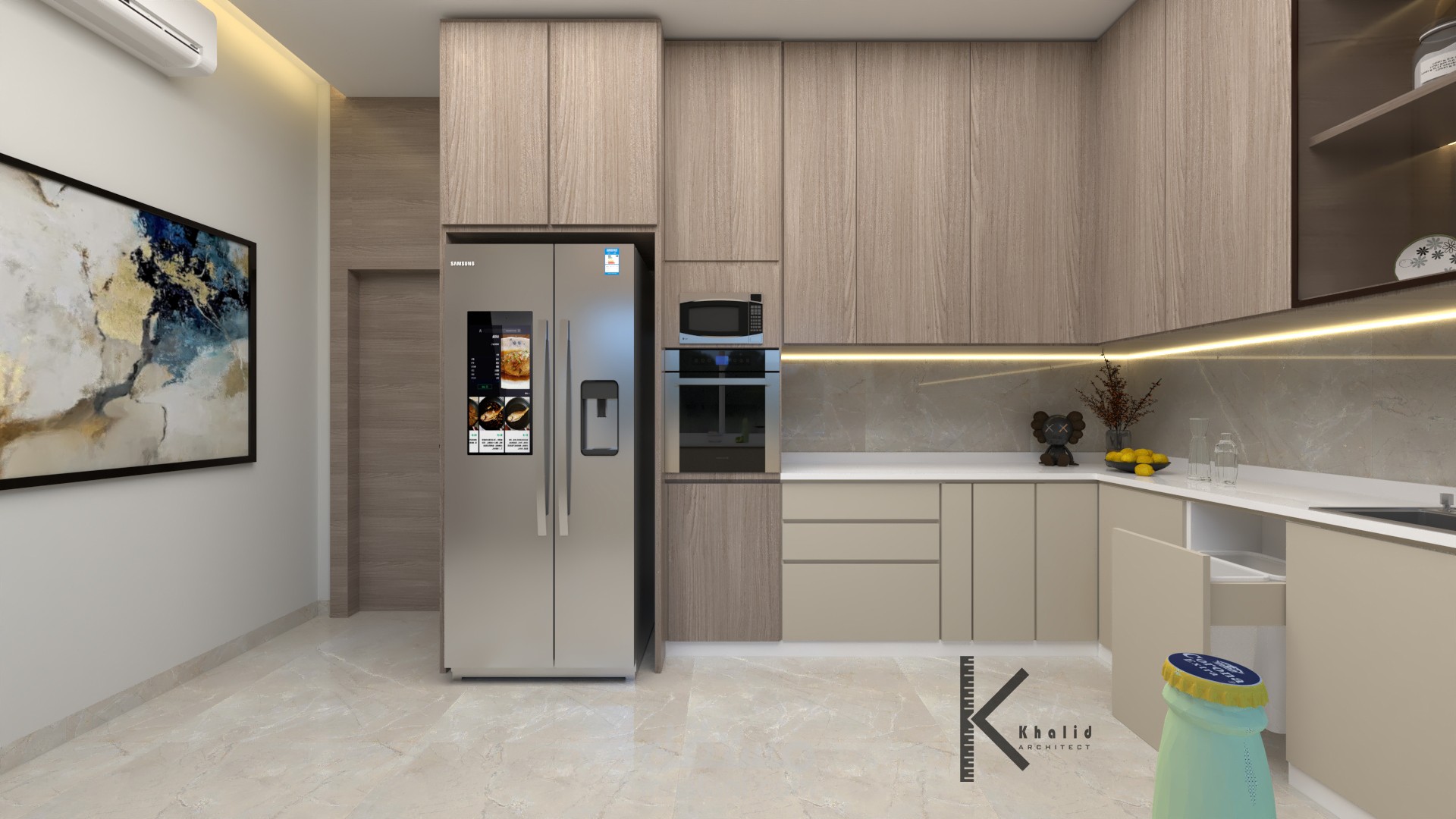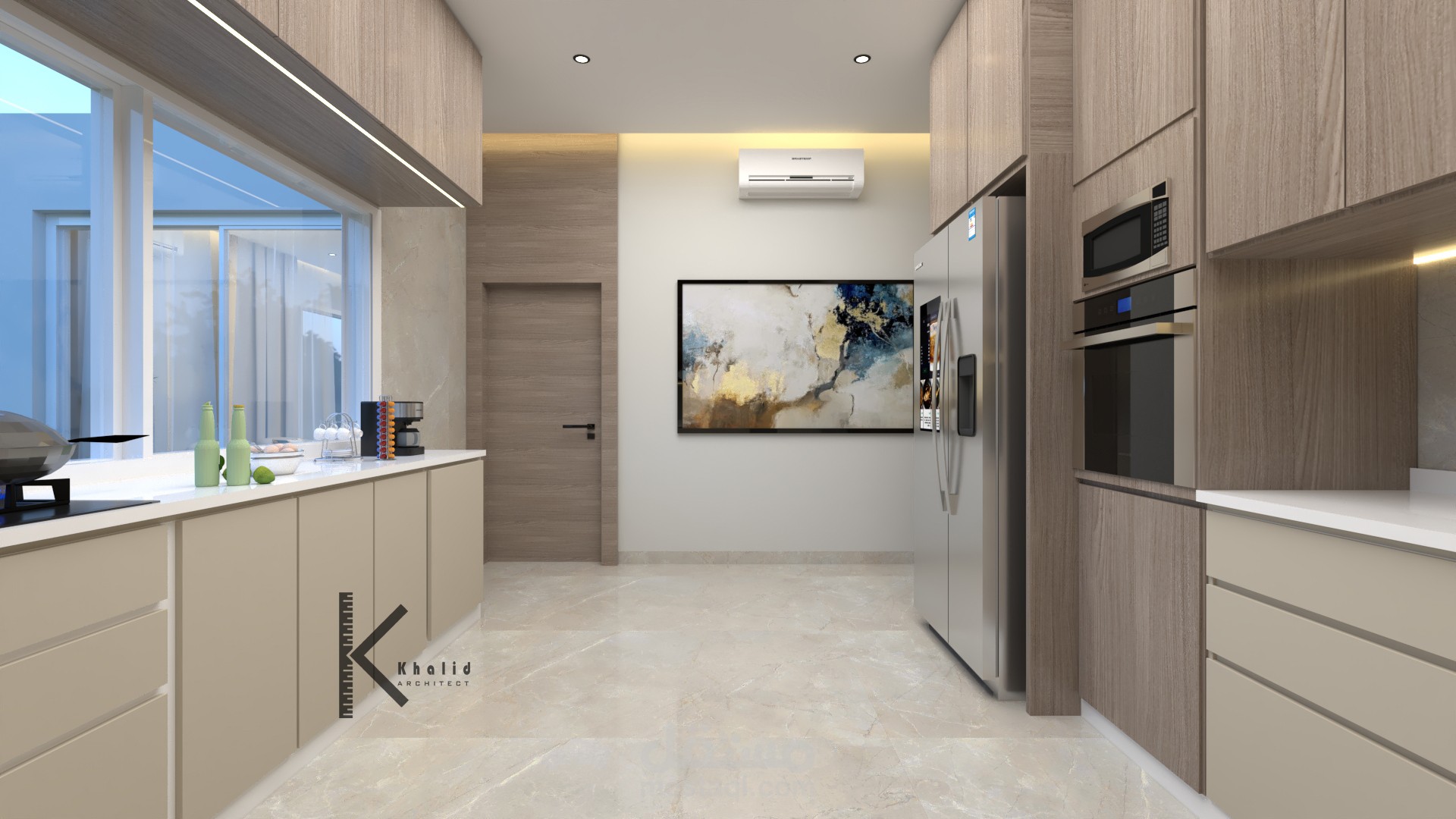 تصميم داخلي لمطبخ على الطراز المودرن ضمن فيلا بالمملكه وتجهيز مخططات تنفيذية كاملة للمشروع