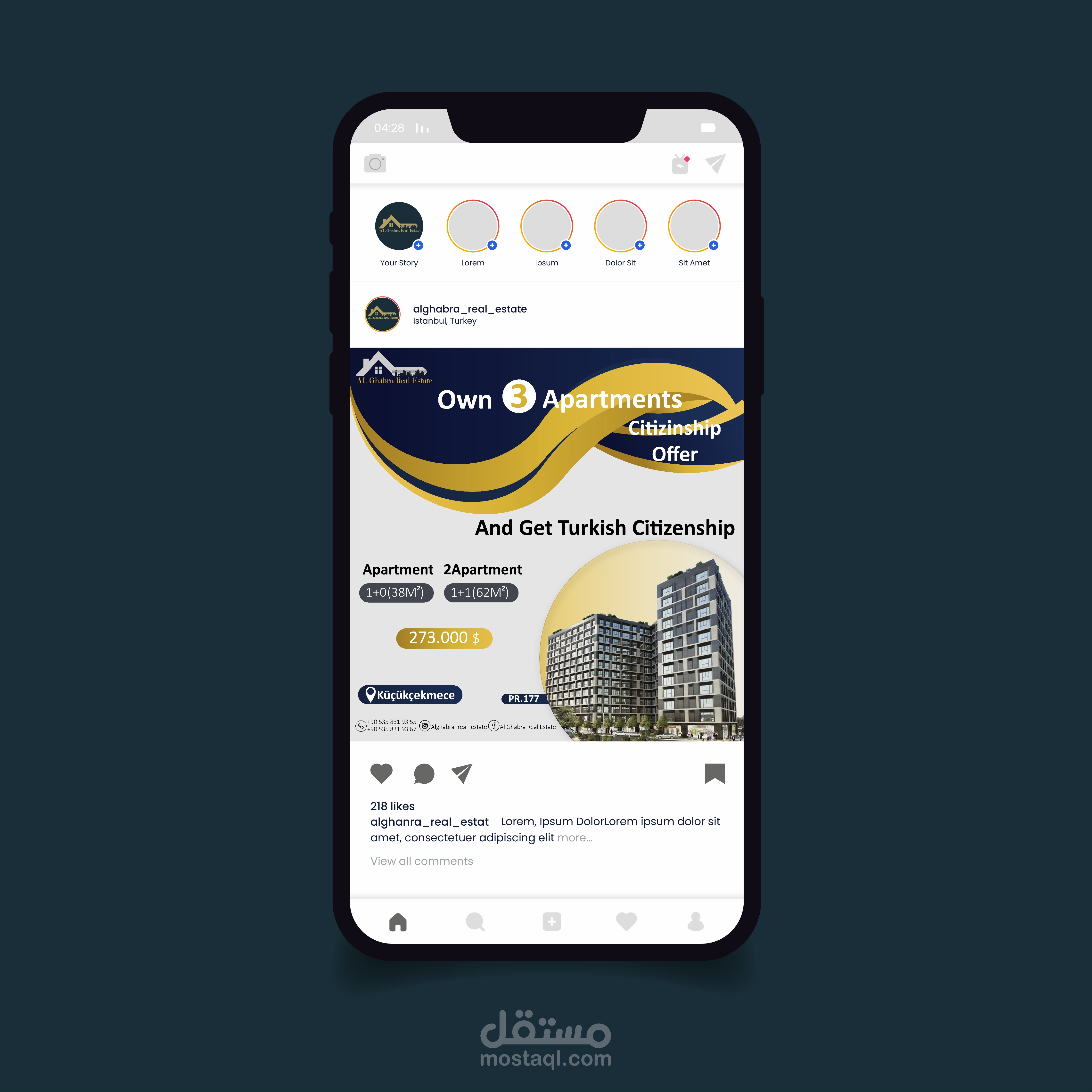 للتسويق العقاري تعمل بشكل أساسي على موقع الانستجرام.