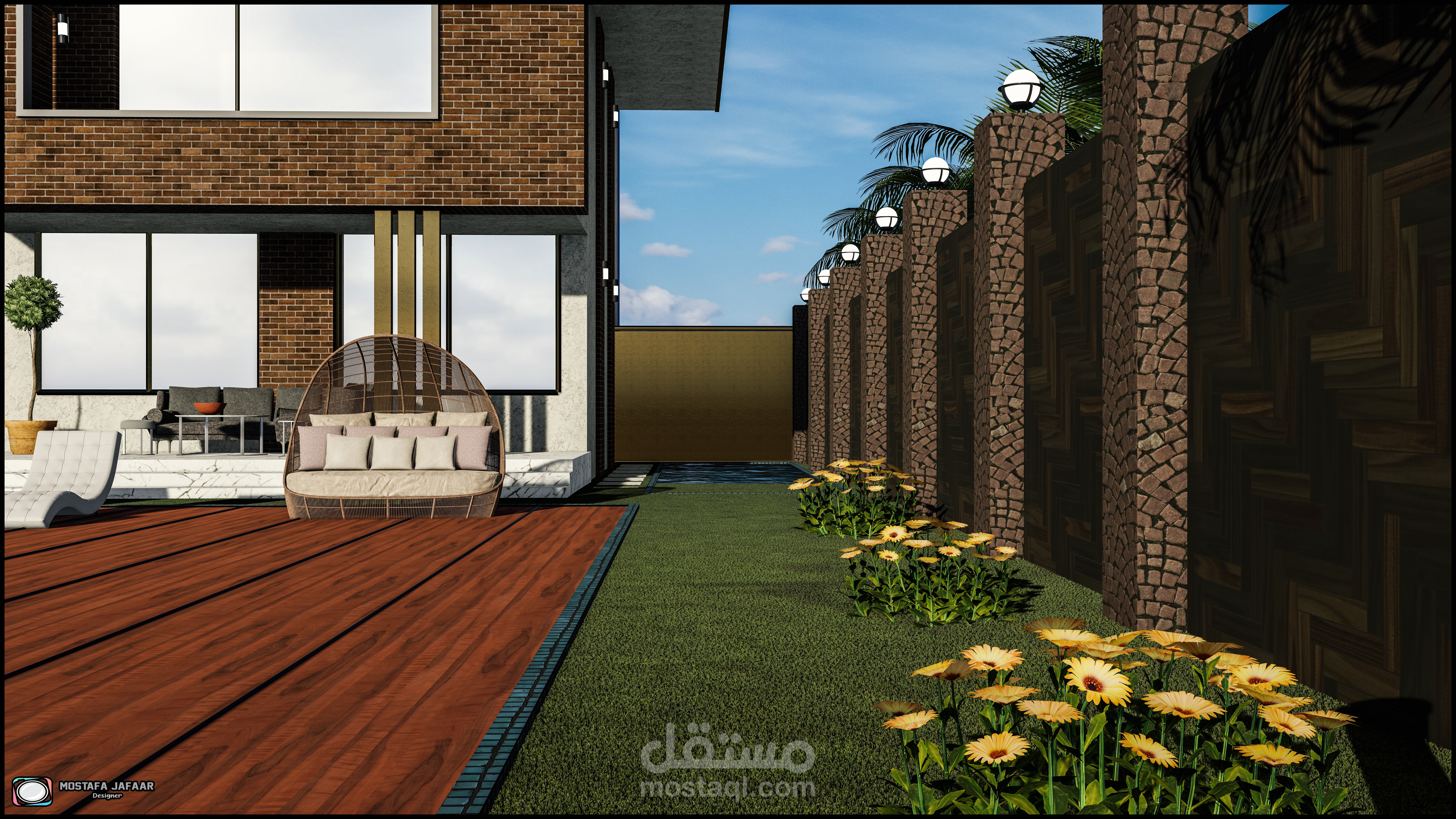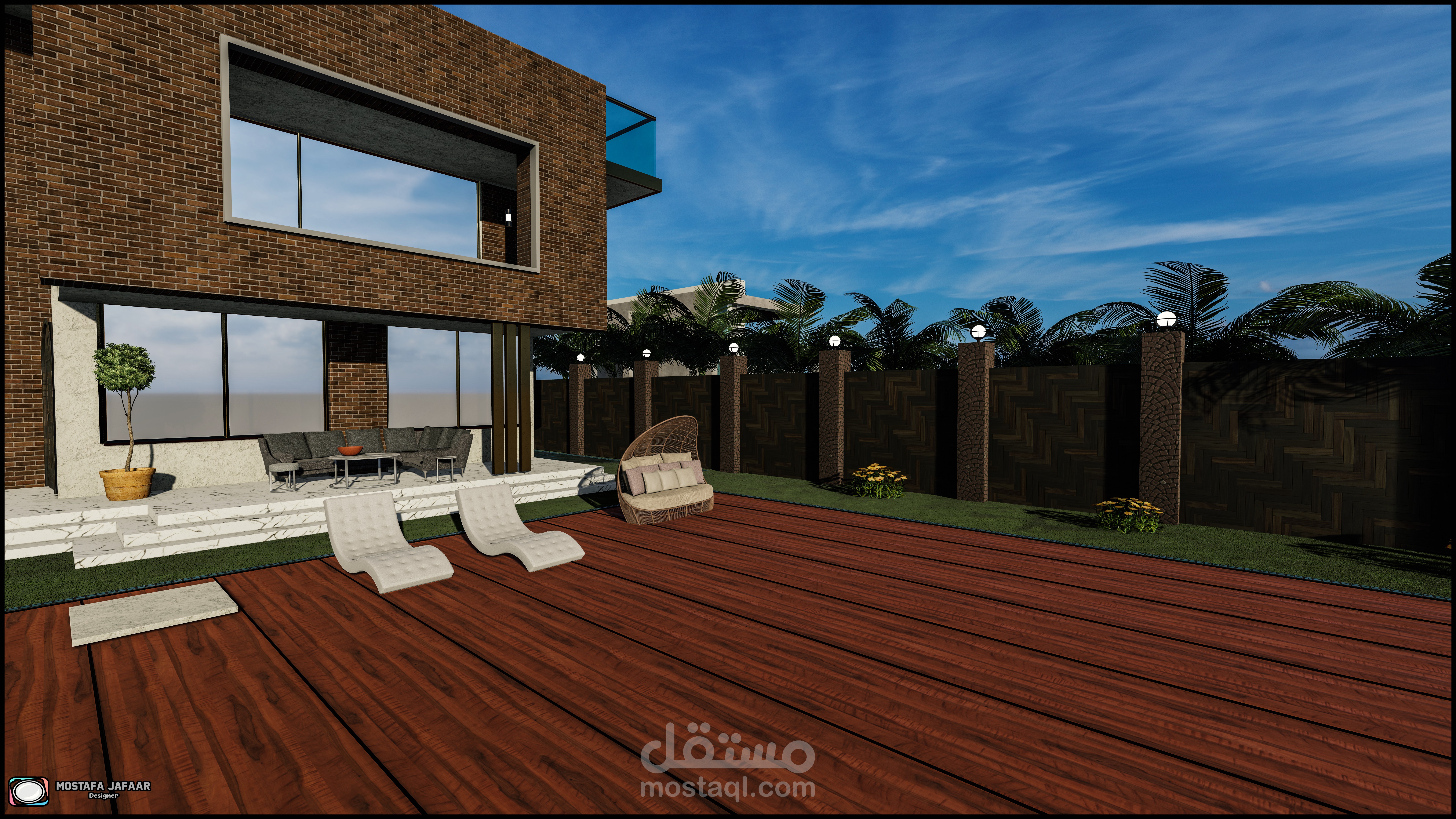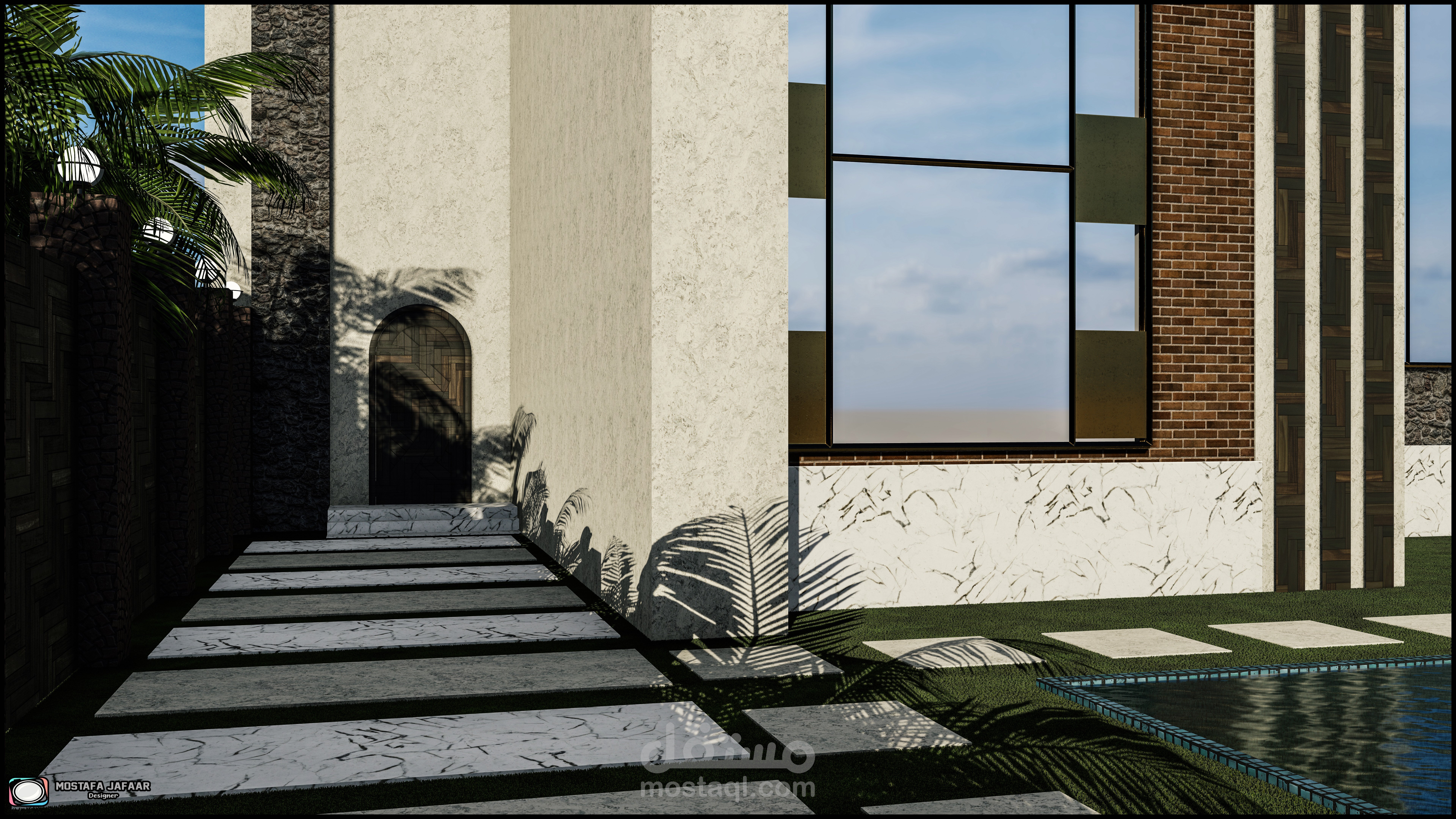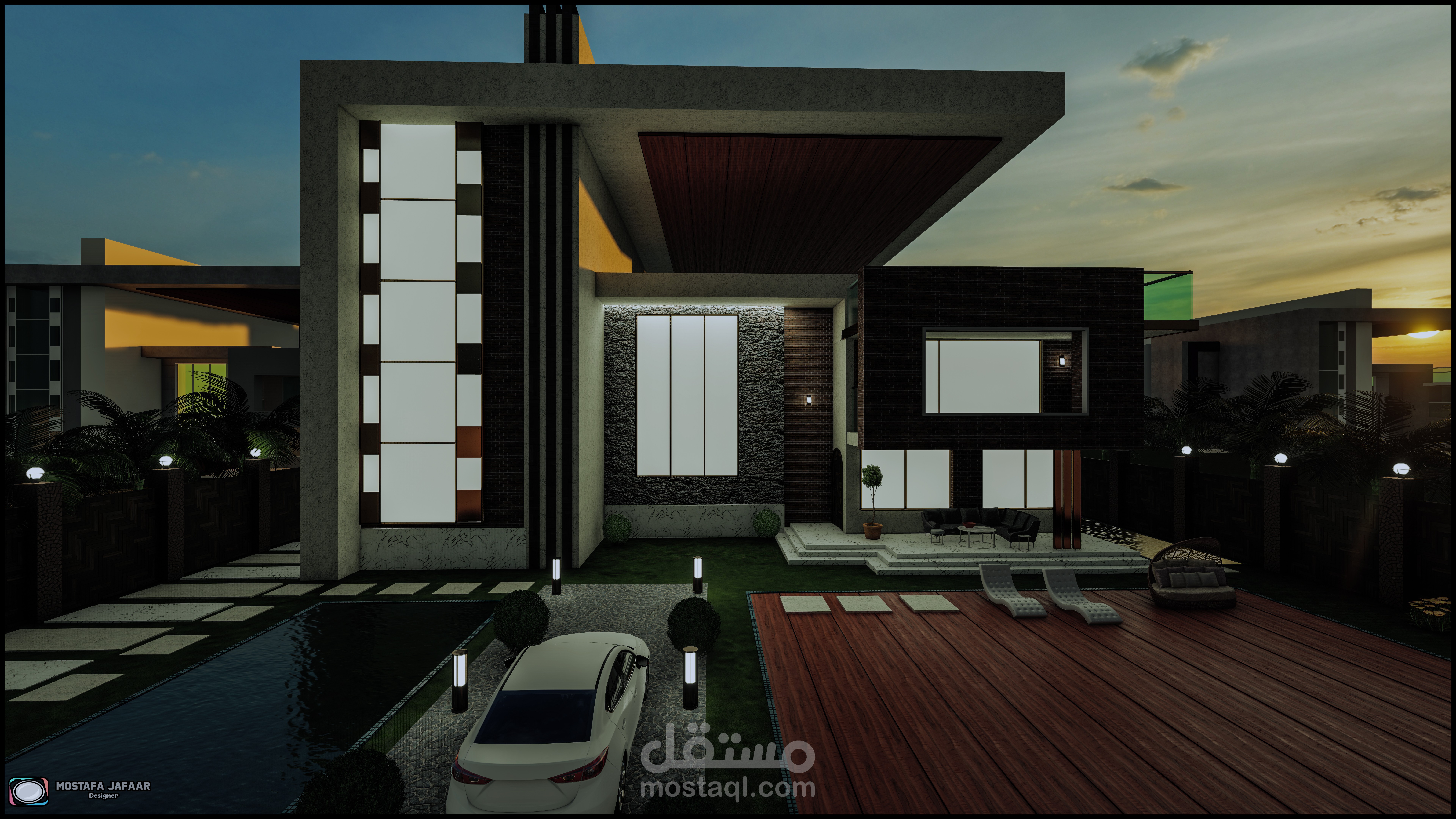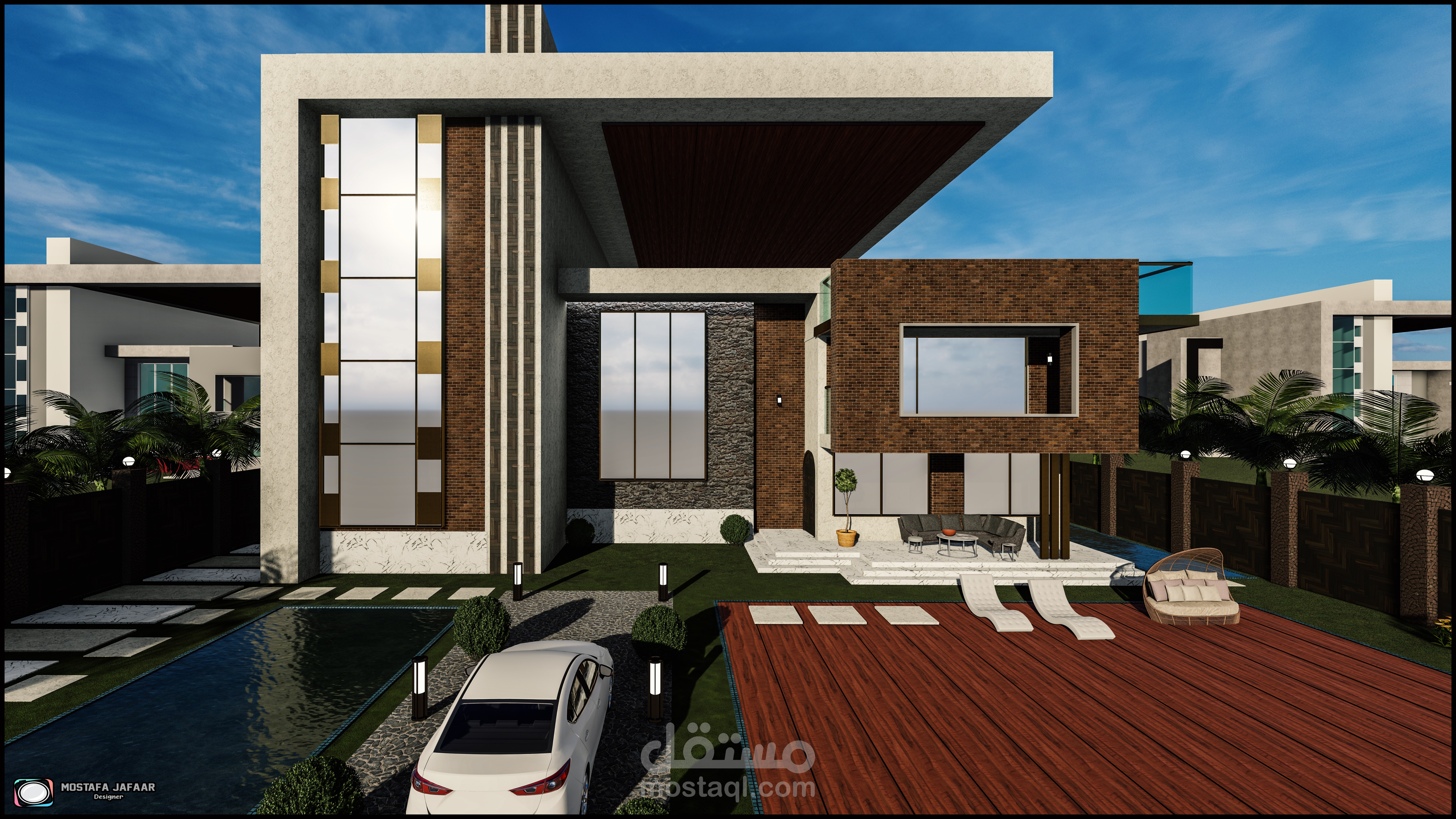 "Modern villa is designed through explicit geometric lines and geometric shapes and coordination inspired by nature and rare nature materials that give the real beauty required"