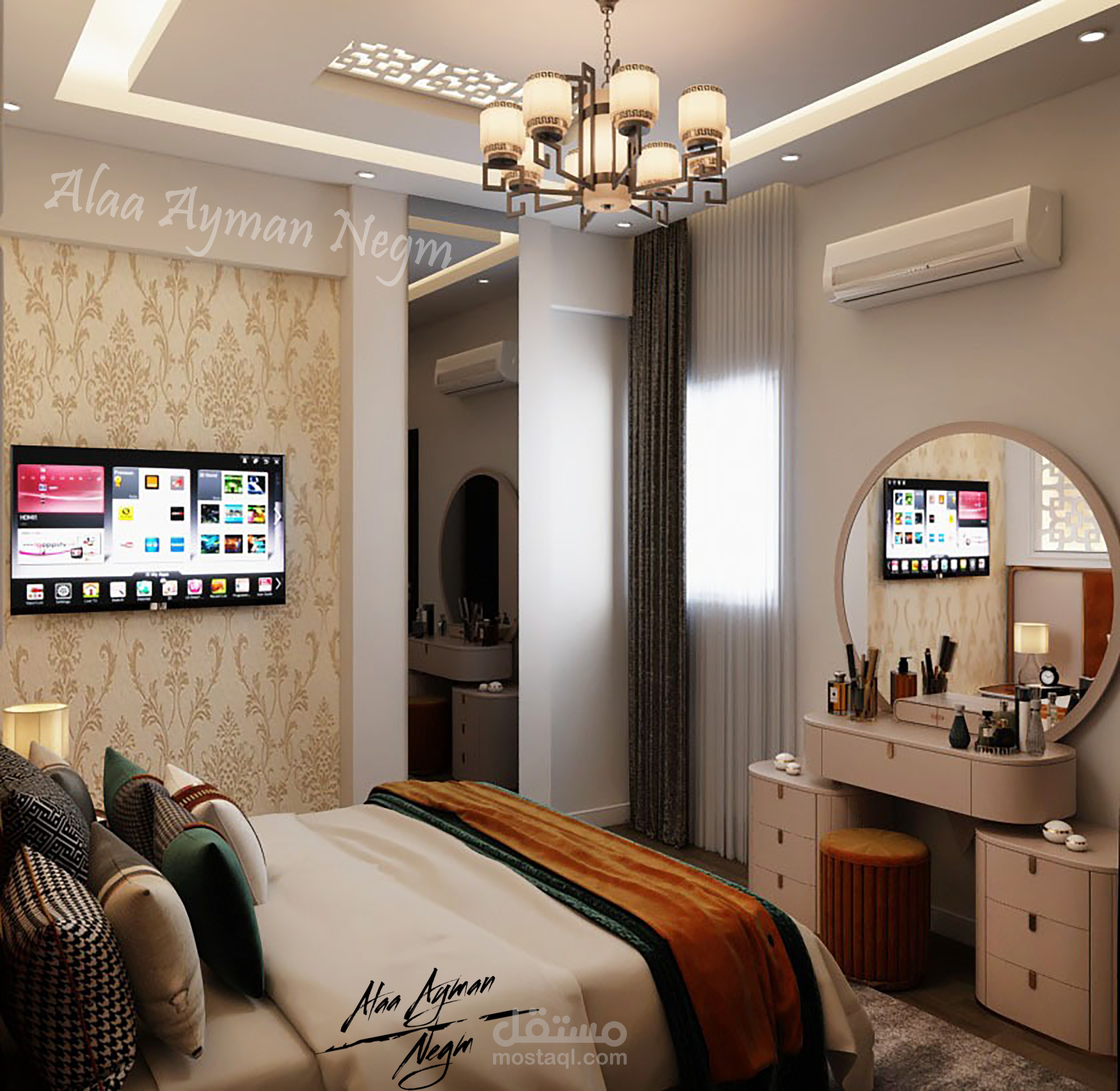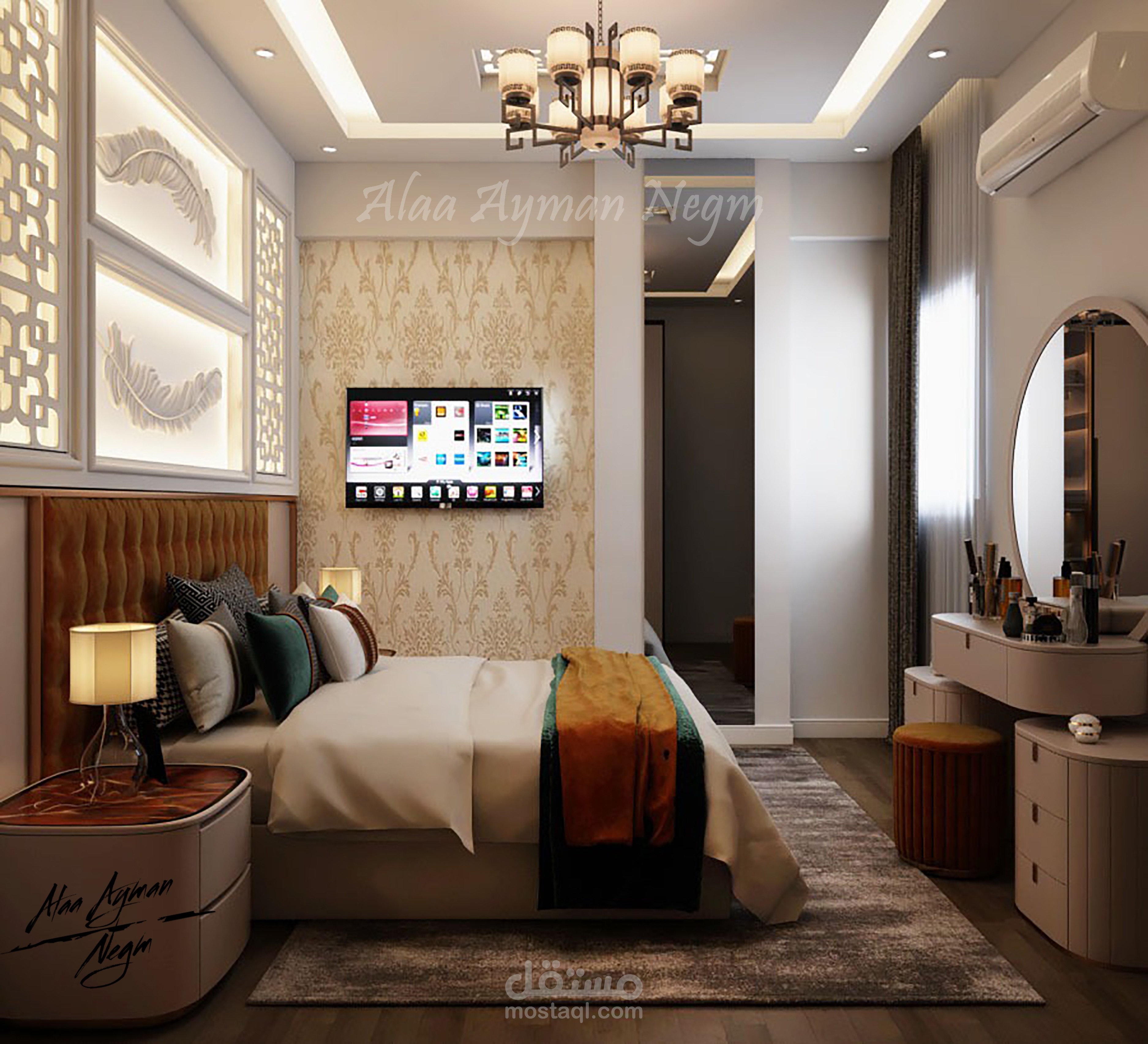 تصميم غرفة النوم الرئيسية باستخدام قوالب CNC والجبس