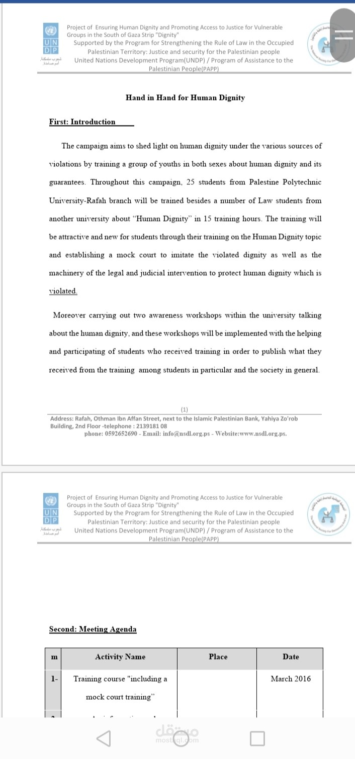 ترجمة إعلان لمؤسسة UNDP موجه لجامعات قطاع غزة