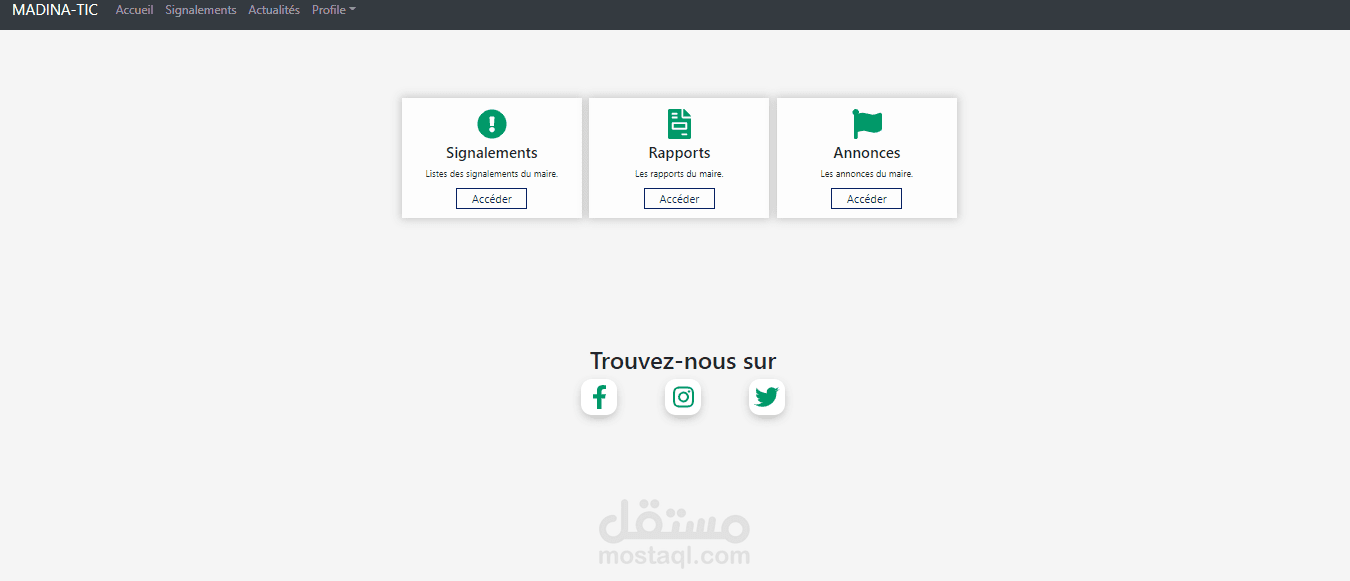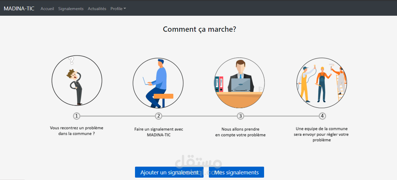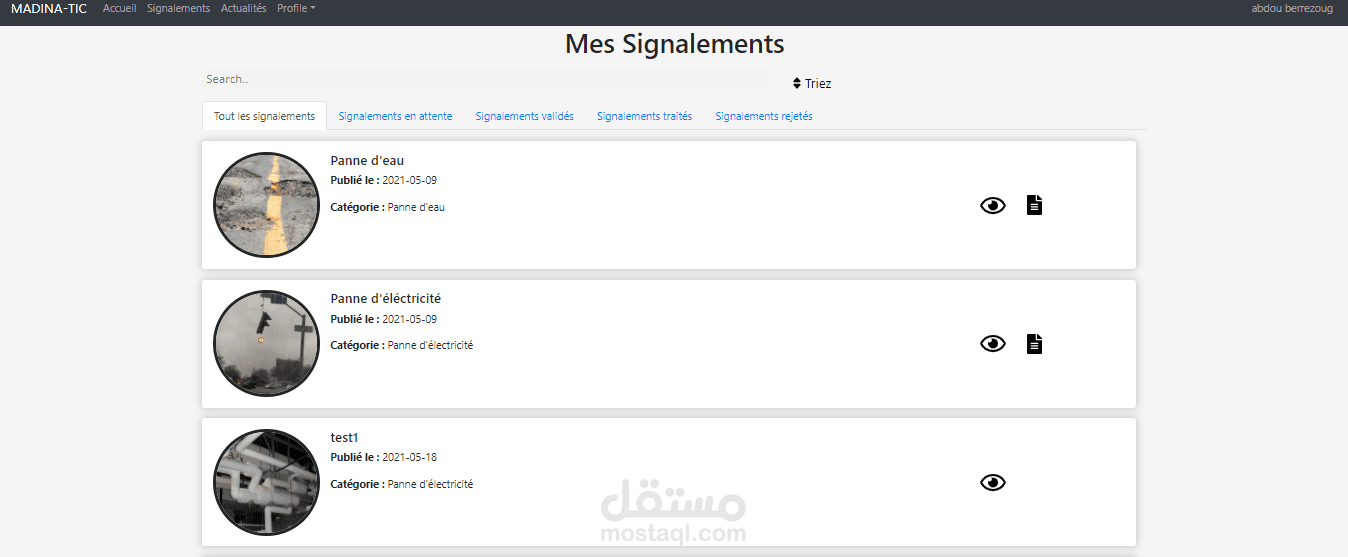 مدينتك هو فظاء يمكن للمواطنين مشاركة مشاكلهم بكل انواعها به (طرقات, اضائة, حفر, انقطاع المياه ...) لترسل فيما بعد الى السلطات المعنية لتسهيل عملية الإصلاح.