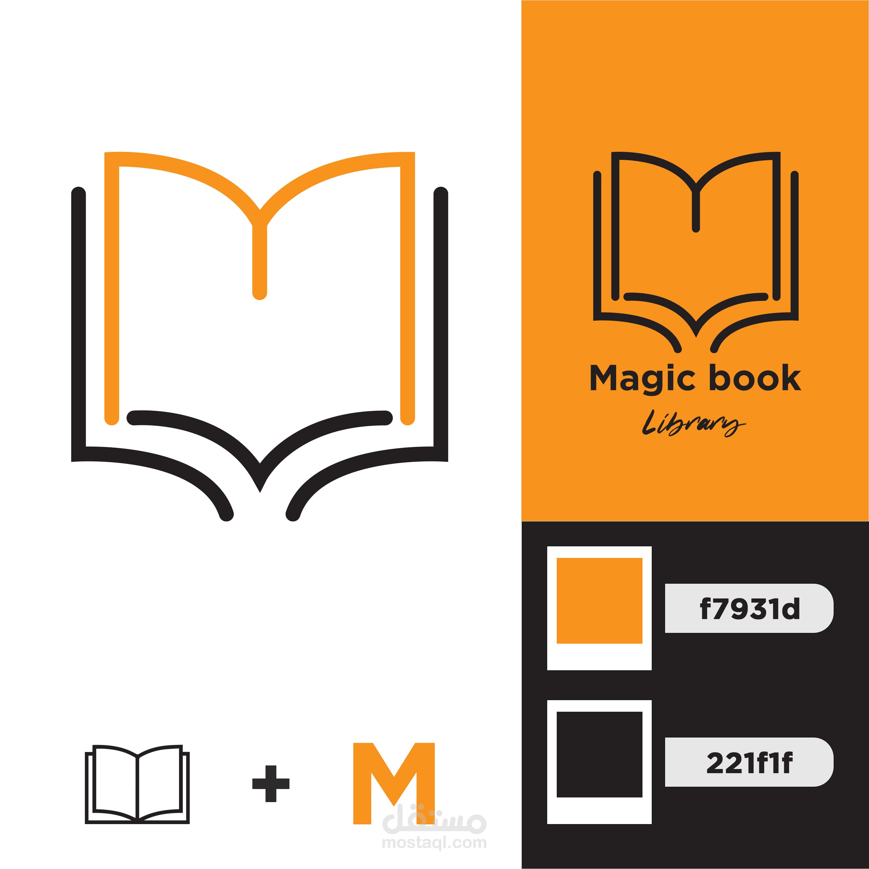 Magic book logo designed with a symbol of book and the letter M for library
