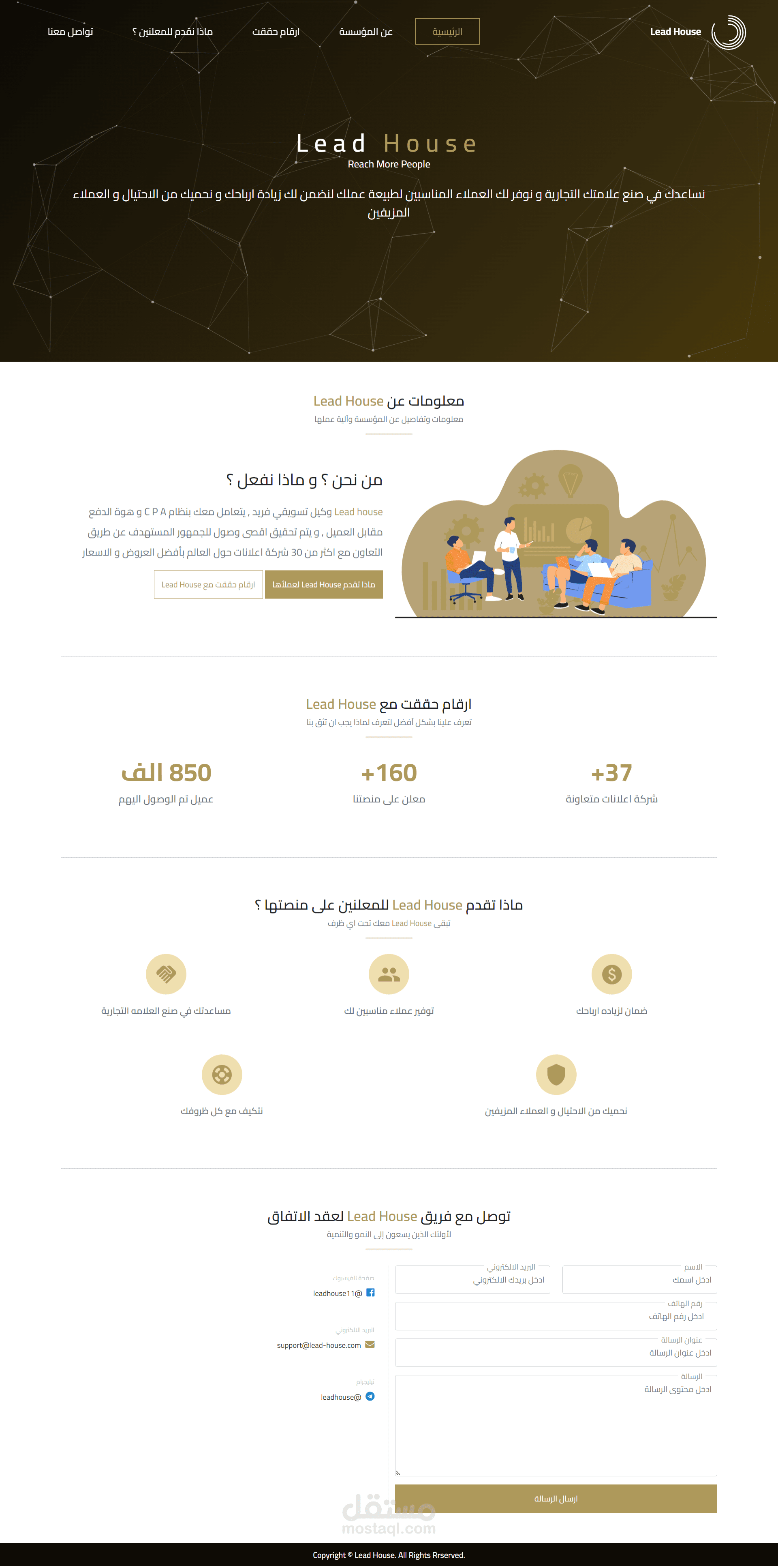 صفحة هبوط لشركة Lead House تحتوي على نبذة عن الشركة و الخدمات التي تقدمها