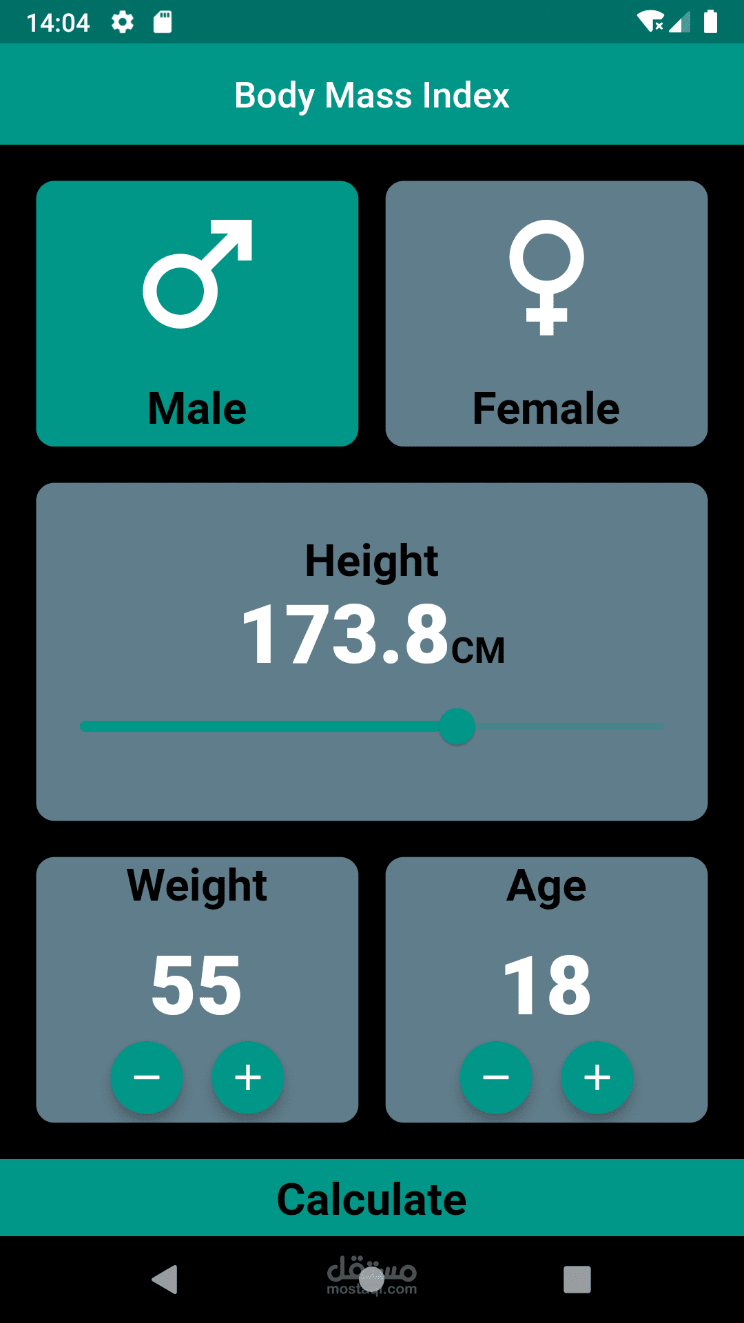 تطبيق تمت برمجته باستخدام لغة dart من خلال flutter framwork, حيث تستطيع من خلاله ادخال الوزن والطول والعمر و الجنس لمعرفة الحالة الصحية , فتستطيع معرفة اذا كنت في حالة طبيعية أم تعاني من النحافة أو الوزن الزائد.