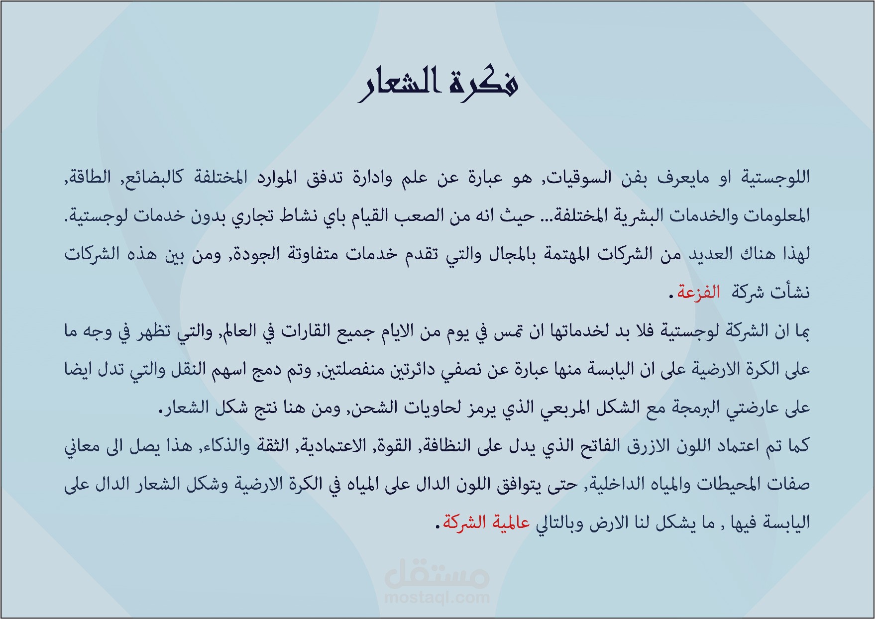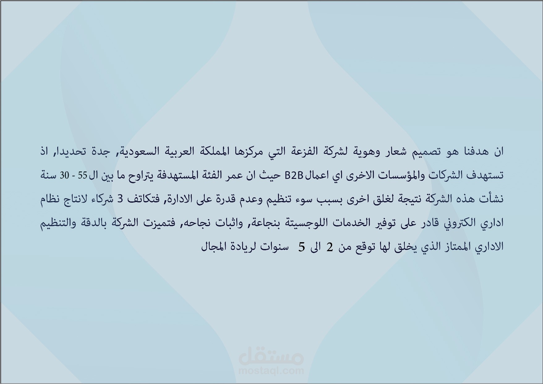 ان التصاميم اعلاه لشركة لوجستية باسم الفزعة بالمملكة العربية السعودية,