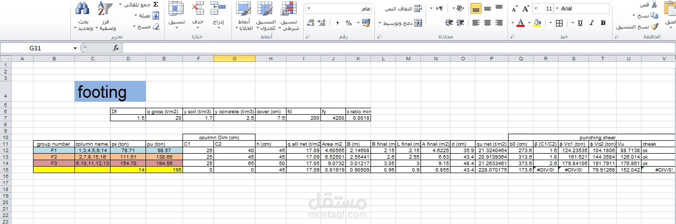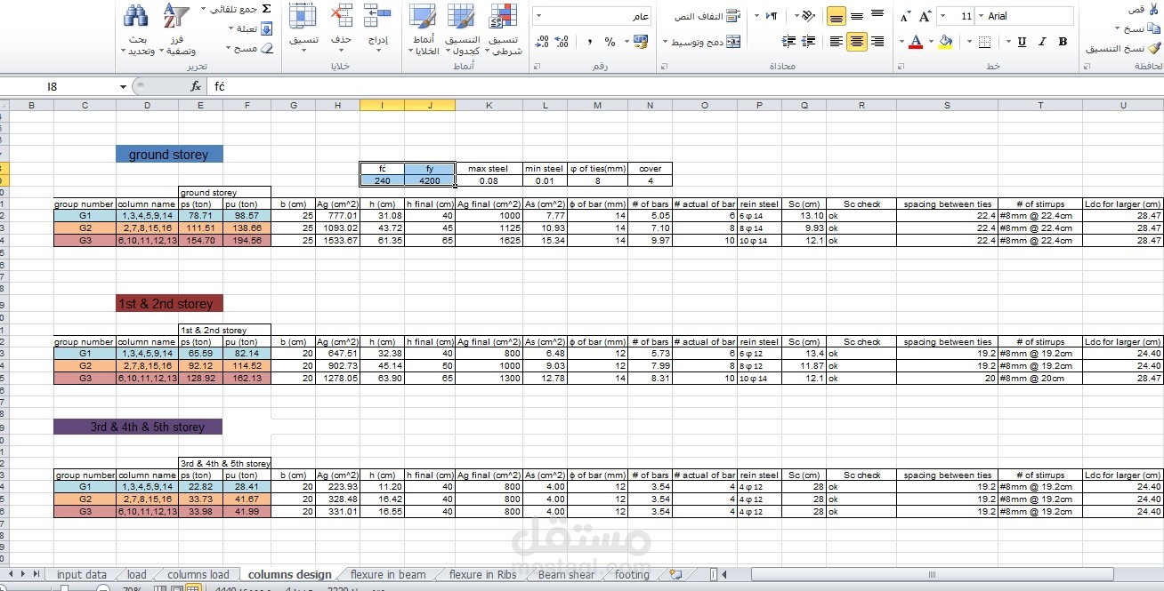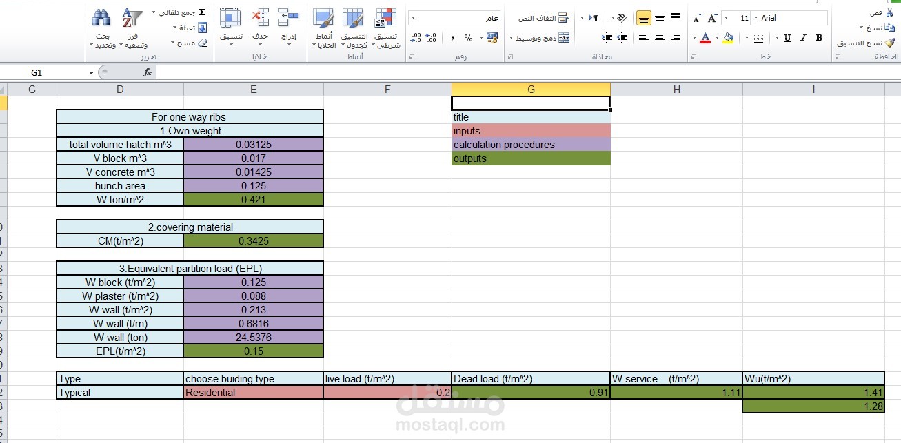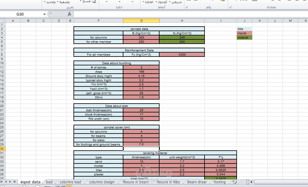 ادخال وبرمجة بيانات مشروع تصميم مبنى سكني باستخدام برنامج اكسل (Excel)