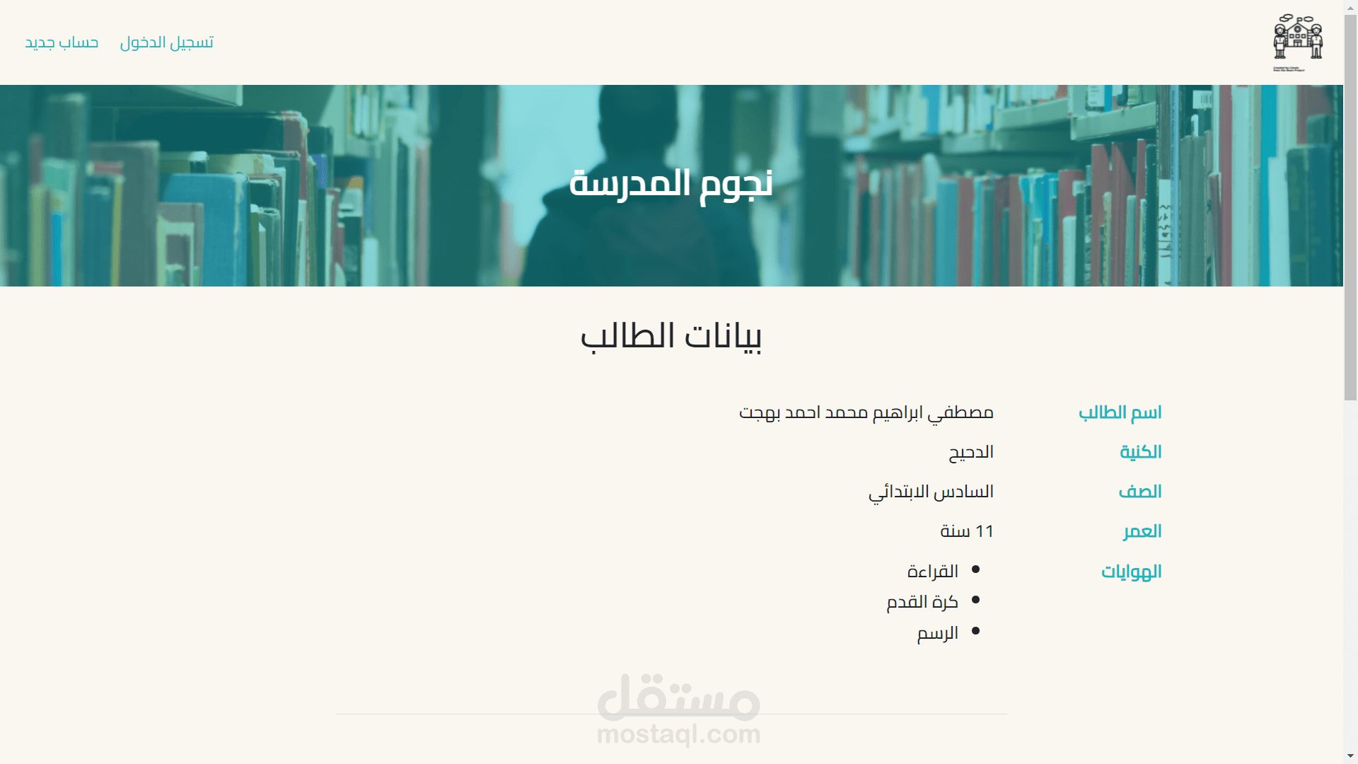 هو موقع لمدرسة ابتدائية تمكن المستخدم أن يكون له حساب عليها