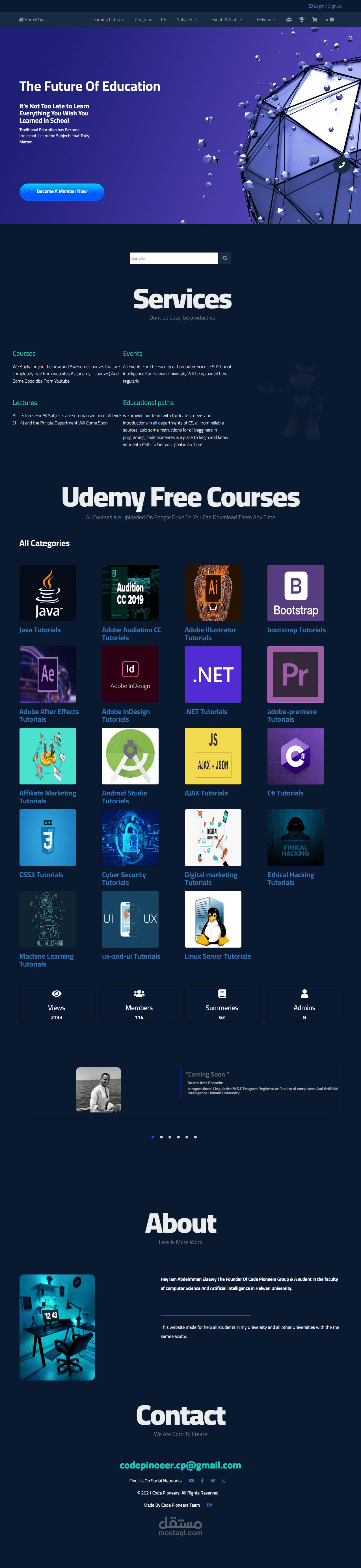 لقد قمت بعمل منصة مجانية بالكامل لتعليم البرمجة والمساعدة بكورسات عديدة للبرمجة وعيرها وايضا بالكتب البرمجية