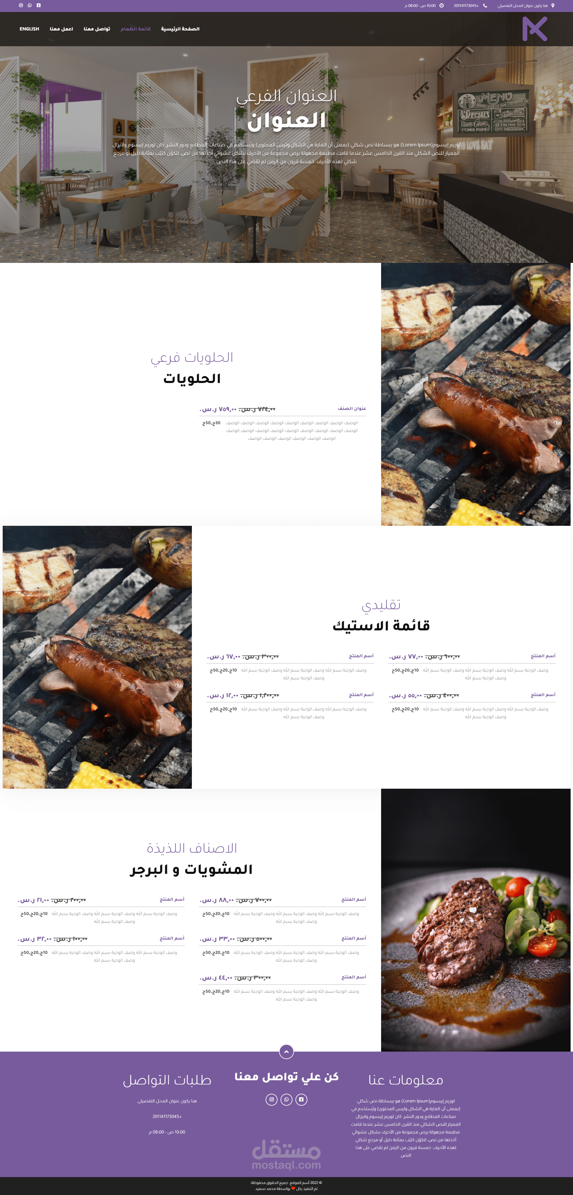 تنفيذ موقع الكتروني كامل لمطعم AK - أي كي .