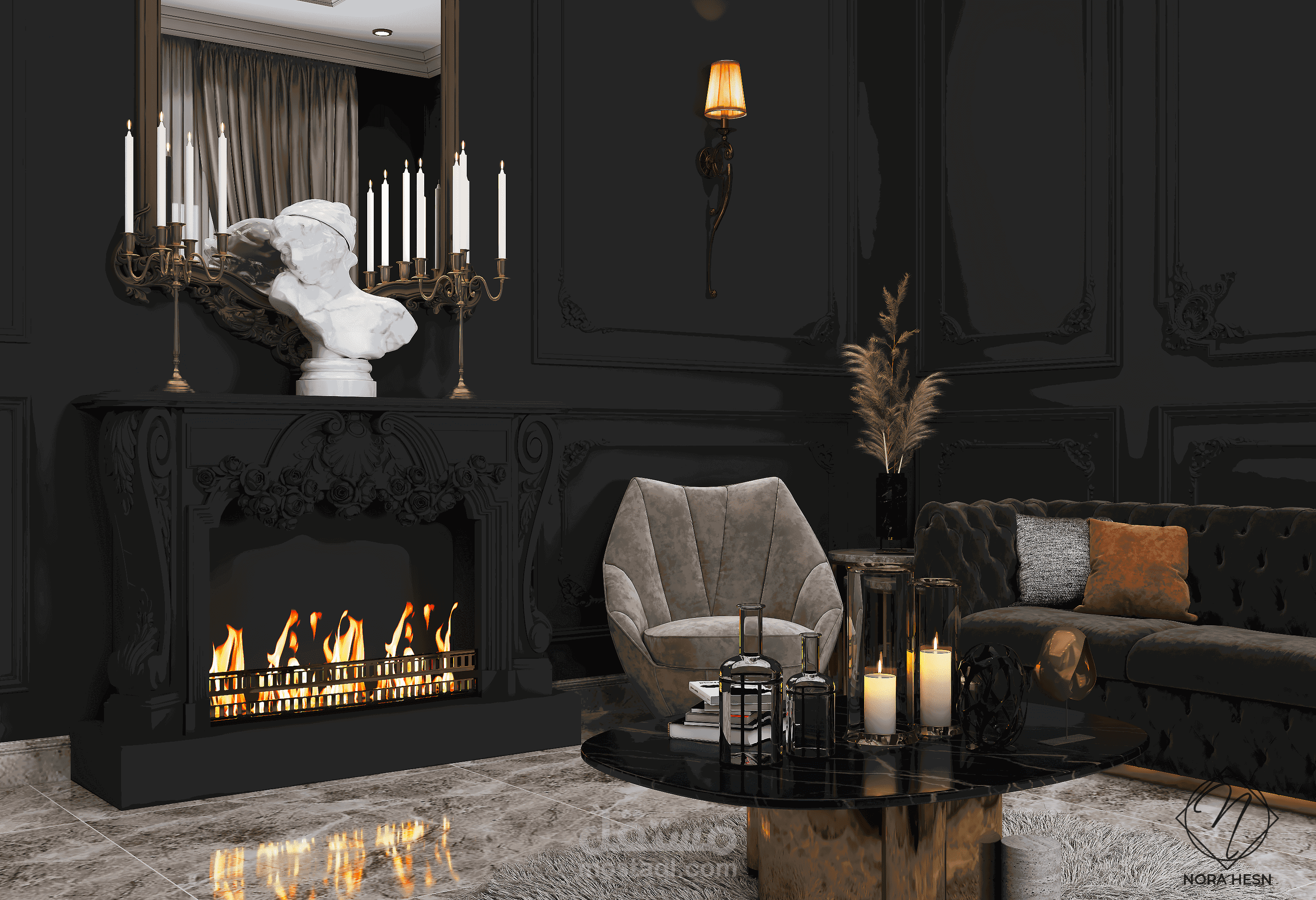 تصميم غرفة مَعيشة كلاسيكي بالمملكة العربية السعودية